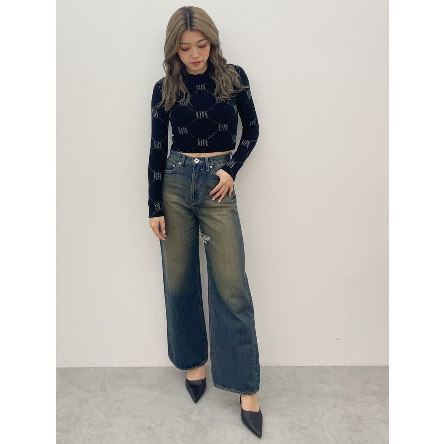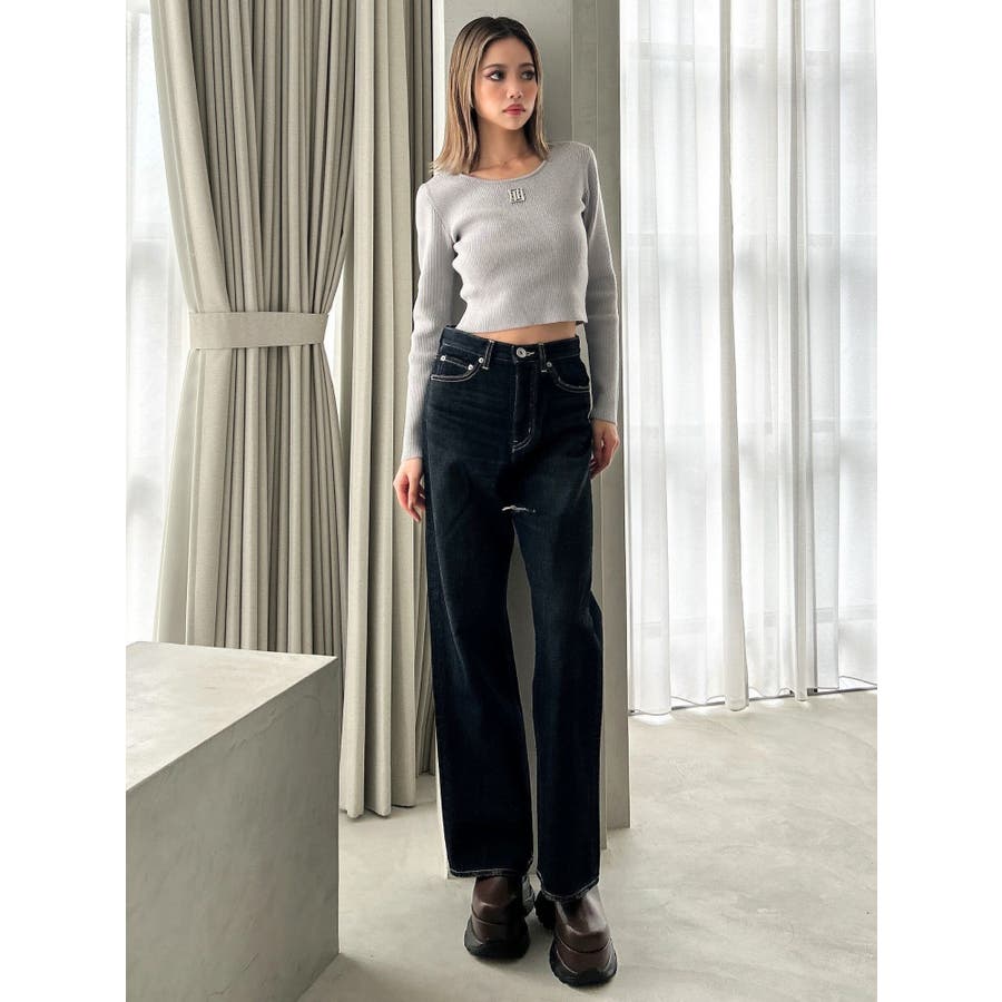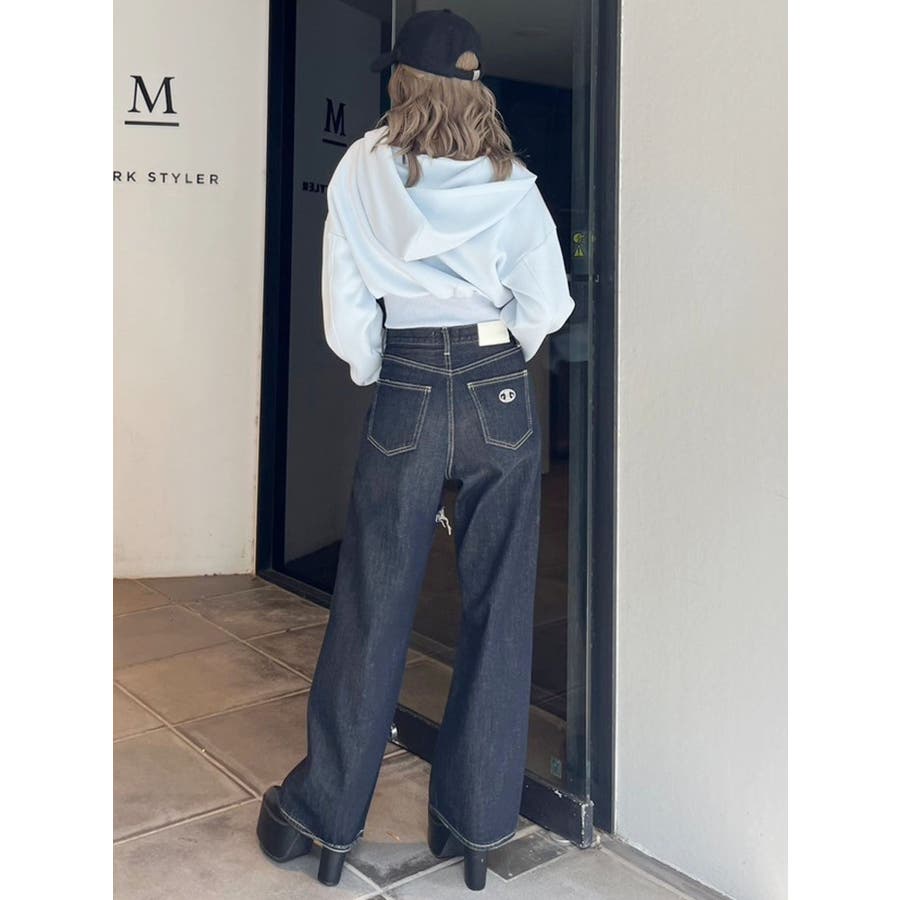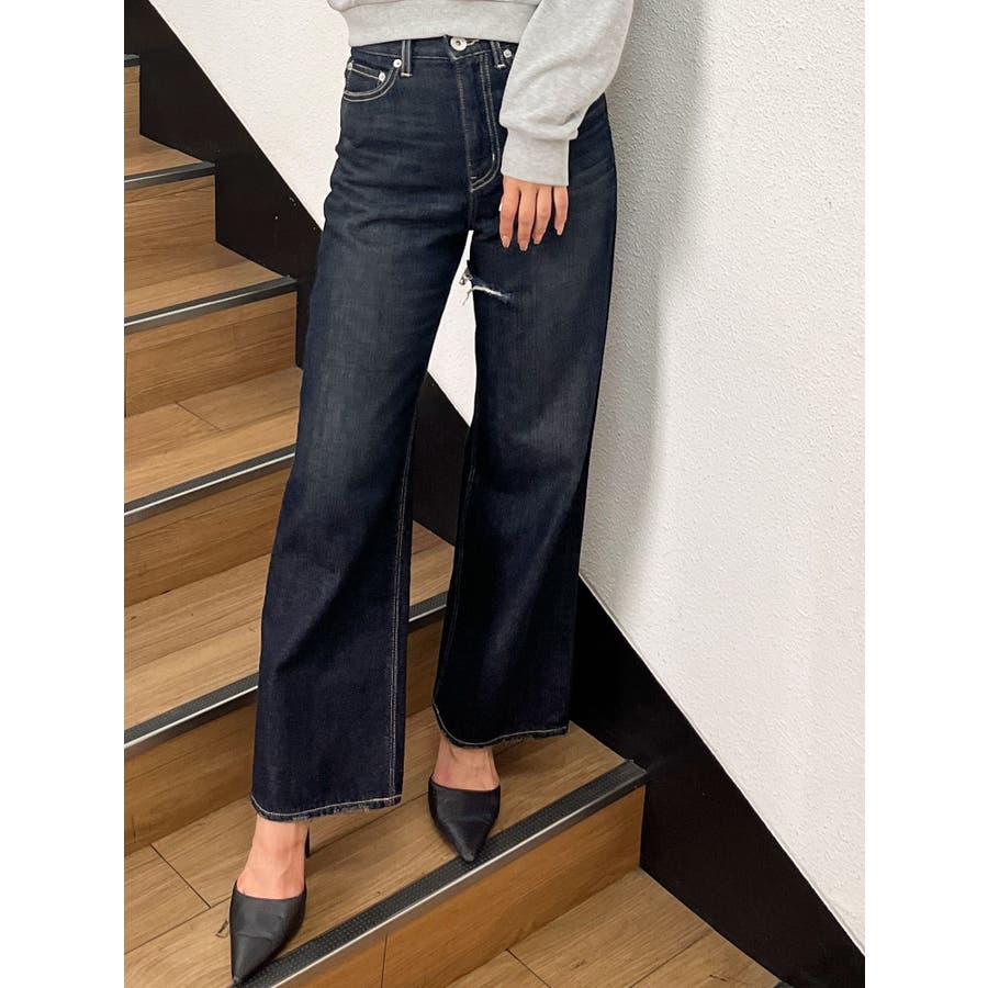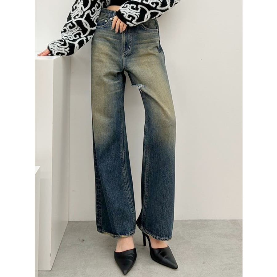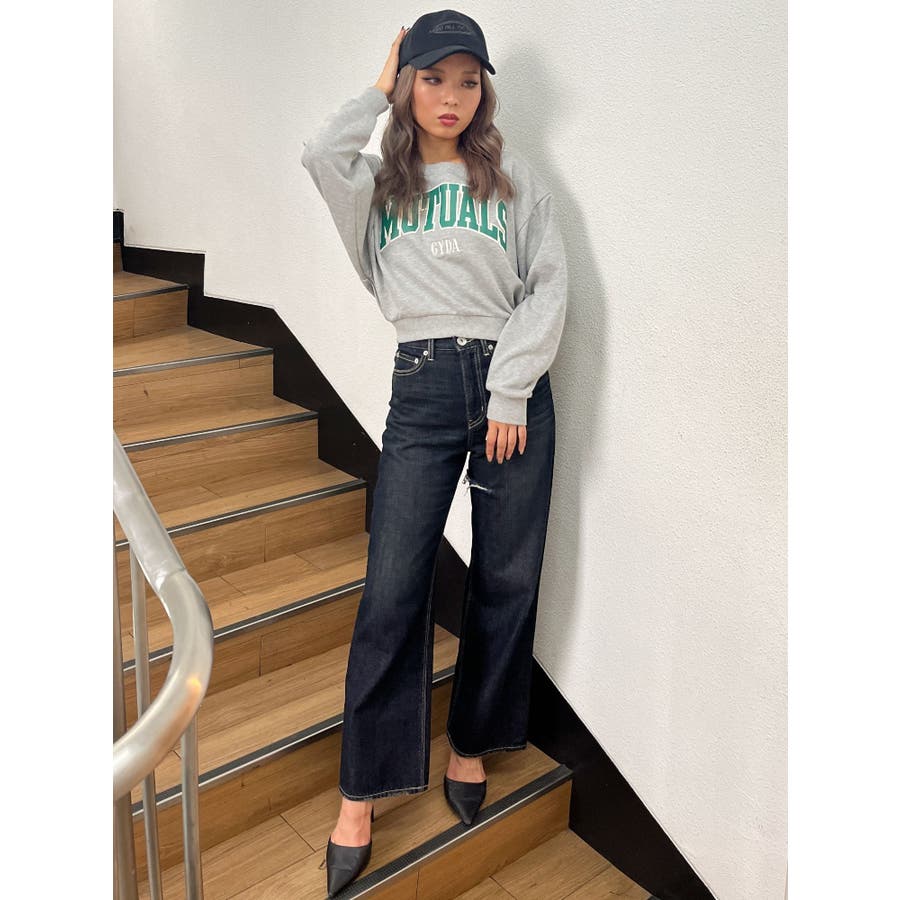 ハイウエストSymmetryGYDA INNER RIPPEDワイドデニムパンツ