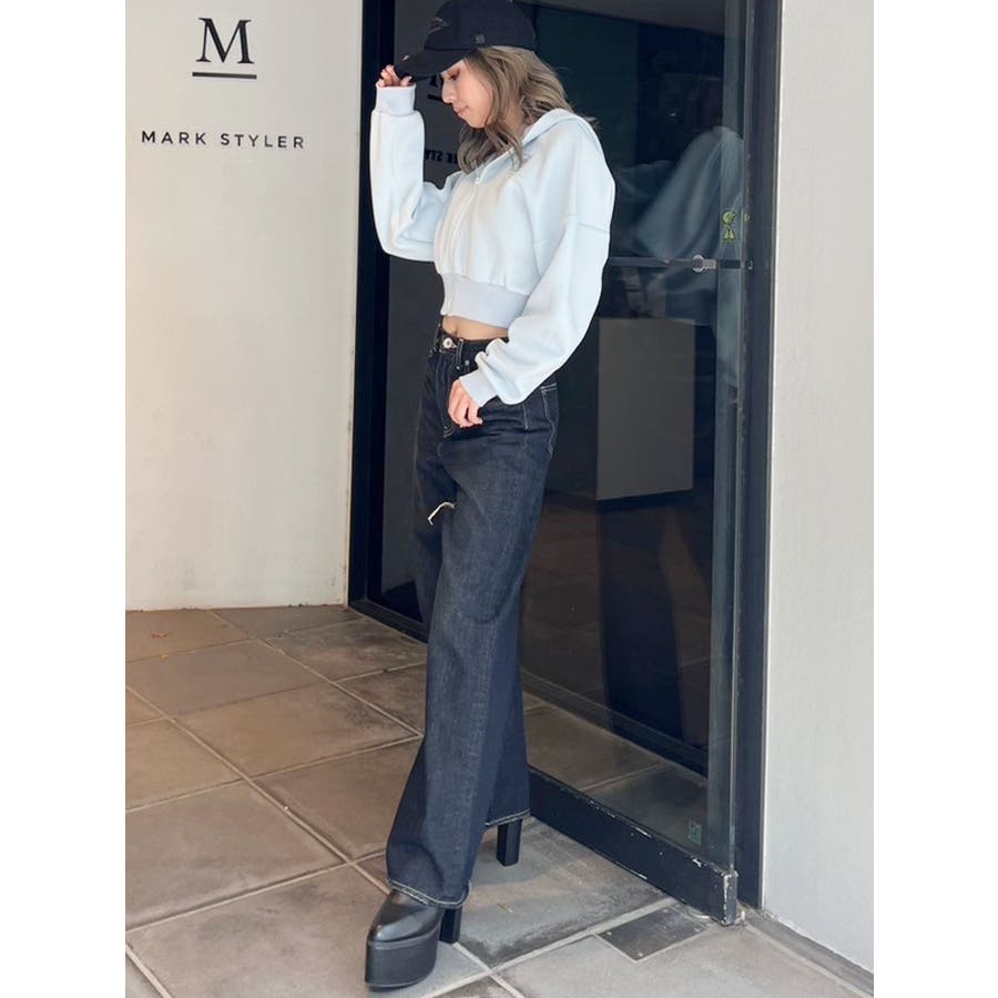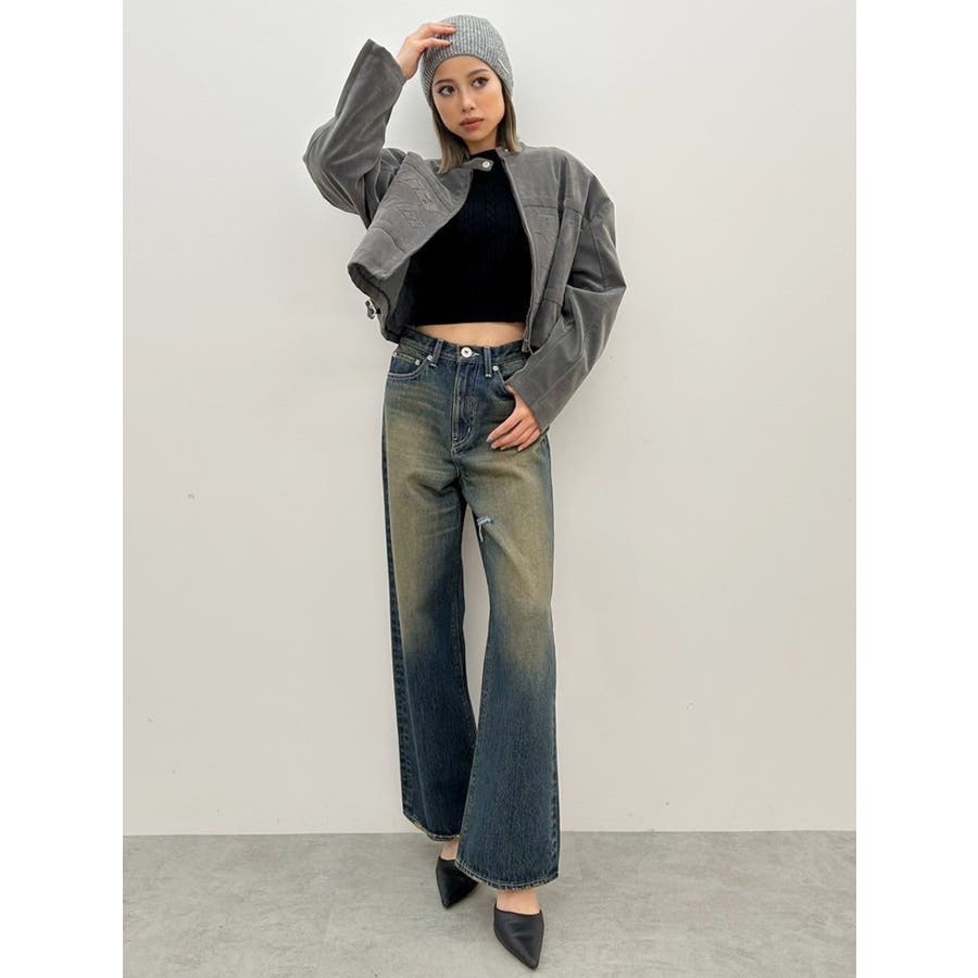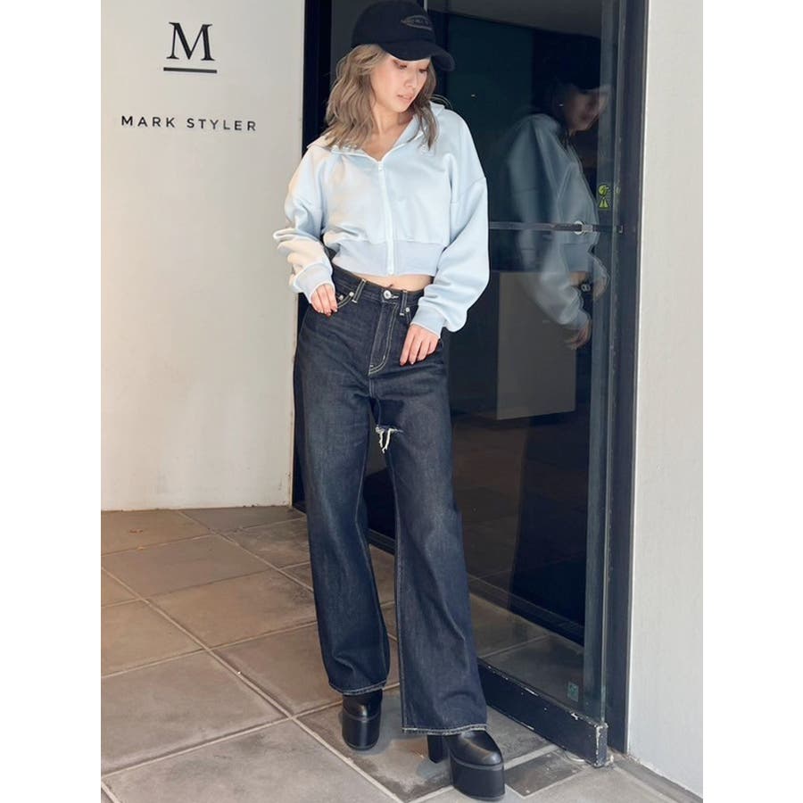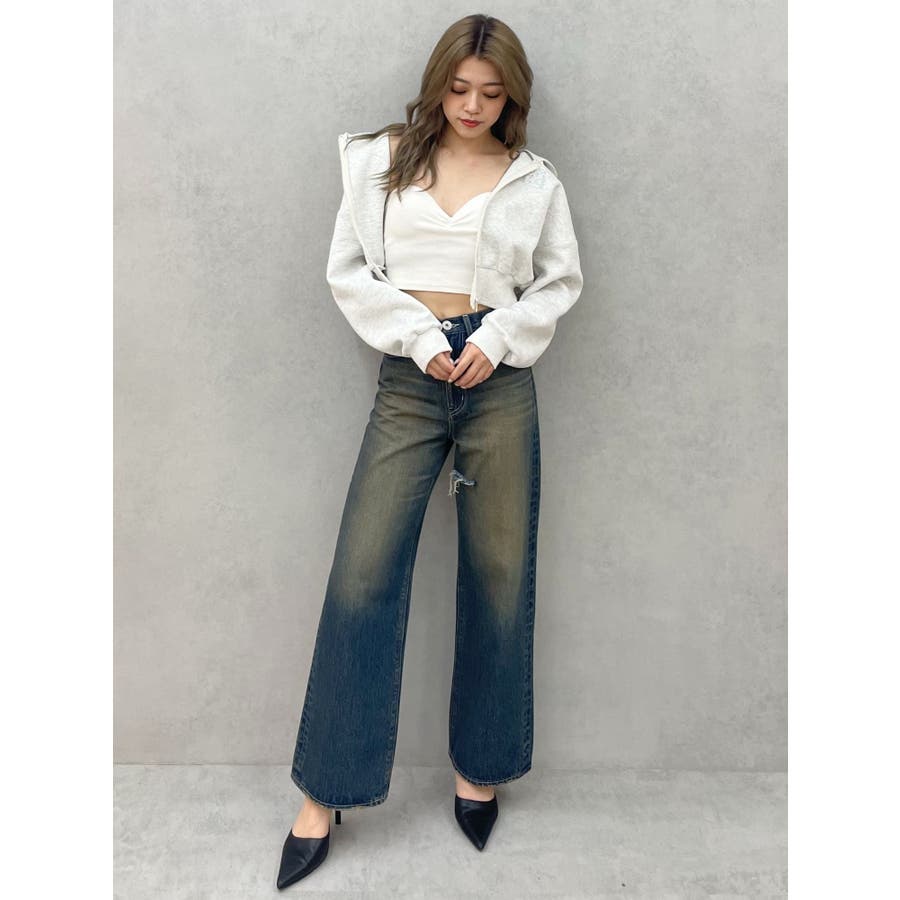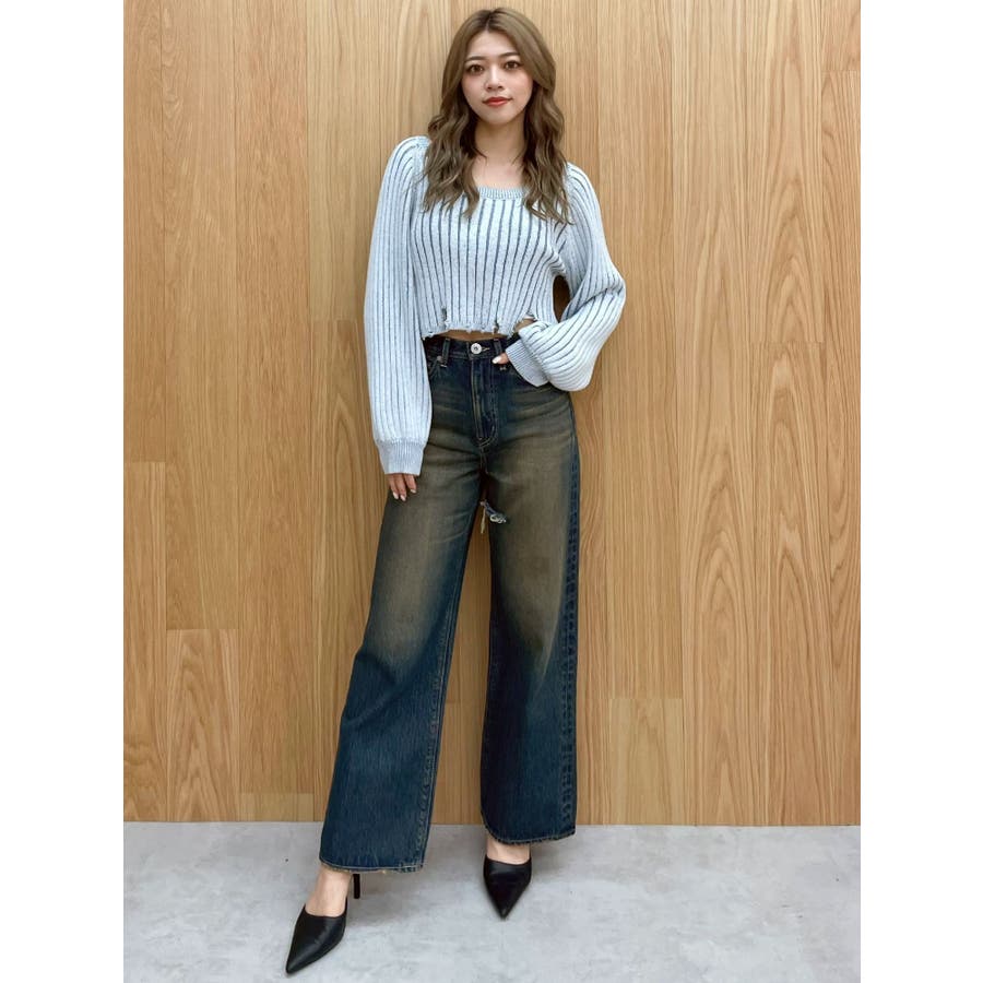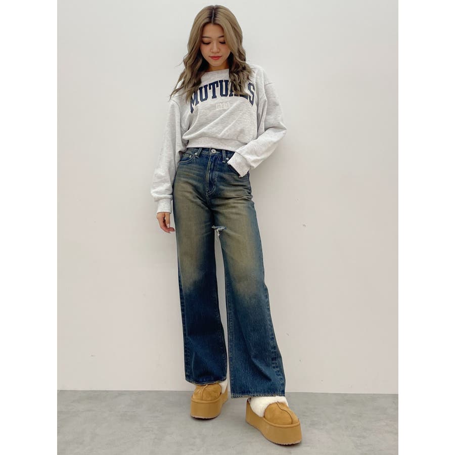 ハイウエストSymmetryGYDA INNER RIPPEDワイドデニムパンツ