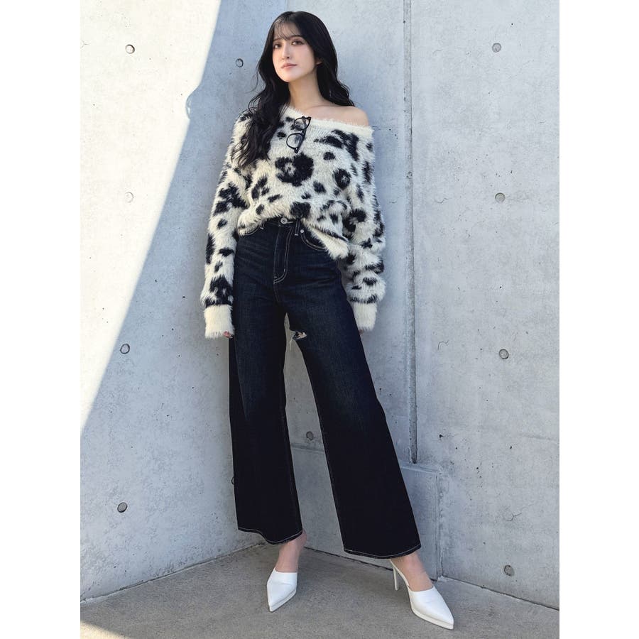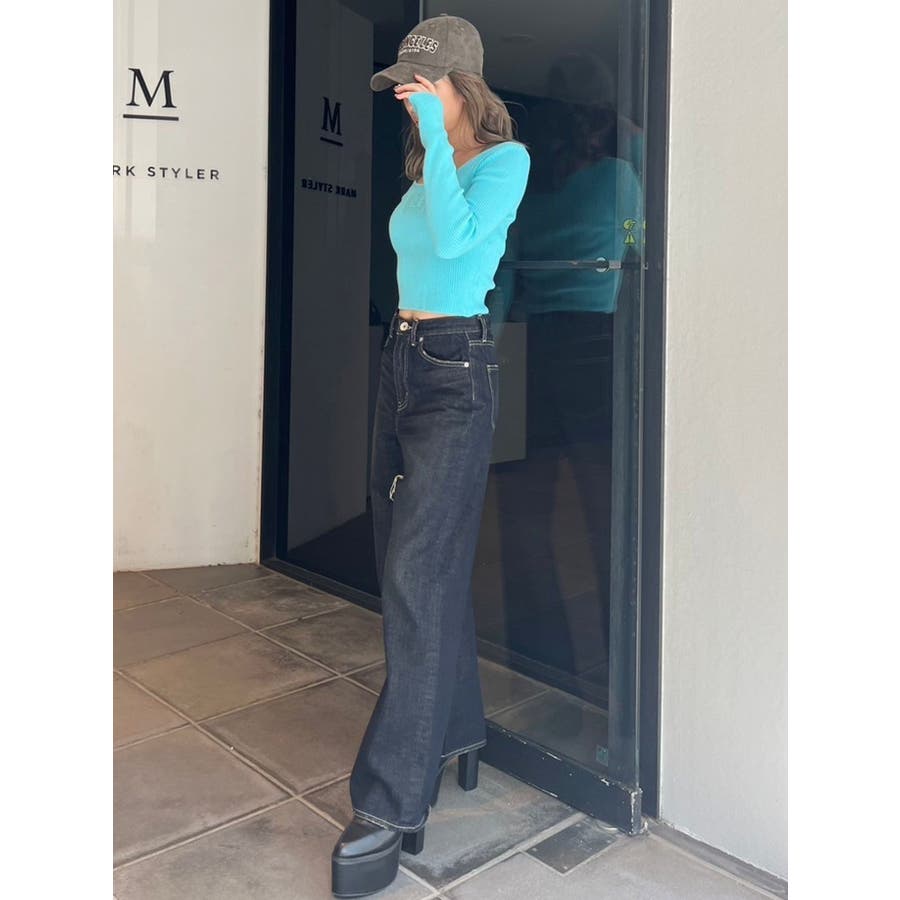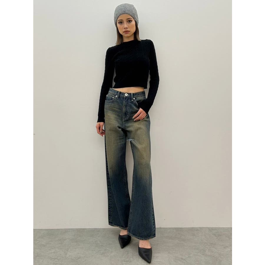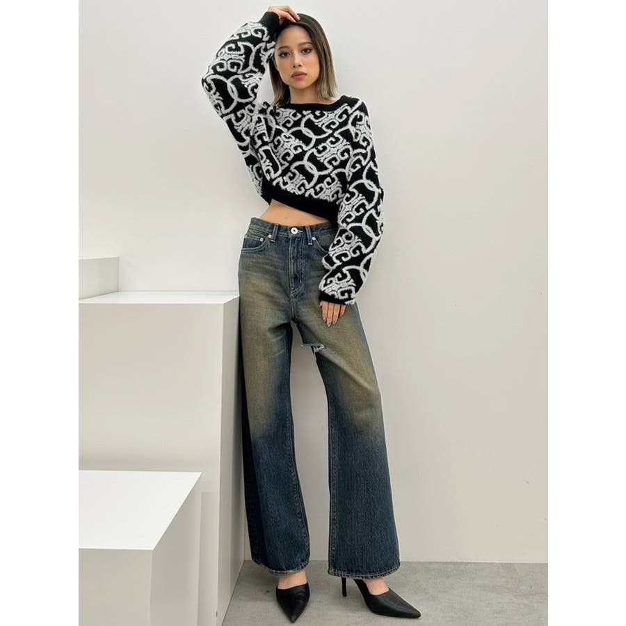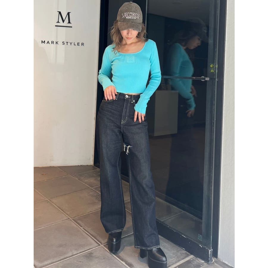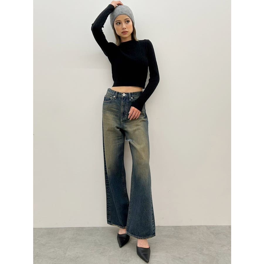 ハイウエストSymmetryGYDA INNER RIPPEDワイドデニムパンツ