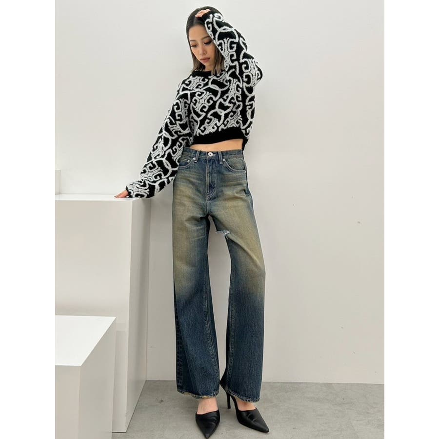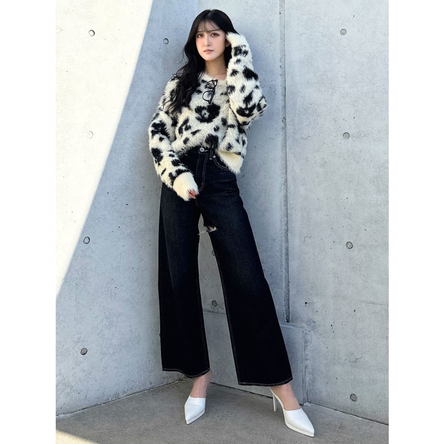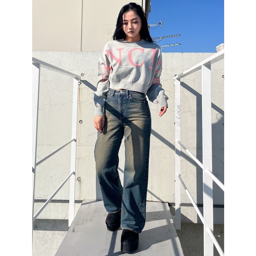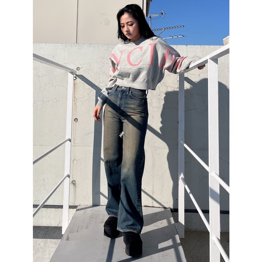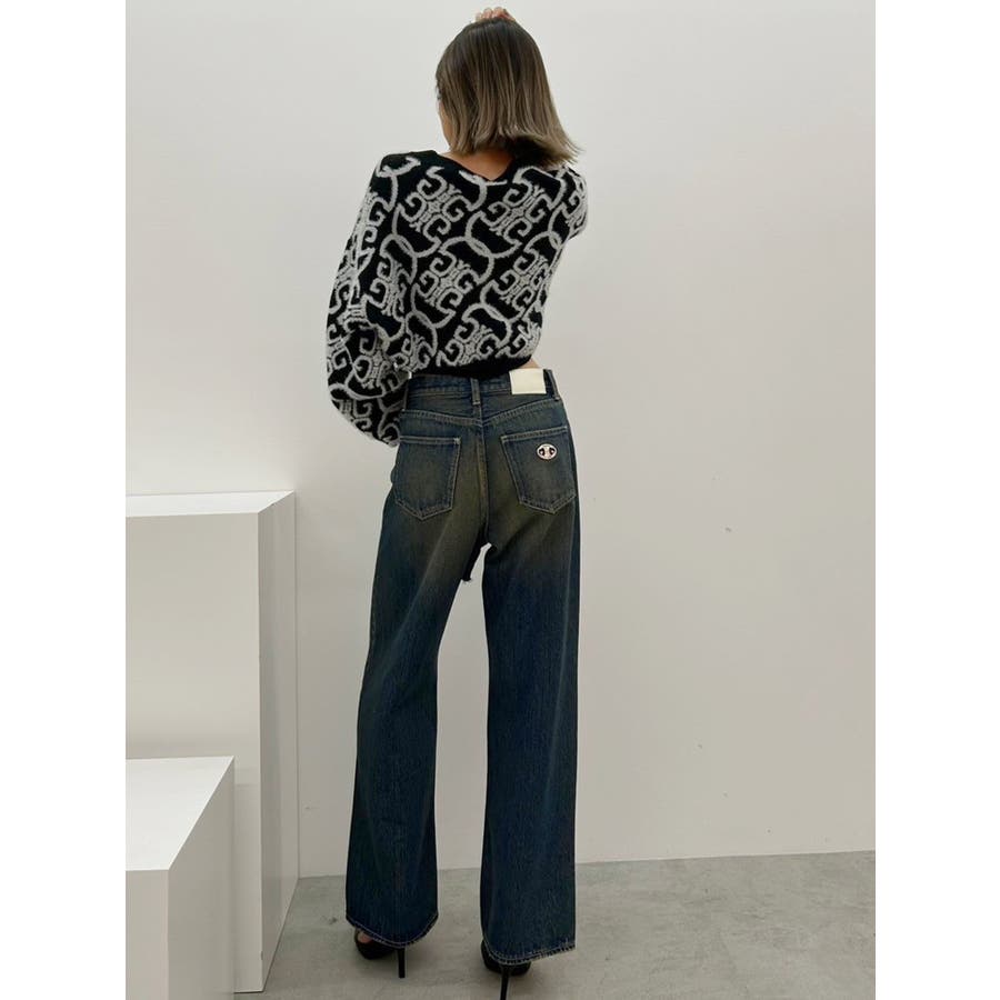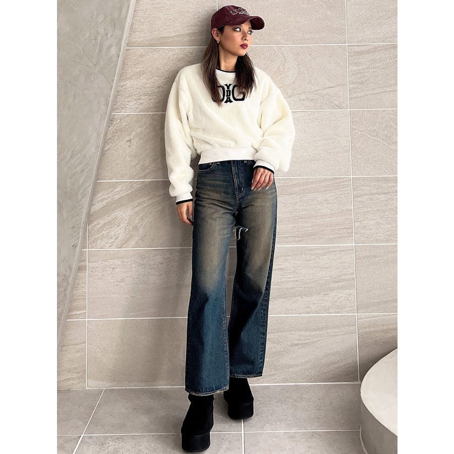 ハイウエストSymmetryGYDA INNER RIPPEDワイドデニムパンツ