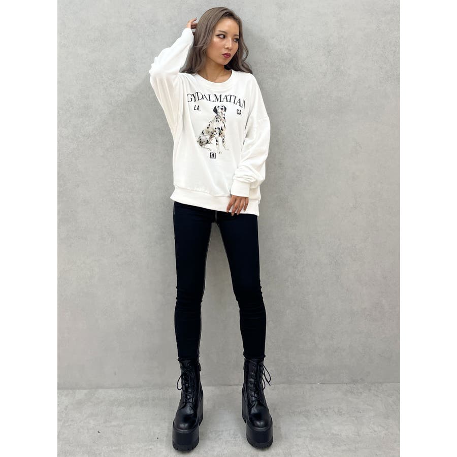 ■デザイン 大人気オリジナルキャラクターGYDALMATIAN(ジェイダルメシアン)のフォトアートが新登場。 架空のジェイダルメシアンがなんとも言えないかわいさを演出してくれ、 LA(ロサンゼルス)CA(カリフォルニア)やGYGYのモチーフ入りもオリジナル感溢れる1枚。 ベーシックなクルーネックスウェットも着用しやすい1枚。 ■スタイリング レギンスや、ショートボトム×ブーツ合わせが◎ ■商品のお気に入り登録 再入荷通知やラスト1点、お得なプライスダウンの情報も受け取ることができます。 ぜひご登録ください◎ ■この商品を見ている人におすすめ HEADPHONE GYDALMATIANスウェットパーカー ・・・・・・・・・・・・・・・・・・・・・・ ※着用画像はフラッシュの加減で実際の製品と色味等が異なる場合がございますので、生地のズームアップ画像をご確認ください。 ※ご利用の端末画面の設定により実際の商品と色味が異なる場合がございます。 【商品特徴】透け感:なし伸縮性:あり生地の厚さ:普通サイズ感:ゆったり裏地:なしポケット:なし
