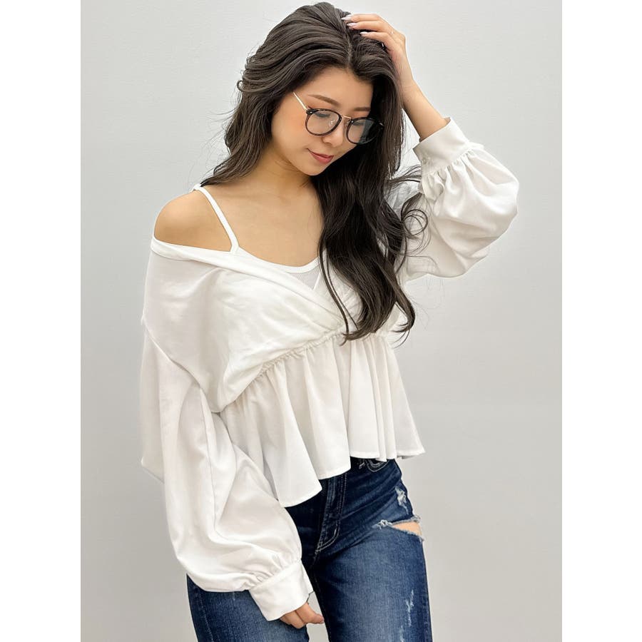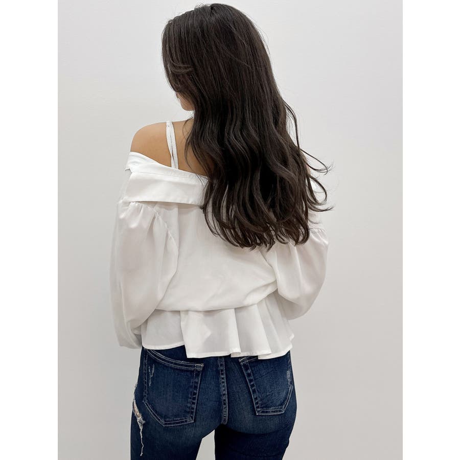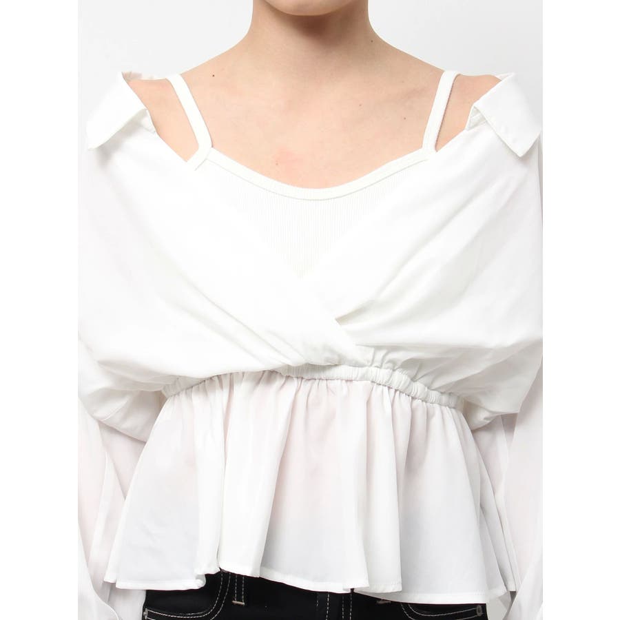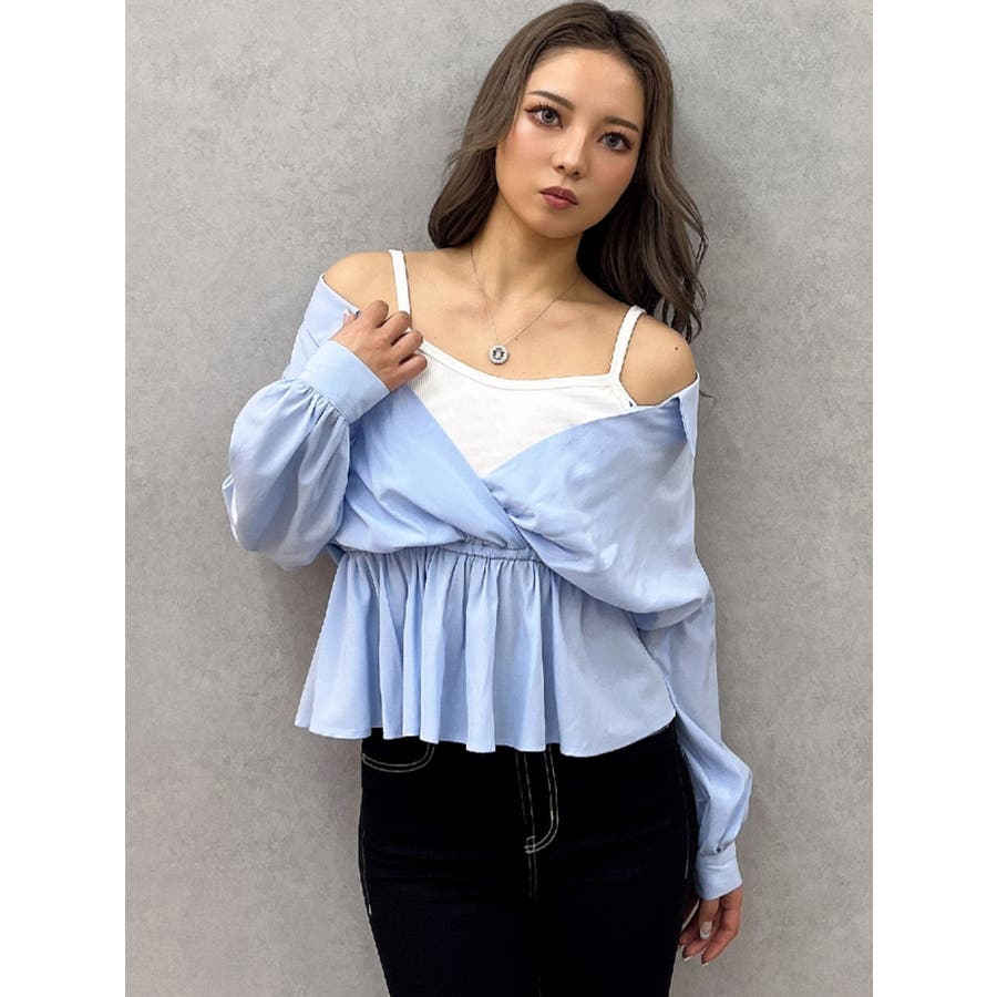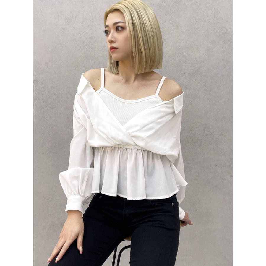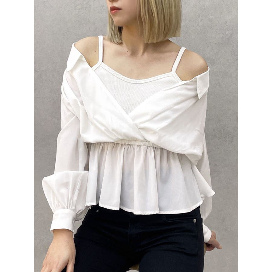 キャミレイヤードオフショルペプラムシャツ