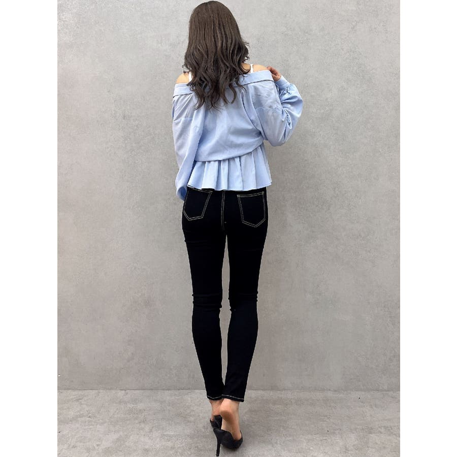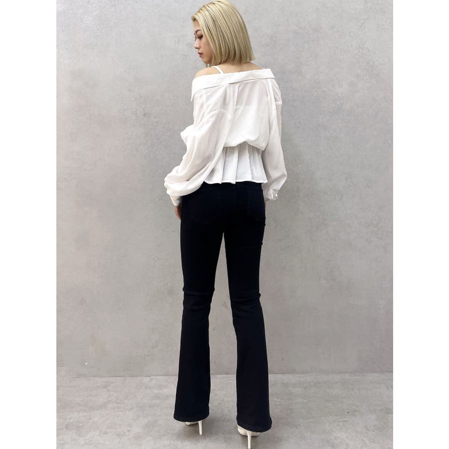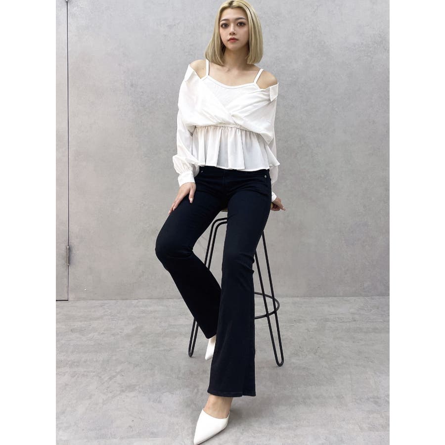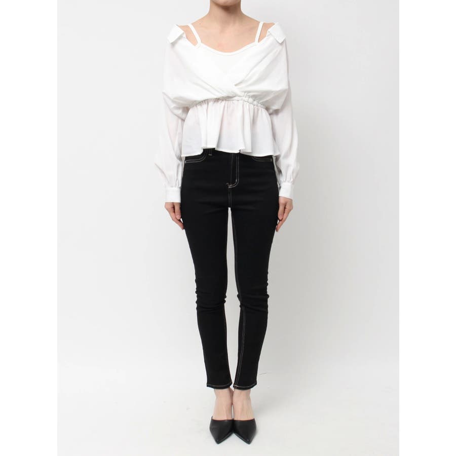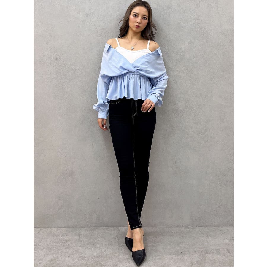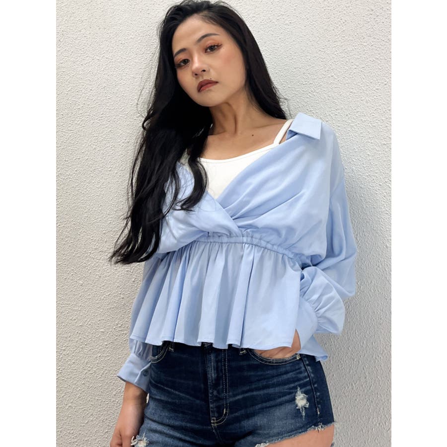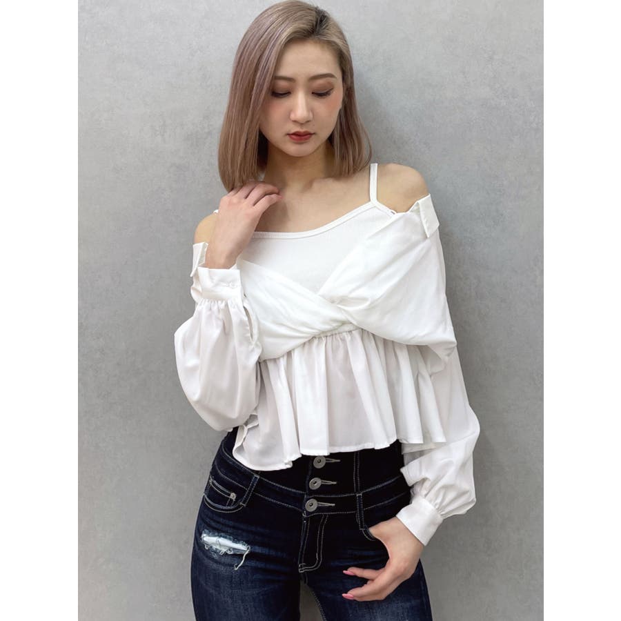 キャミレイヤードオフショルペプラムシャツ