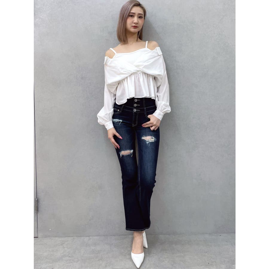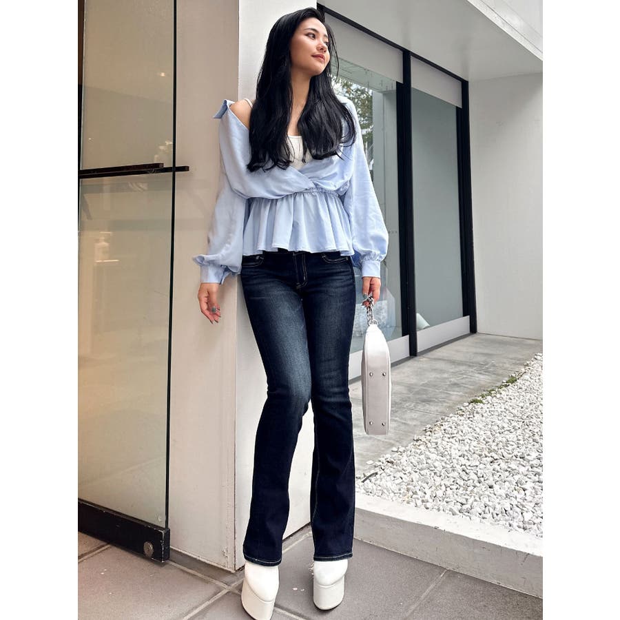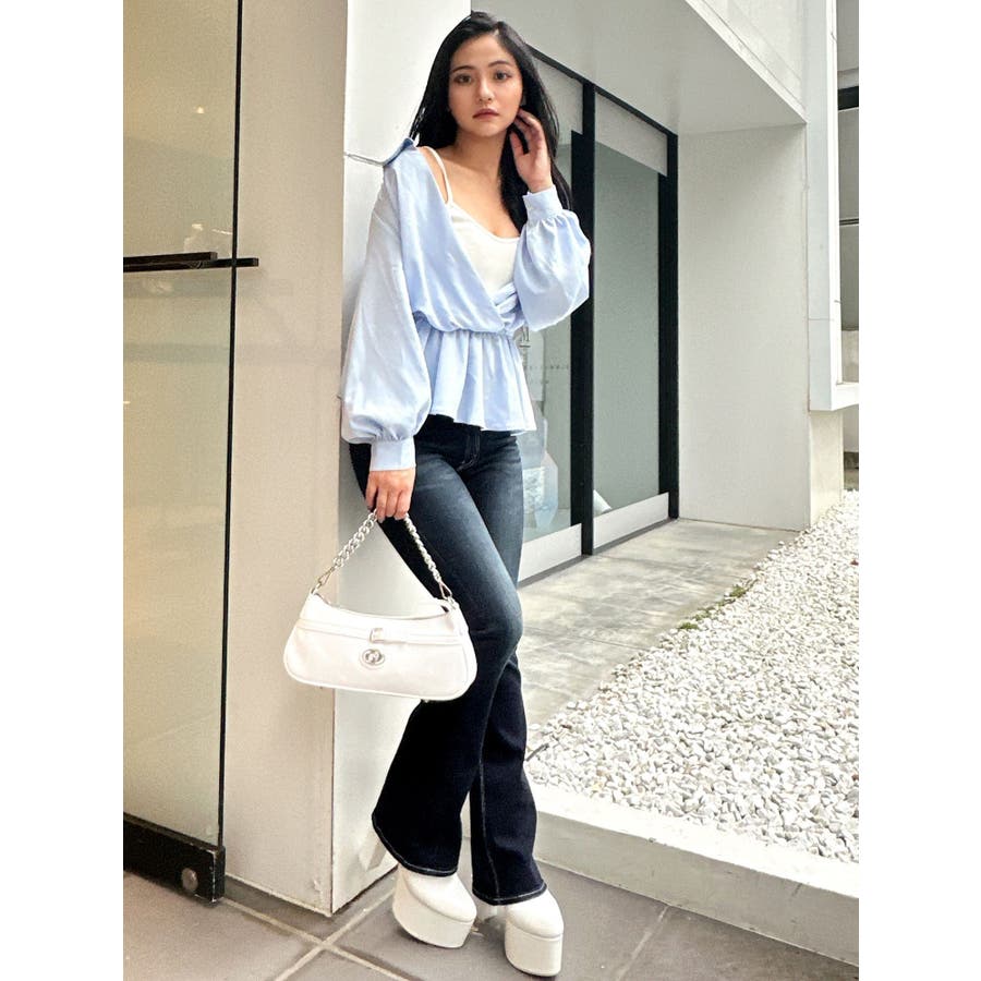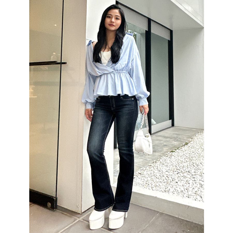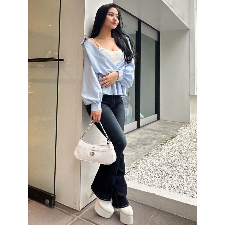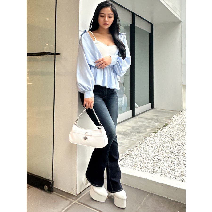 キャミレイヤードオフショルペプラムシャツ