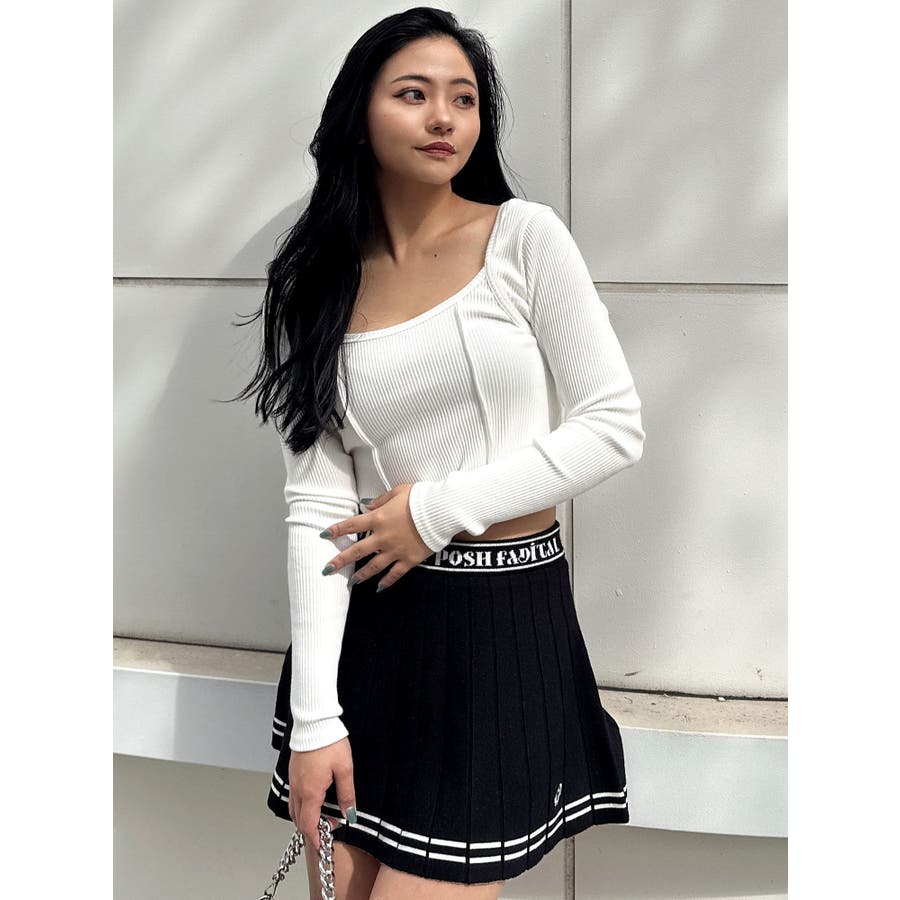 ■デザイン ウエストにはいった今シーズンテーマ「POSH FADITAL」のロゴがポイントのニットスカート。 裾にはGDロゴが刺繍で入っています。 短めの丈ですがインナーパンツがついているので安心して着用していただけます。 また、フレア感がしっかりあるので太ももの細見え◎ ■スタイリング チョーカー長袖ニットやビジューニットなどのタイト目ニットトップスとあわせてきれいめコーデはもちろん、 Tシャツとあわせてカジュアルなコーデもおすすめです! ■商品のお気に入り登録 再入荷通知やラスト1点、お得なプライスダウンの情報も受け取ることができます。 ぜひご登録ください◎ ■この商品を見ている人におすすめ その他のボトムスはこちら ・・・・・・・・・・・・・・・・・・・・・・ ※着用画像はフラッシュの加減で実際の製品と色味等が異なる場合がございますので、生地のズームアップ画像をご確認ください。 ※ご利用の端末画面の設定により実際の商品と色味が異なる場合がございます。【商品特徴】透け感:なし伸縮性:あり生地の厚さ:普通サイズ感:普通裏地:ありポケット:なし