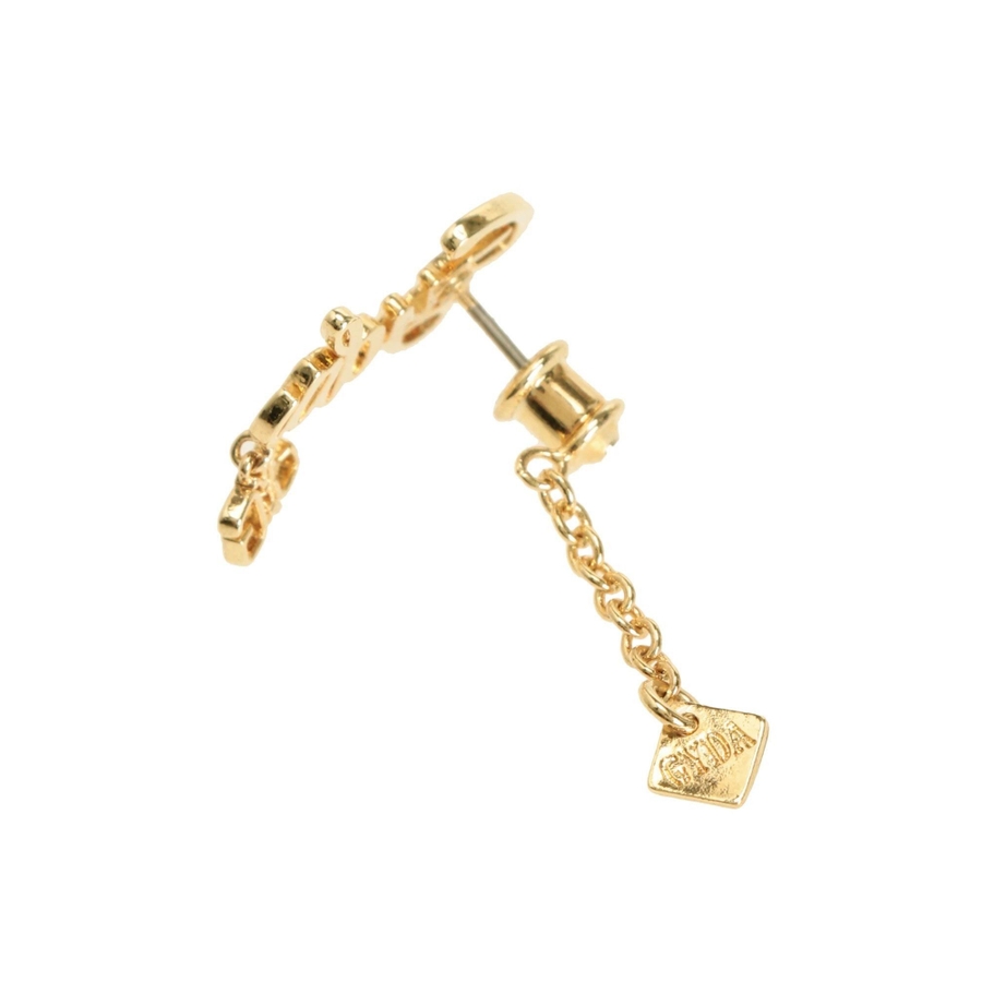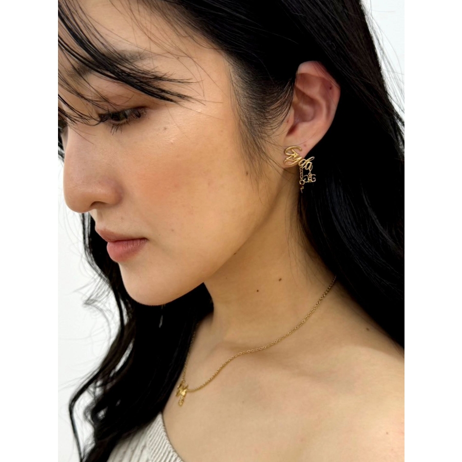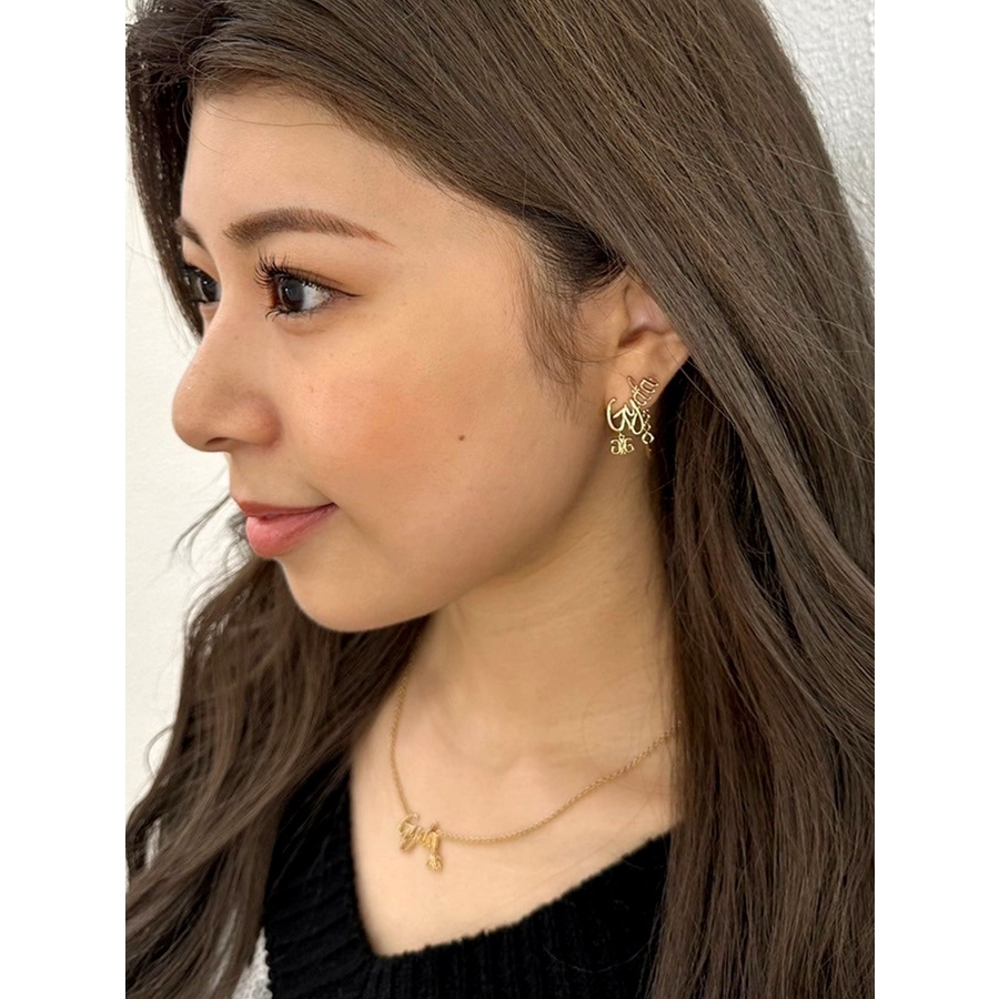 商品コメント:華奢で女性らしい筆記体のGYDA(ジェイダ)に オリジナルロゴのチャームをつけた動きのあるピアスです。 コーデ:ワンピースやスカートのコーデによく合います。