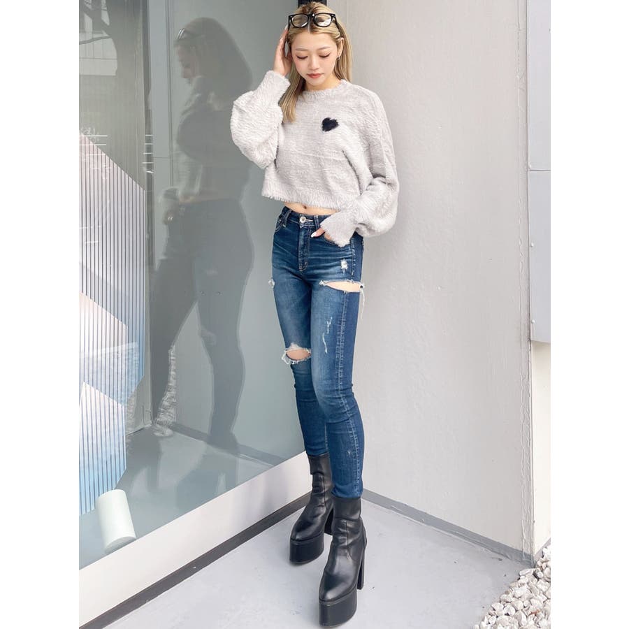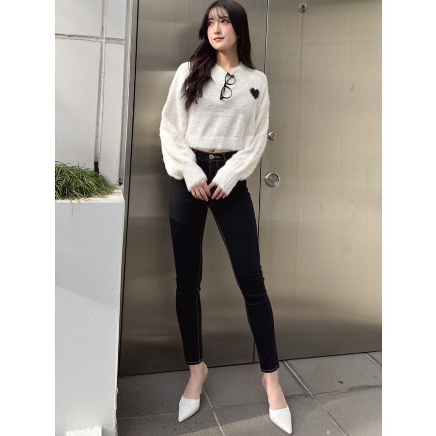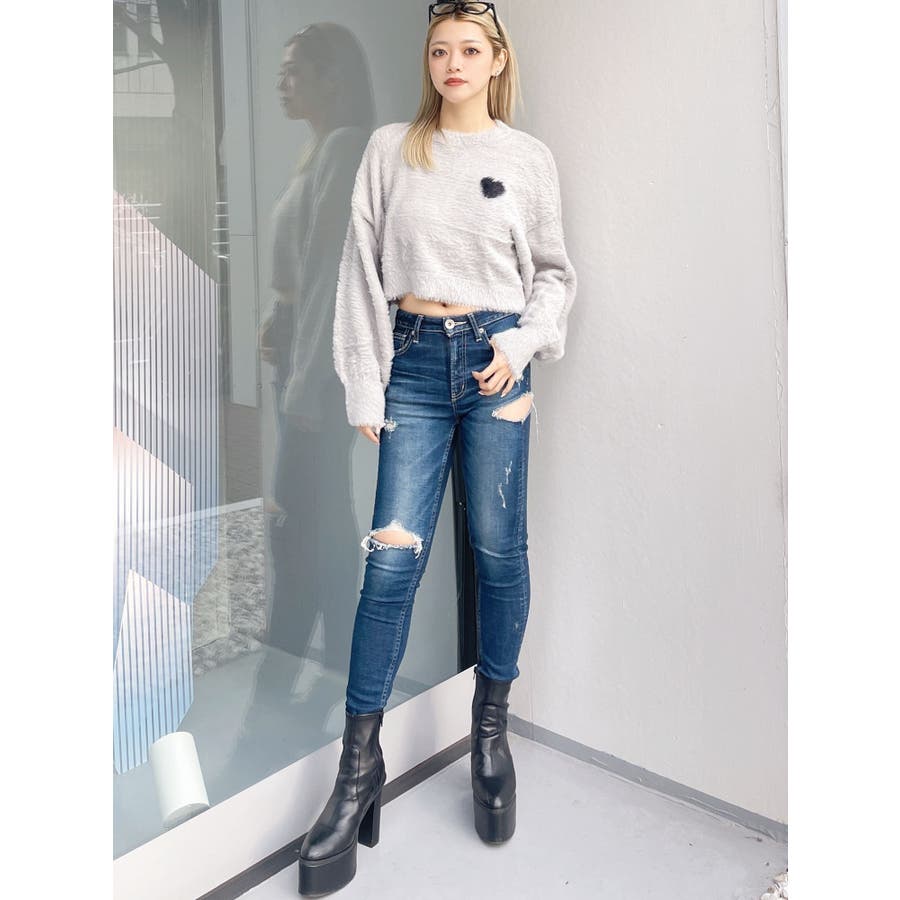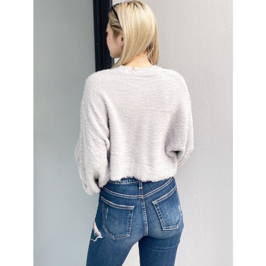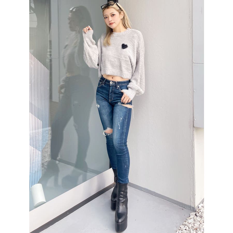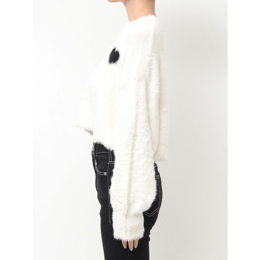 SHOPLIST限定アイテム 左胸のハートロゴが特徴的な、ふんわりタッチで思わず触りたくなるトレンド感あるシャギーニットトップスです。 袖にボリュームを出し女性らしく、クロップド丈でスタイルUPも期待できます。 デニムはもちろん、クロップド丈なのでどんなボトムとも相性がいいです。【商品特徴】透け感:なし伸縮性:あり生地の厚さ:薄手サイズ感:ゆったり裏地:なしポケット:なし