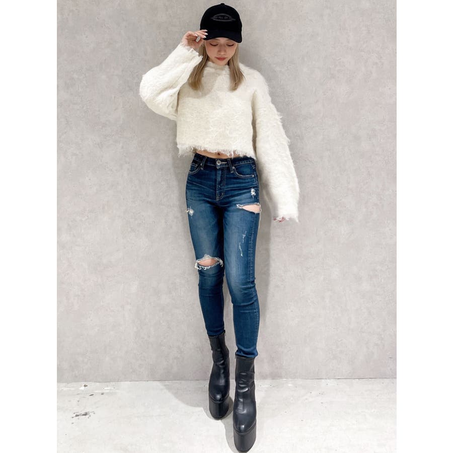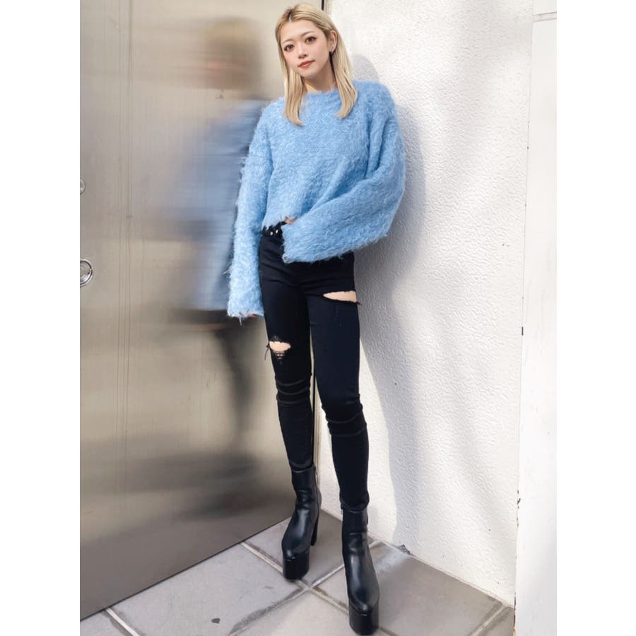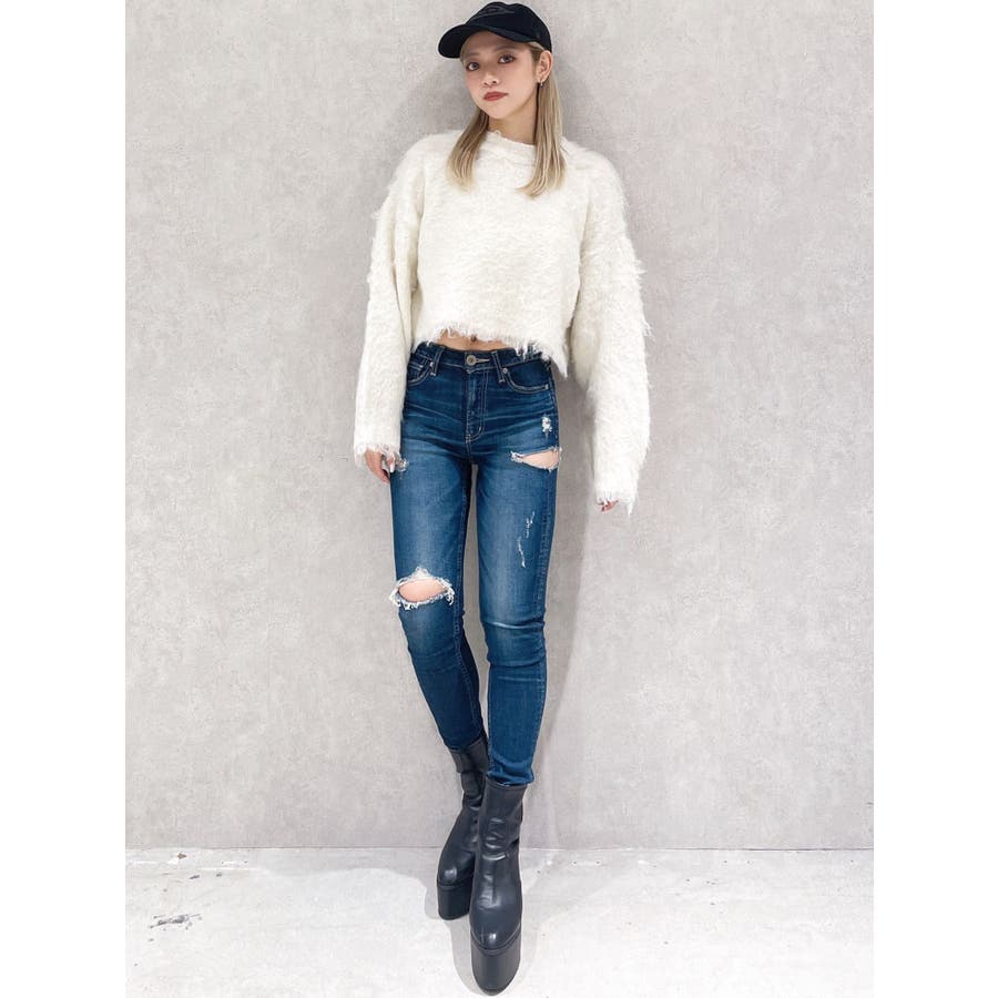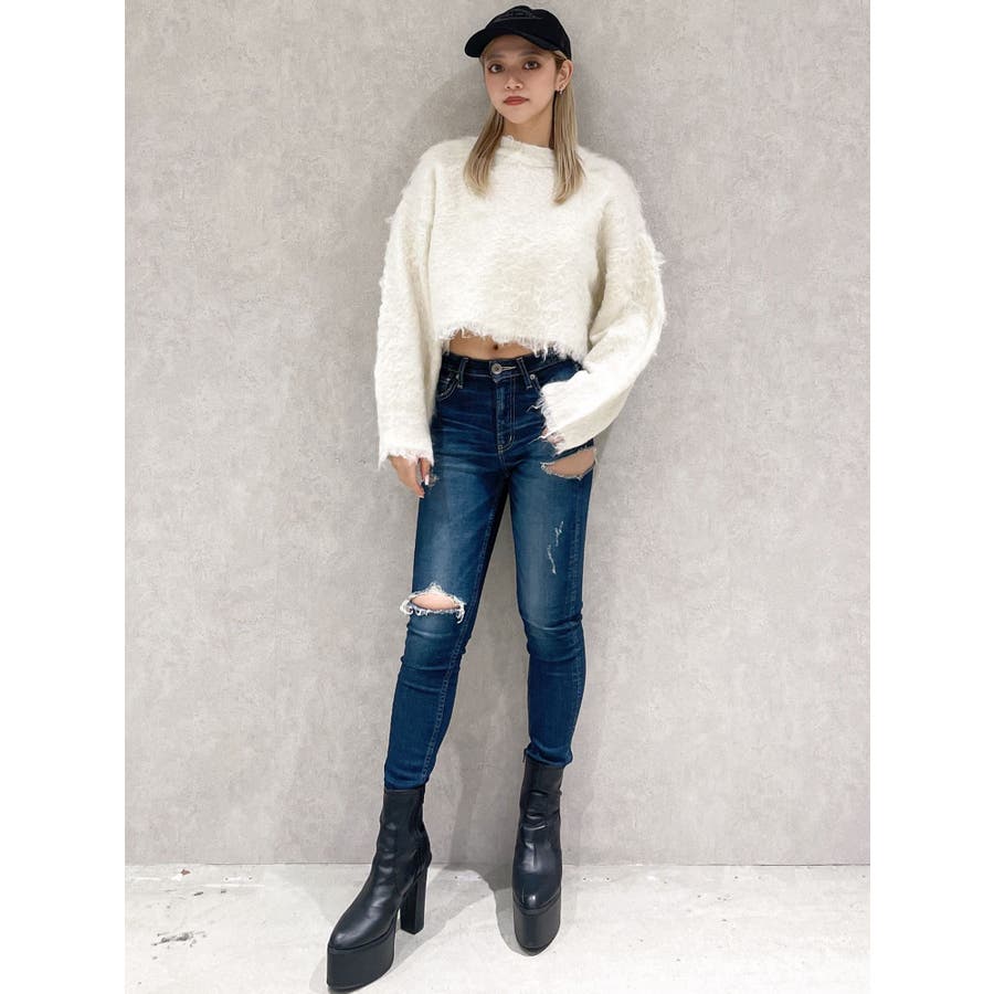 モヘアタッチシャギーショートニットトップス【WEB限定】