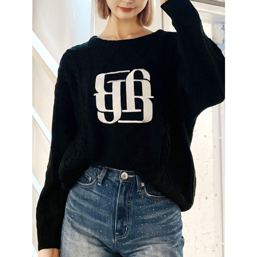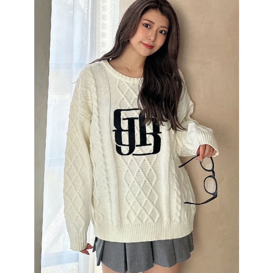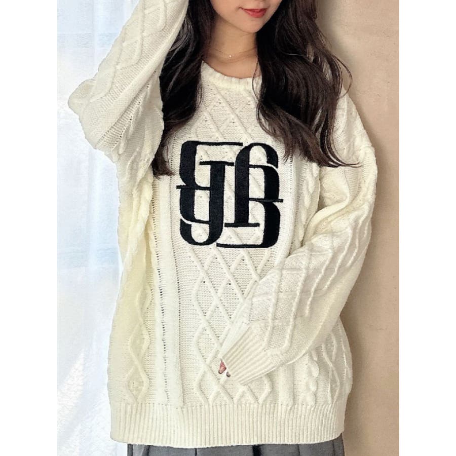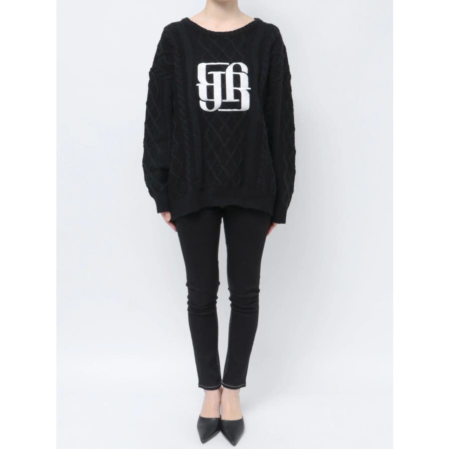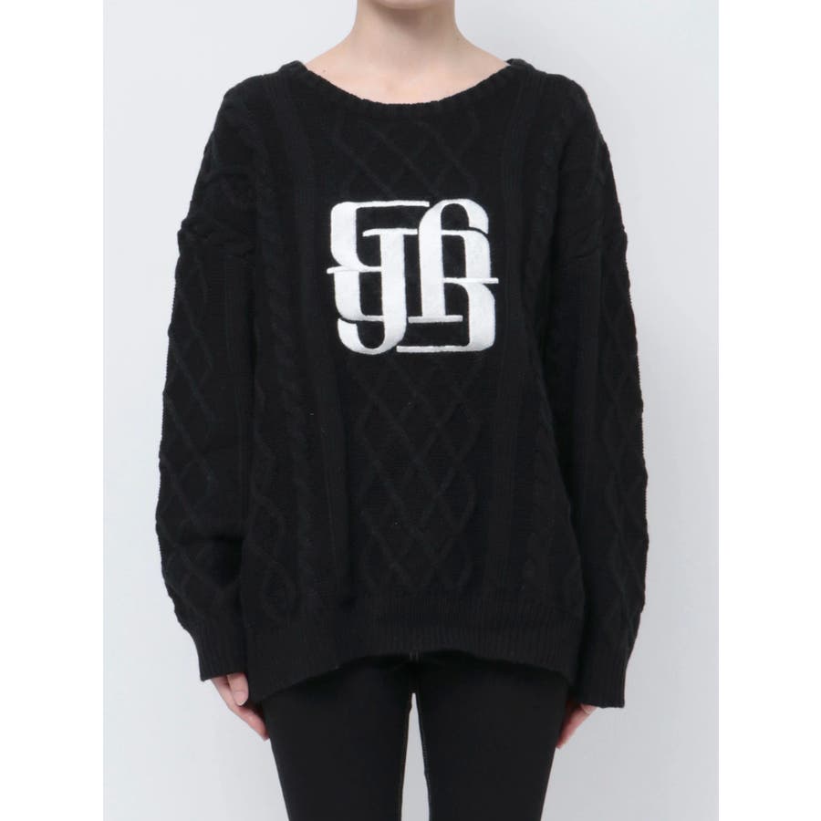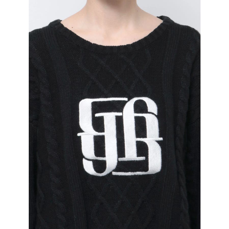 BIG GYGYロゴ刺繍ケーブルニットトップス