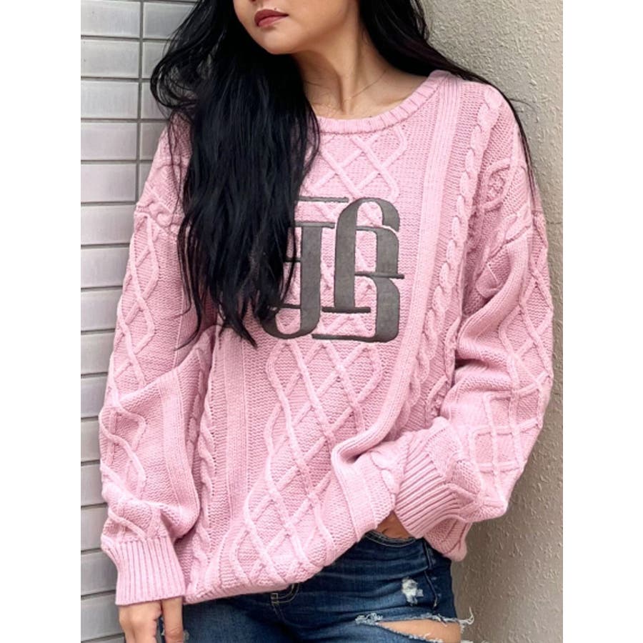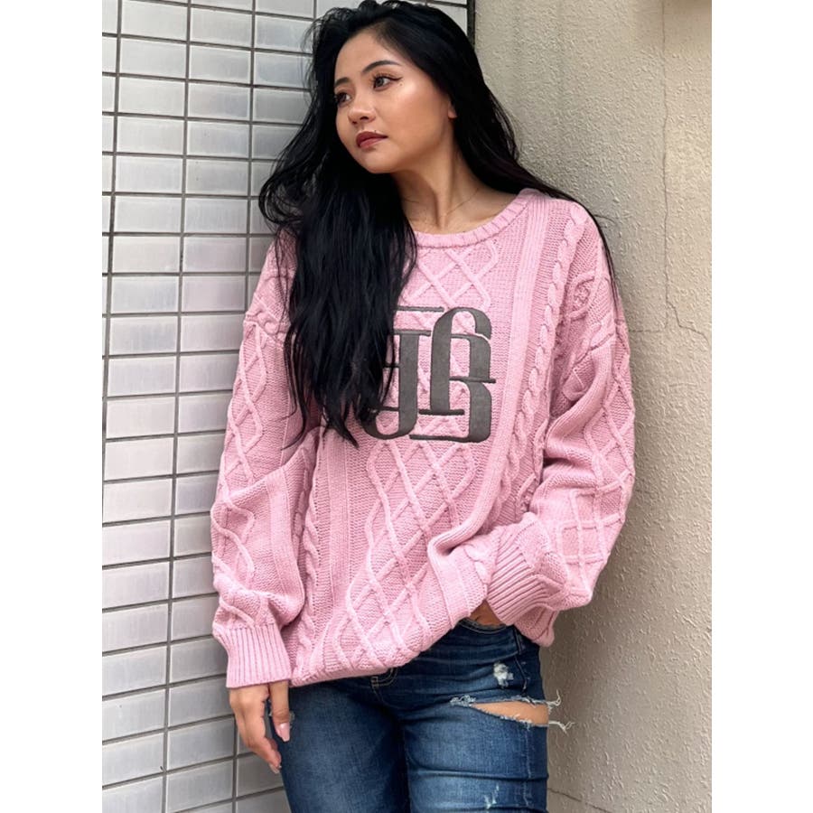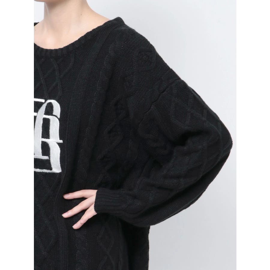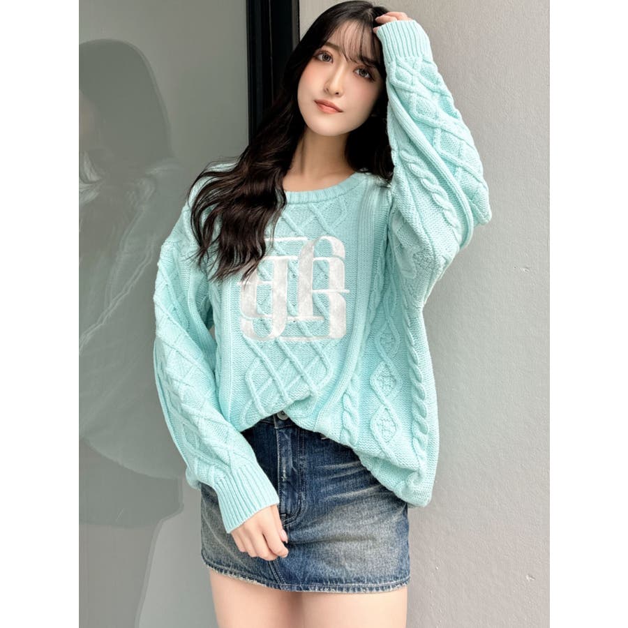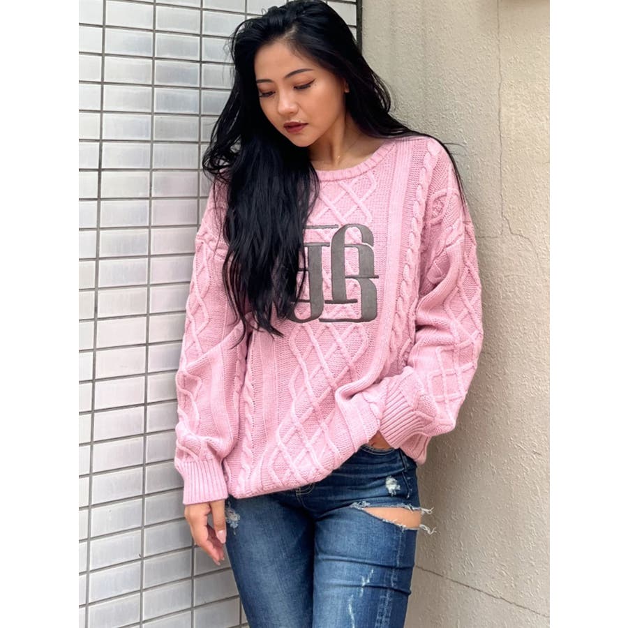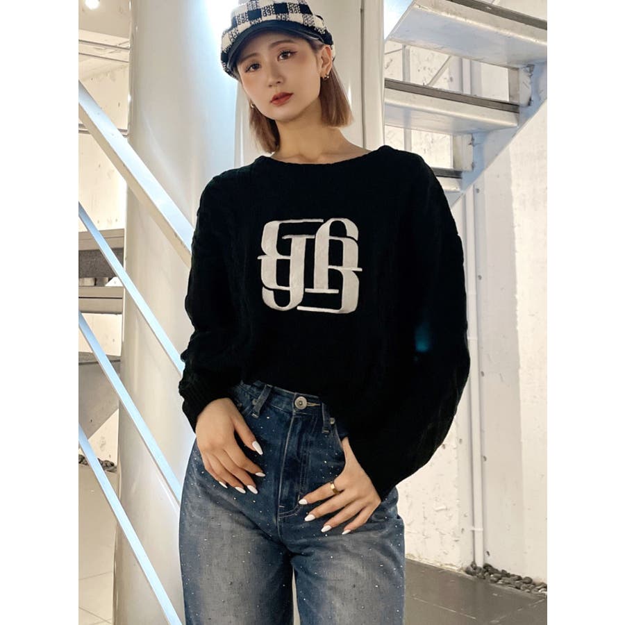BIG GYGYロゴ刺繍ケーブルニットトップス