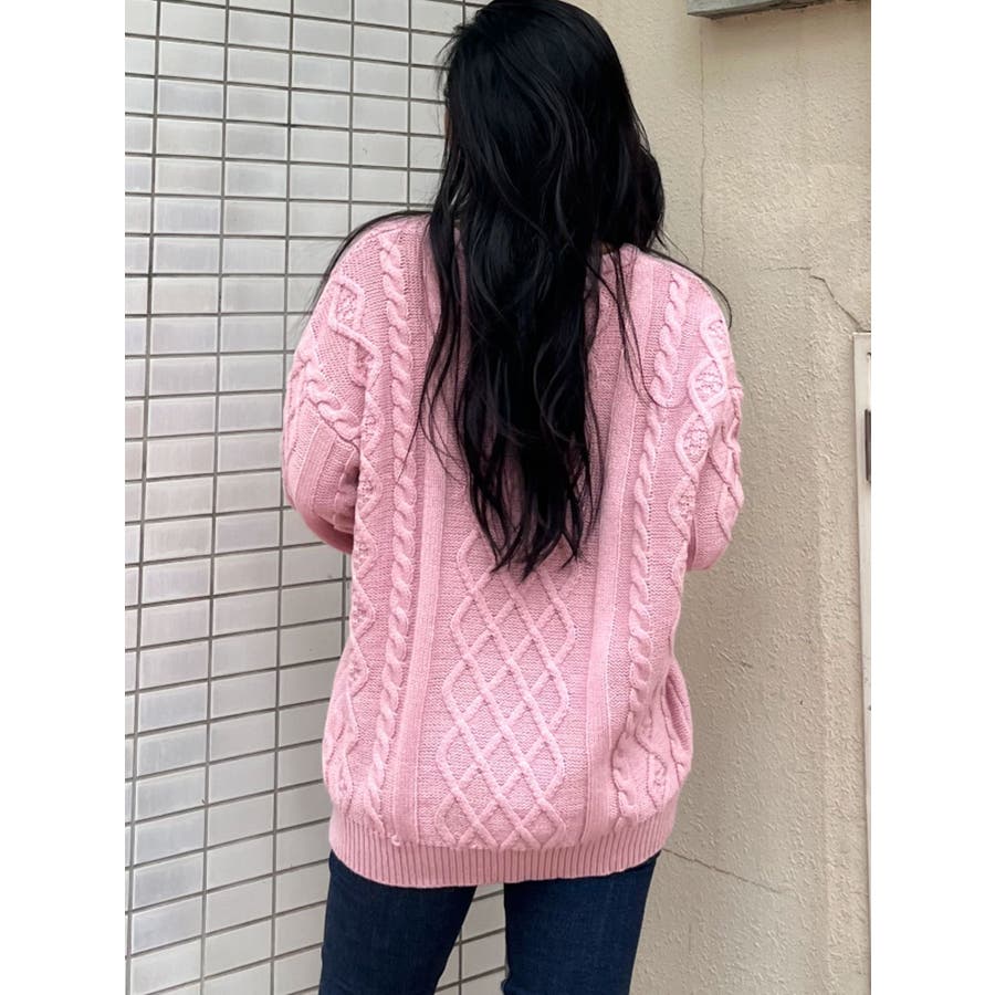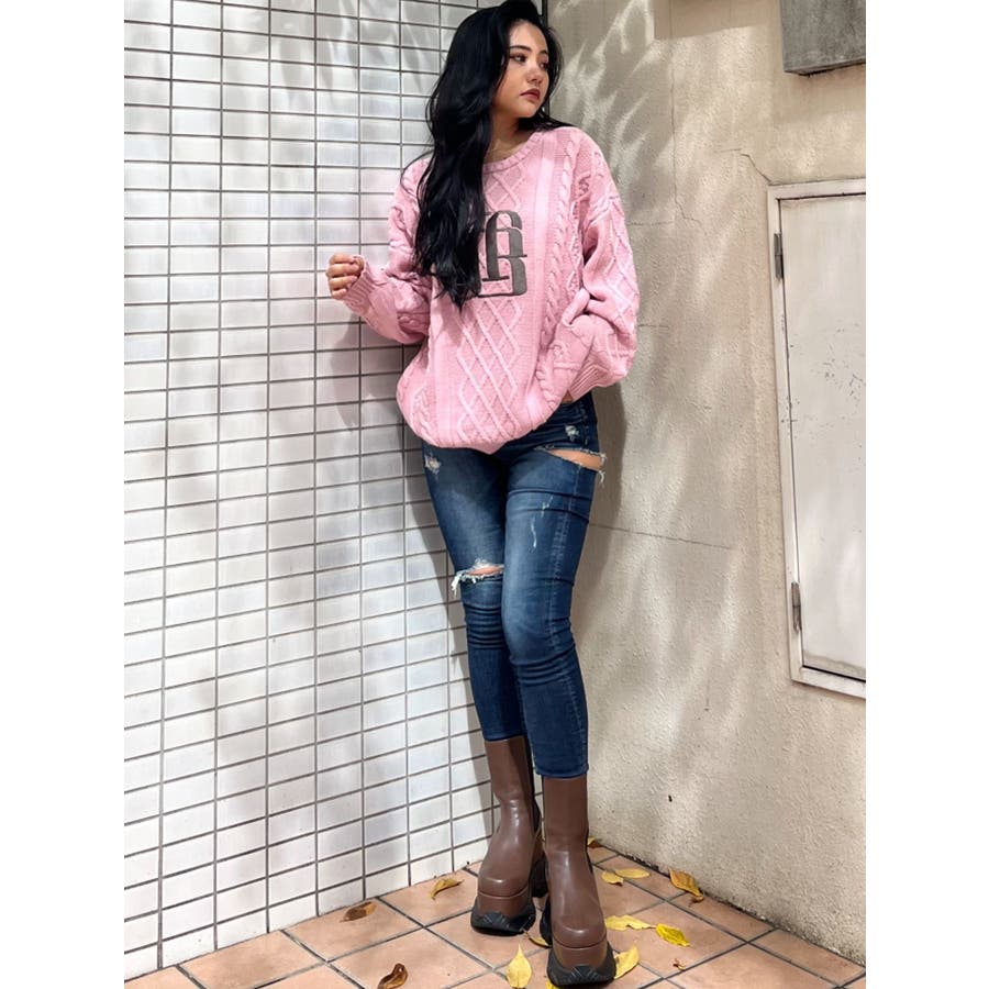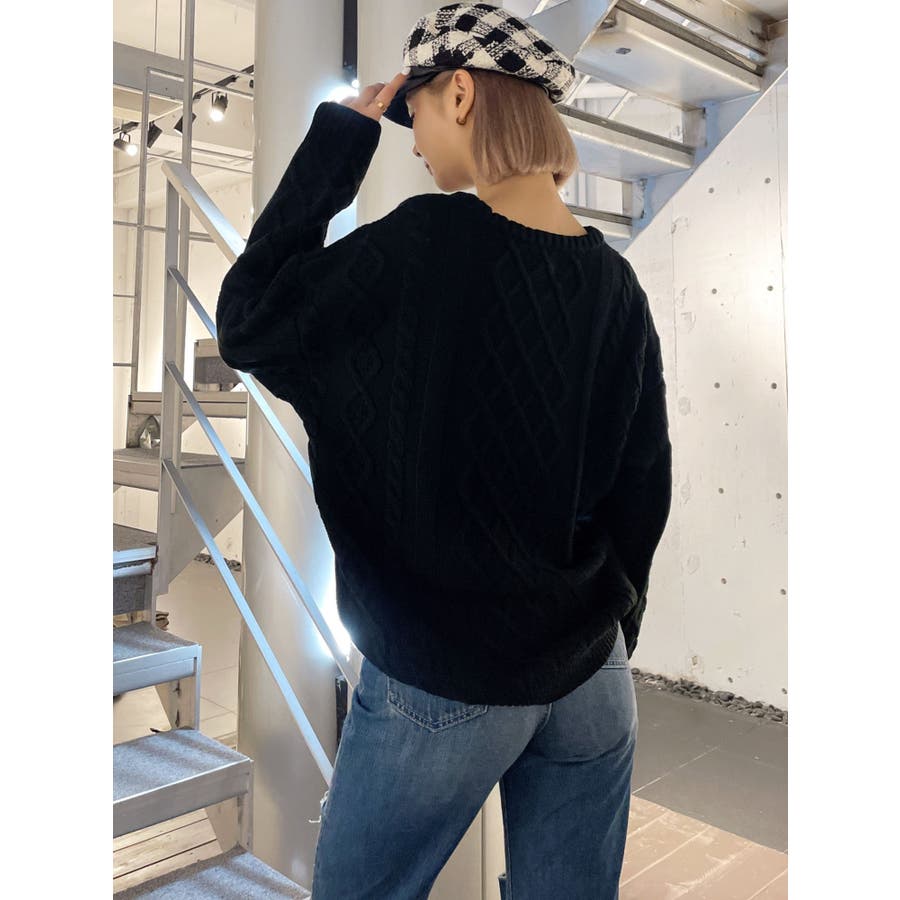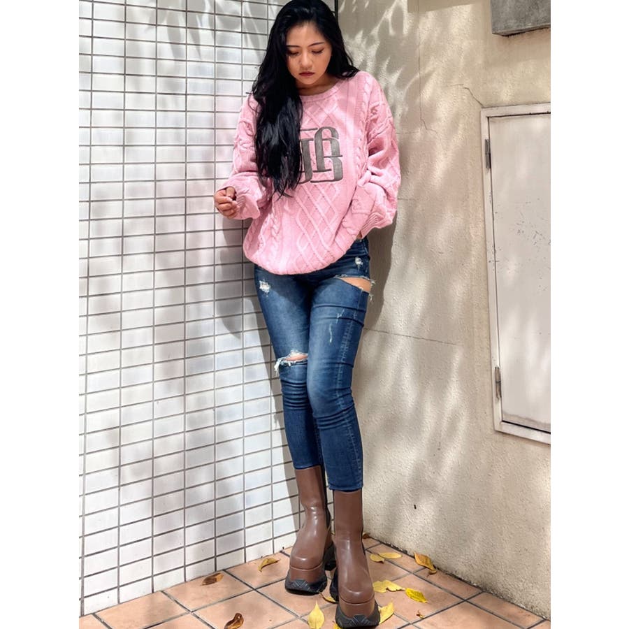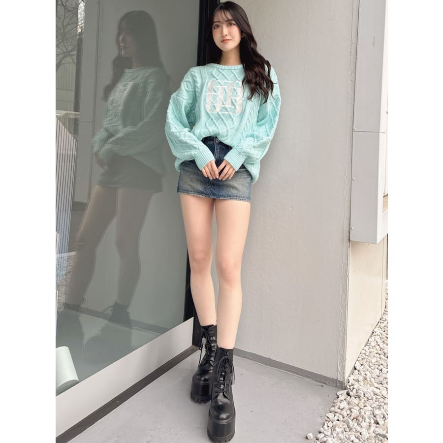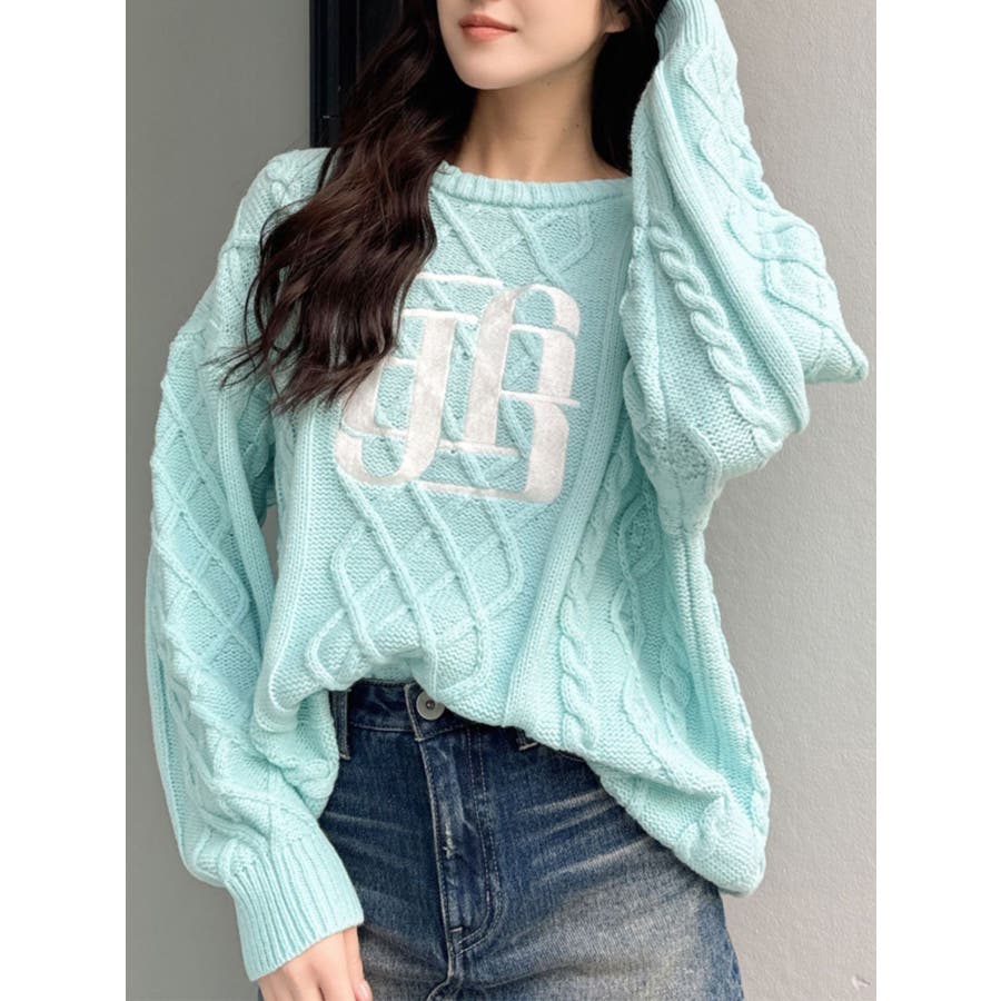 BIG GYGYロゴ刺繍ケーブルニットトップス