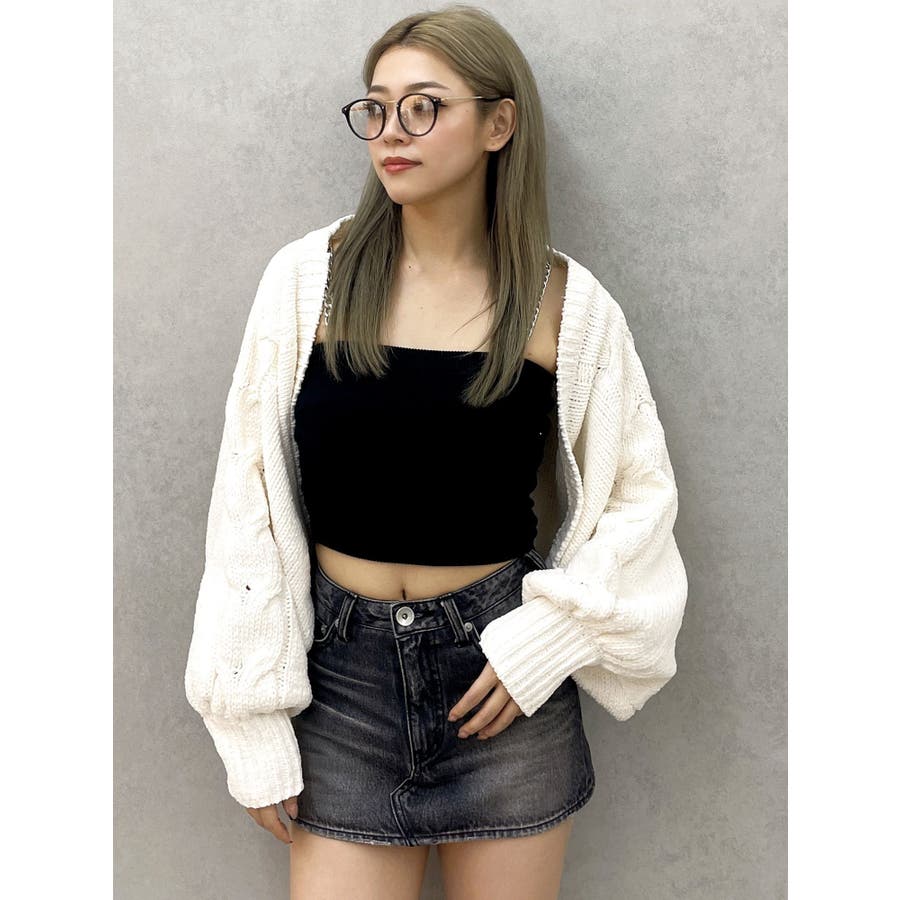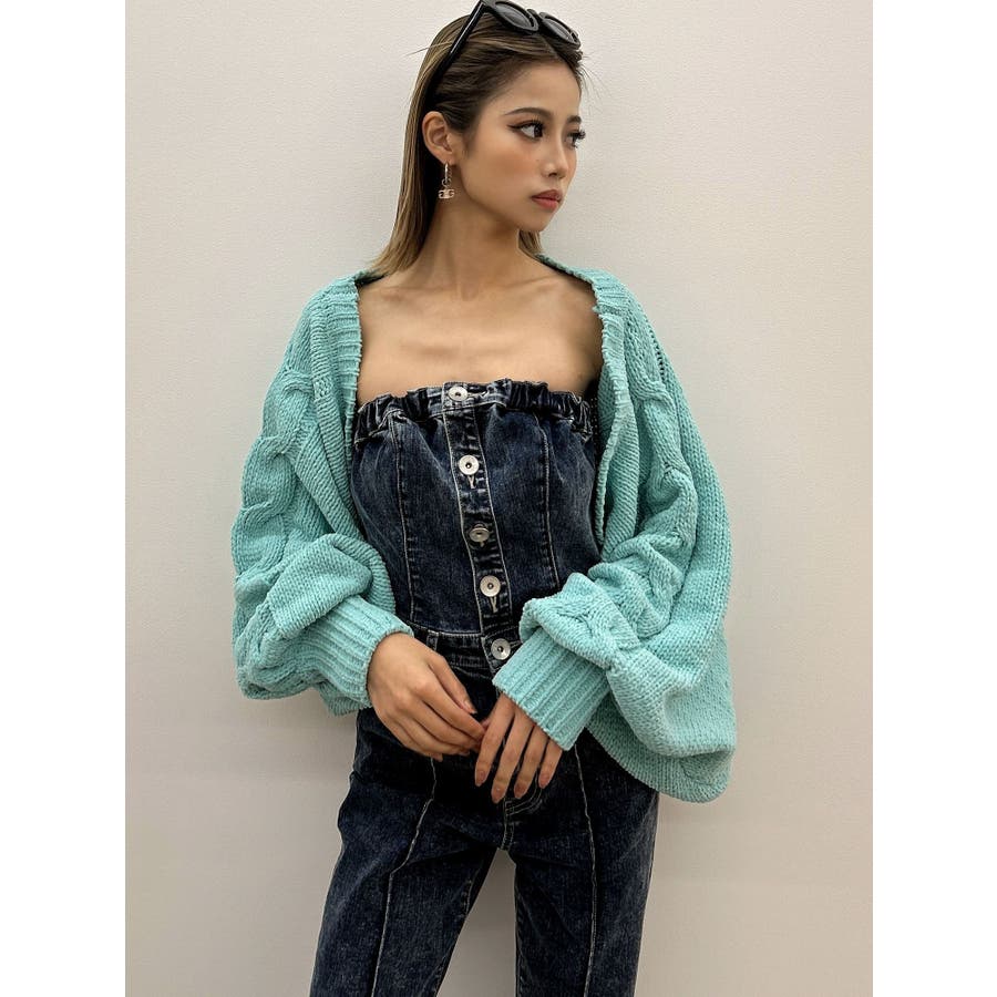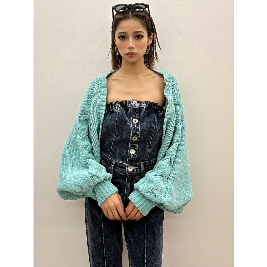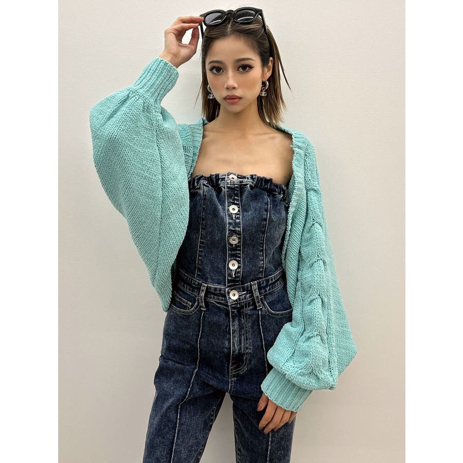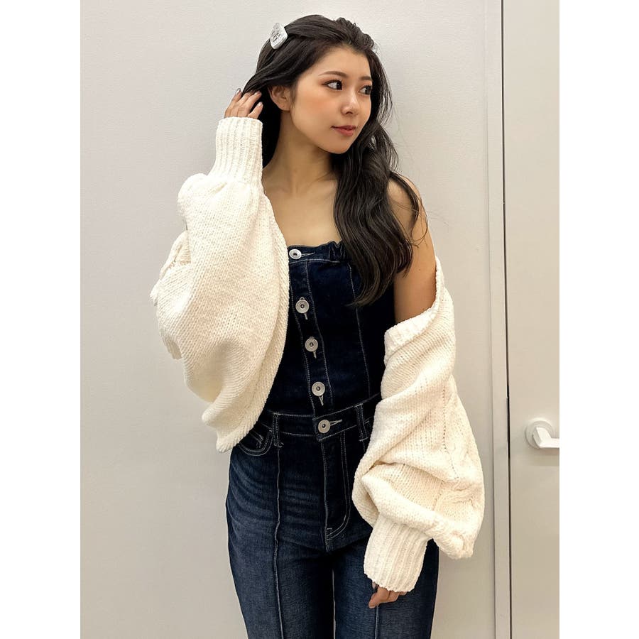 バルーンスリーブケーブルニットボレロ