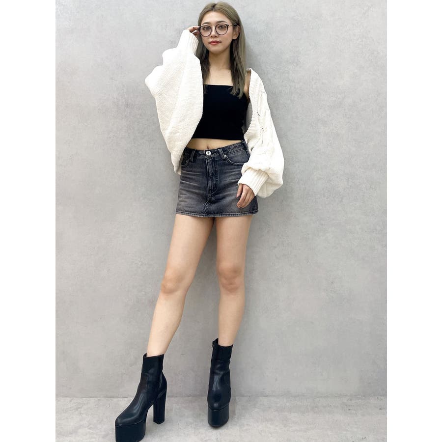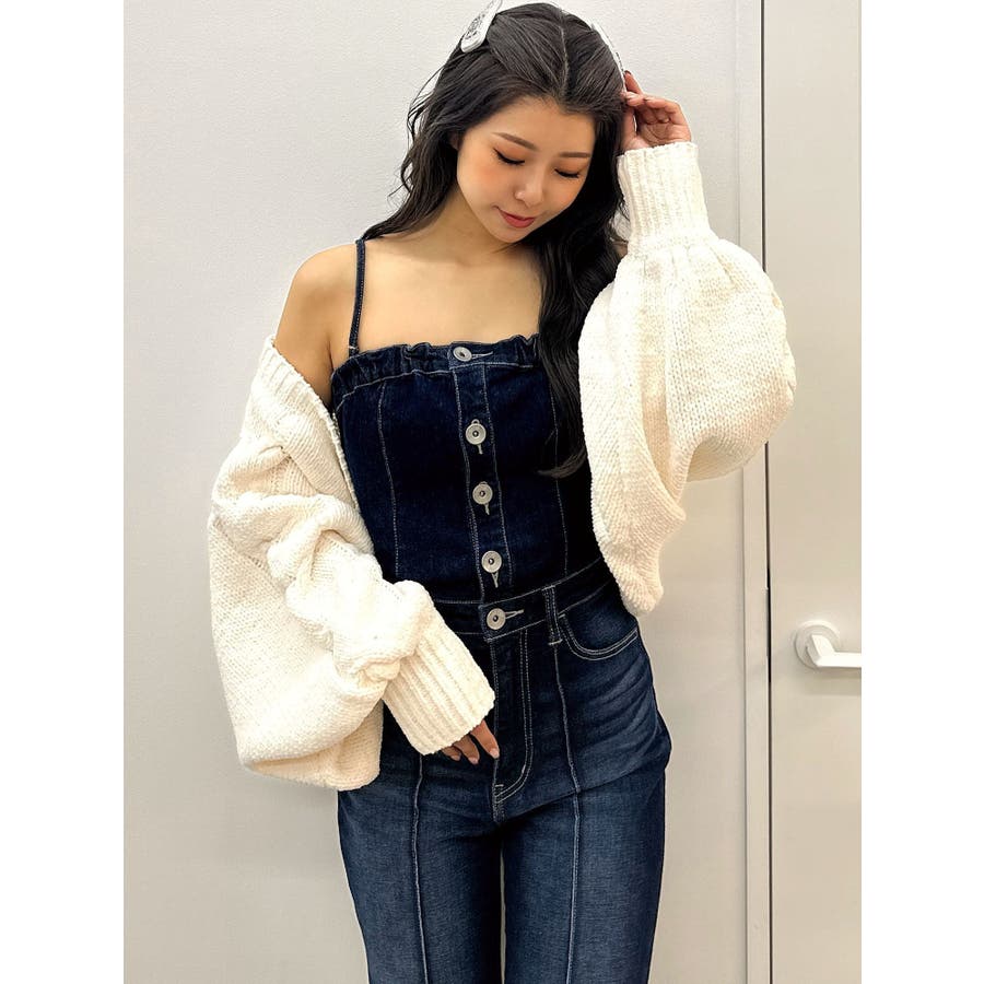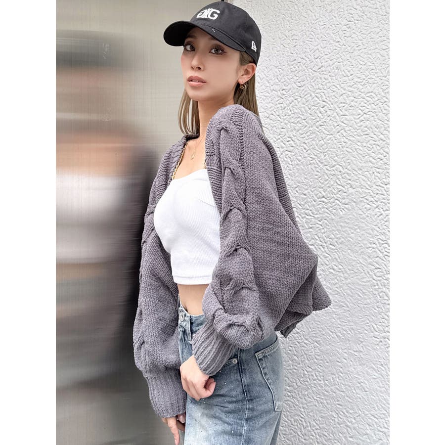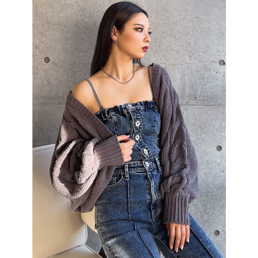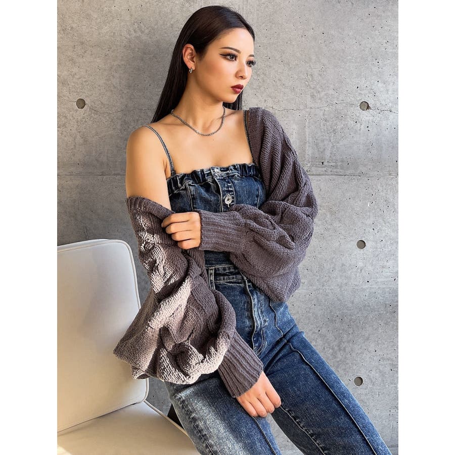 バルーンスリーブケーブルニットボレロ