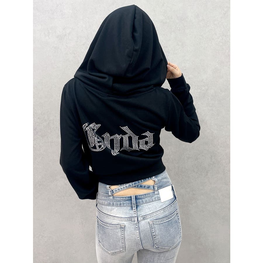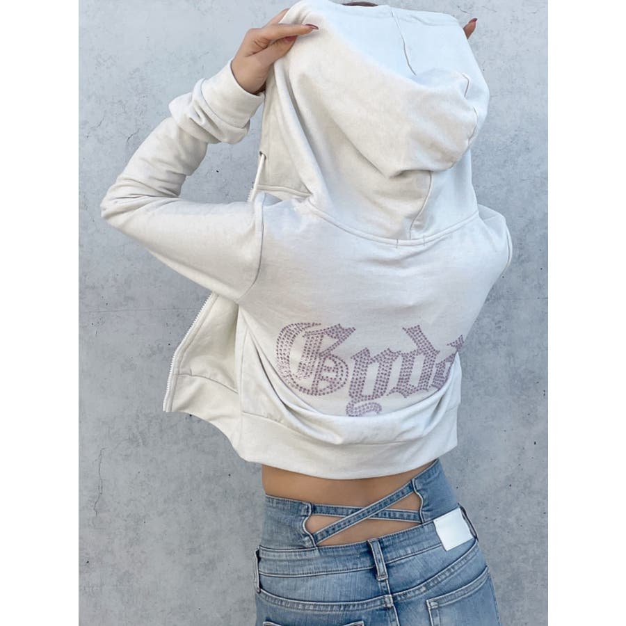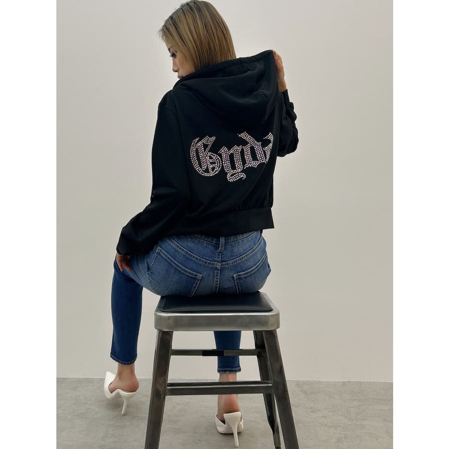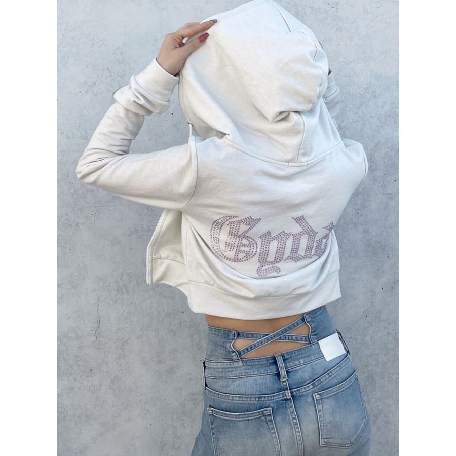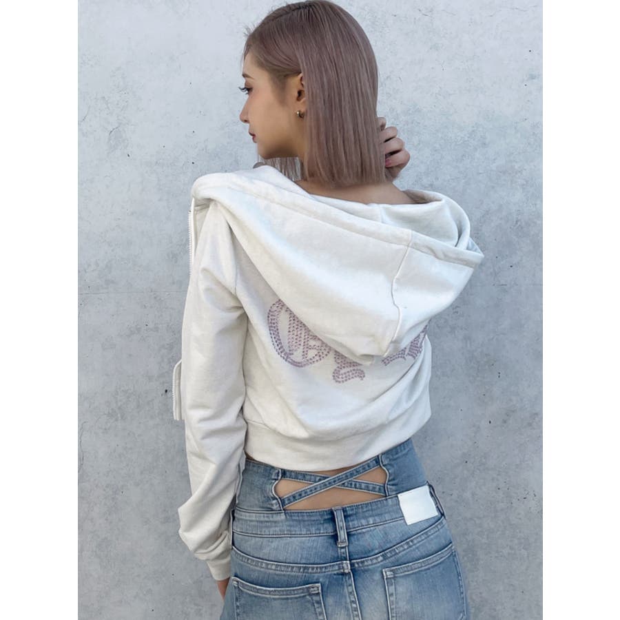 後ろのストーンのロゴも、フードを被らなくてもキラキラと光って本当にかわいいです。