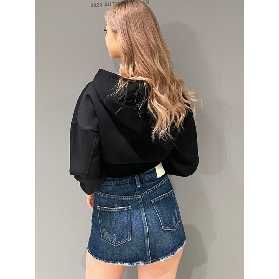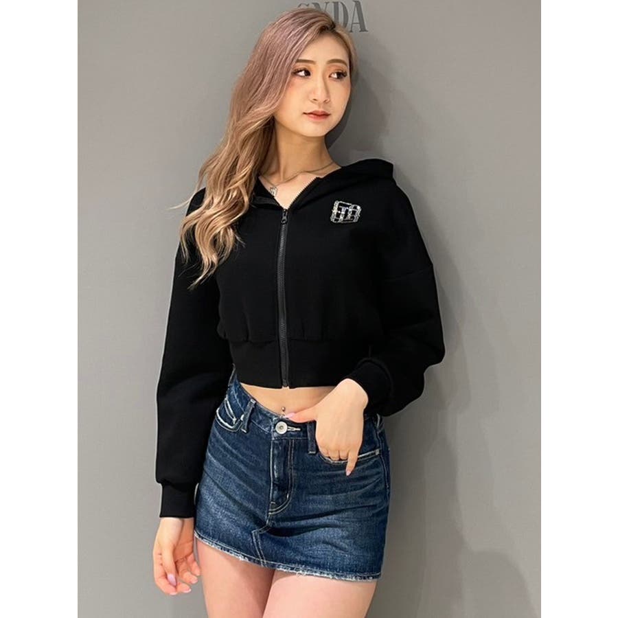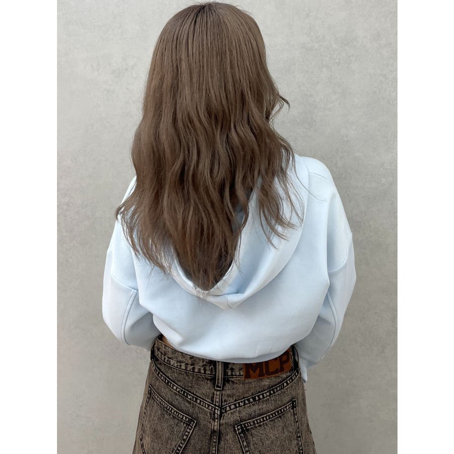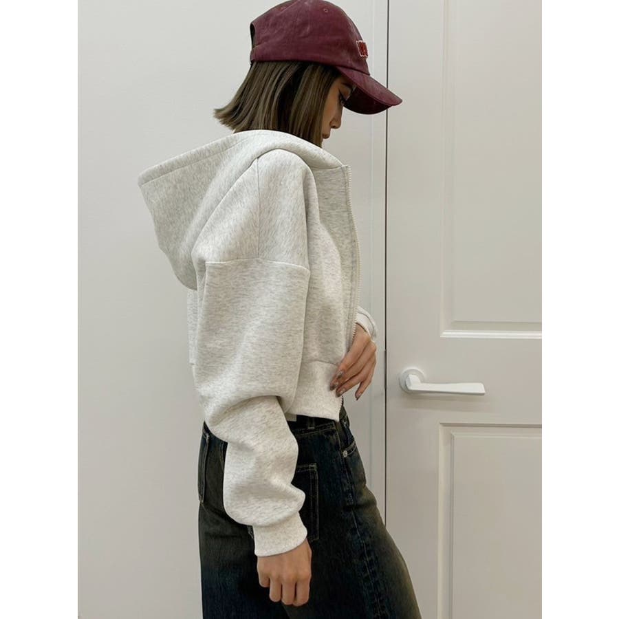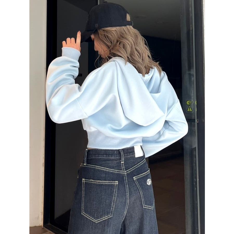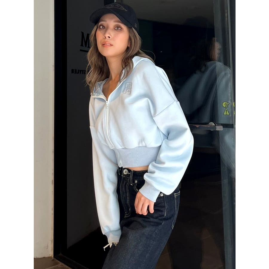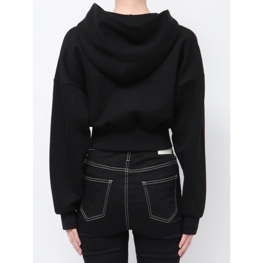 シンプルなショート丈のパーカーはハリ感のある生地を使用していて高級感のある仕上がりになっています。