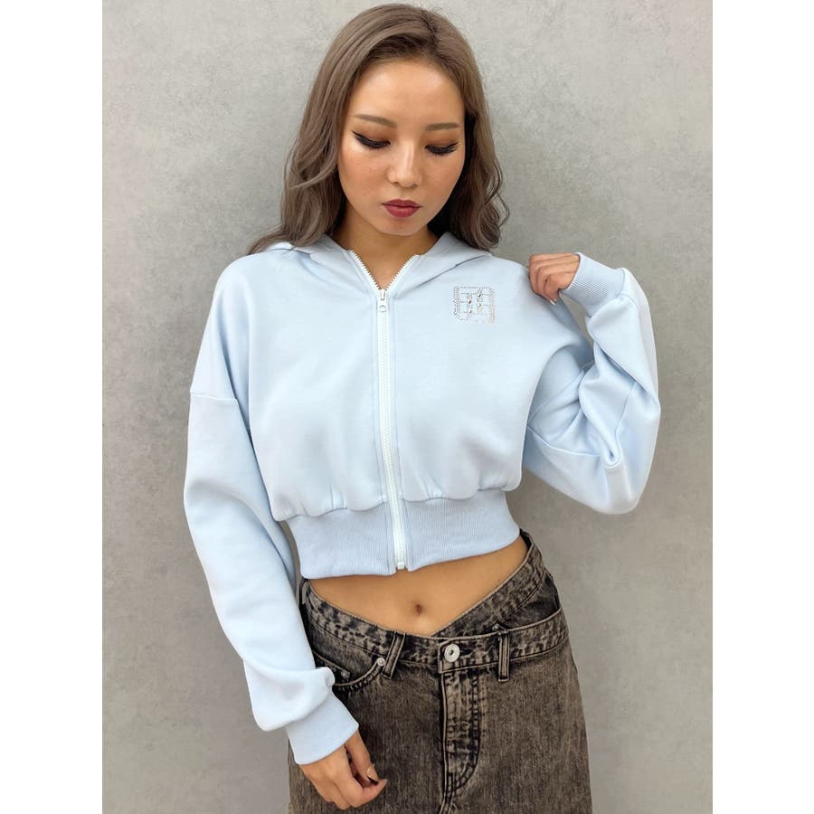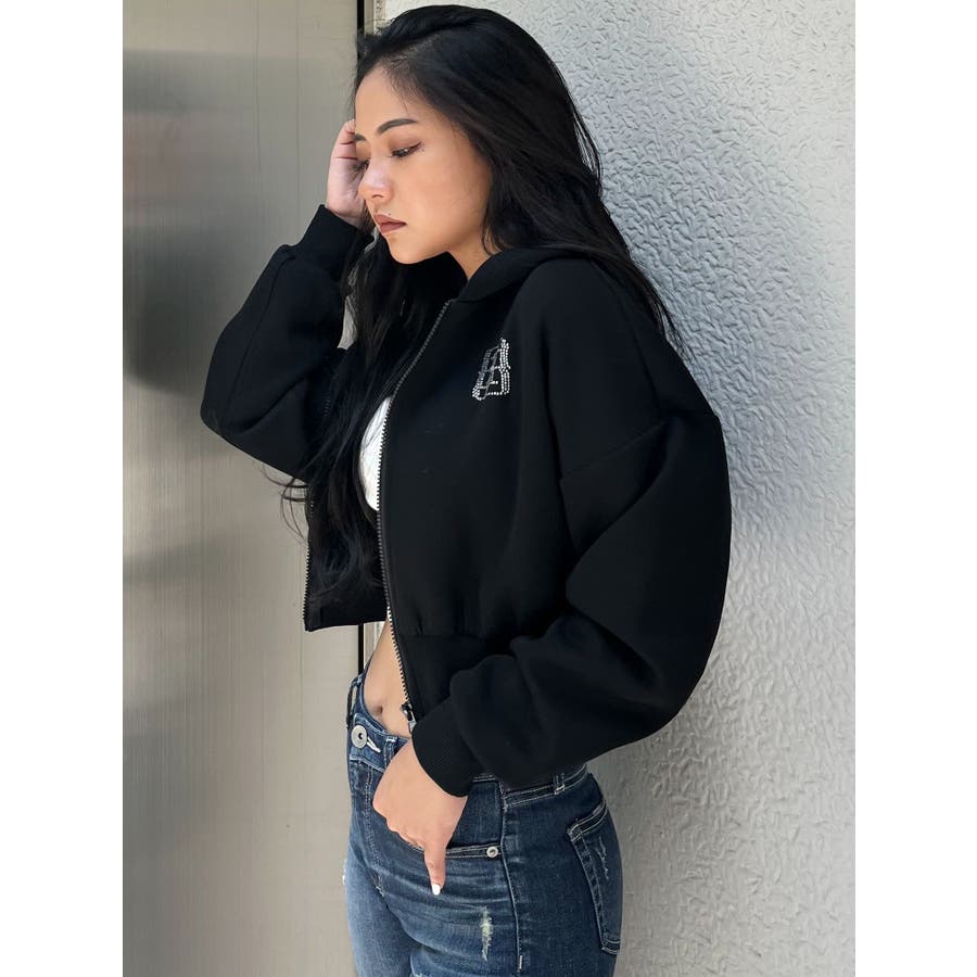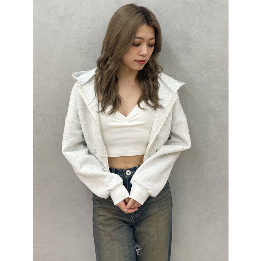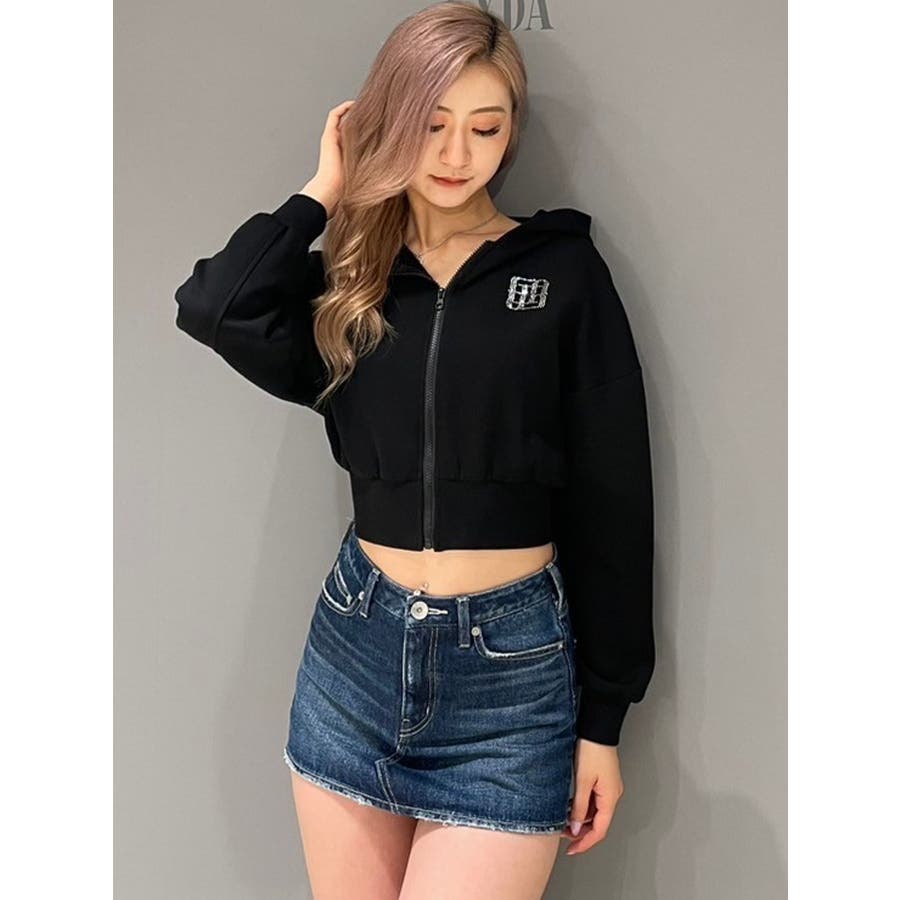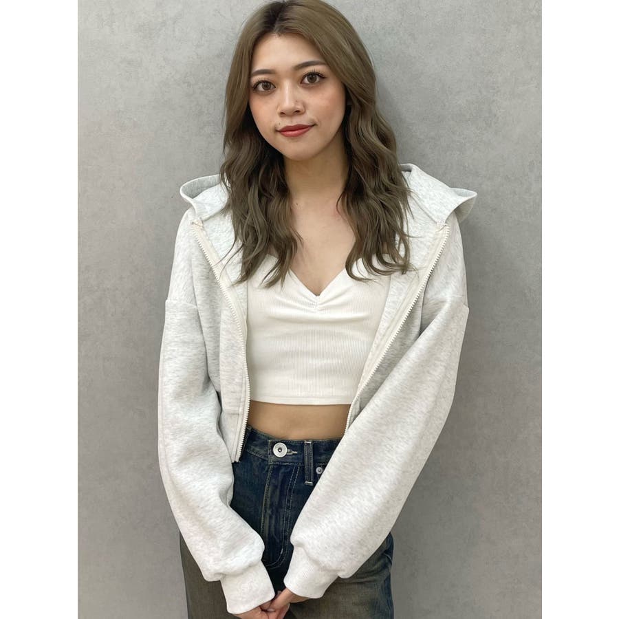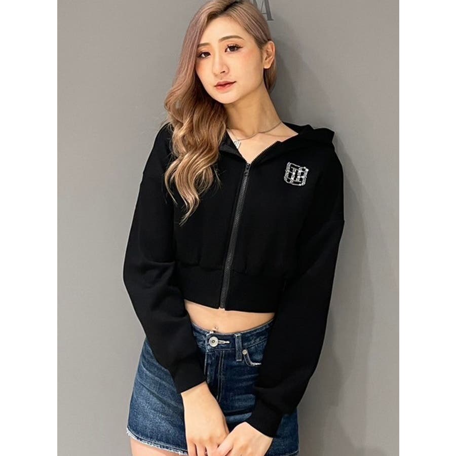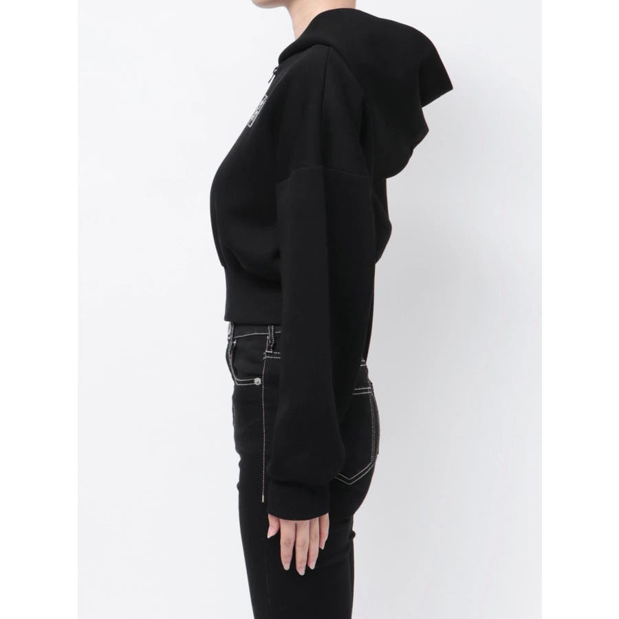 シンプルなショート丈のパーカーはハリ感のある生地を使用していて高級感のある仕上がりになっています。