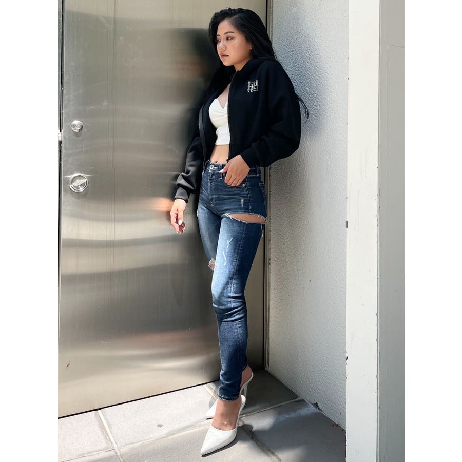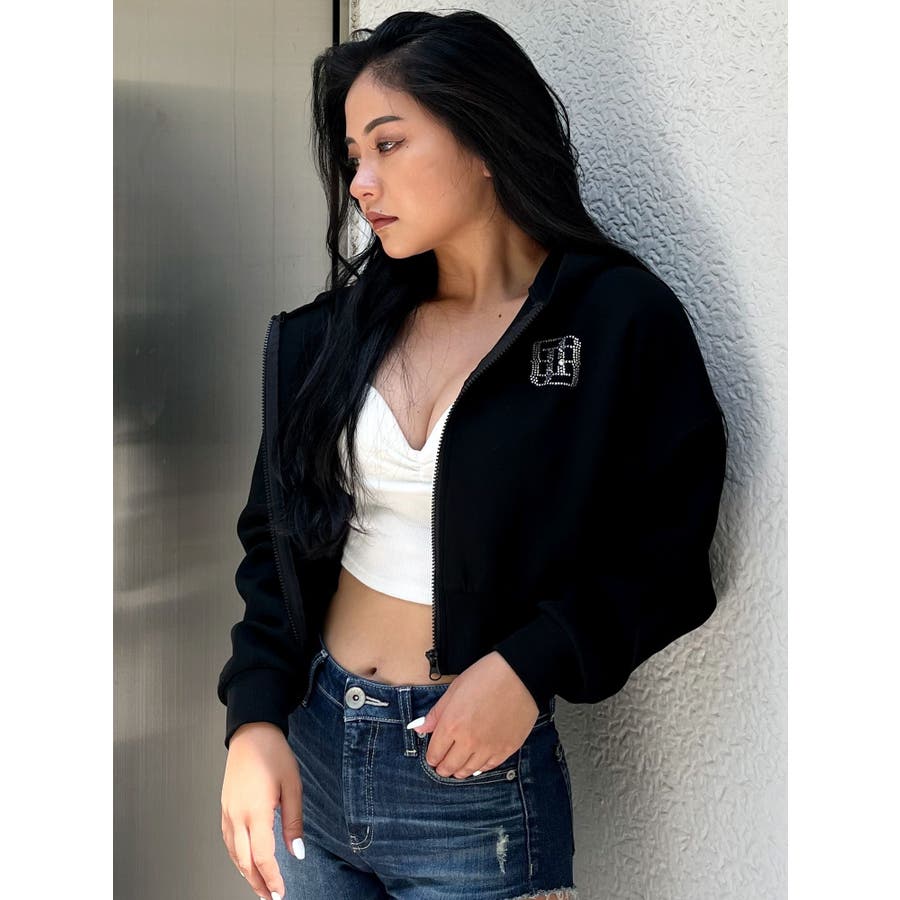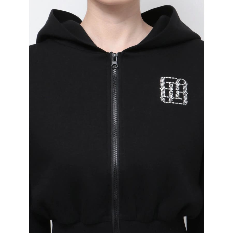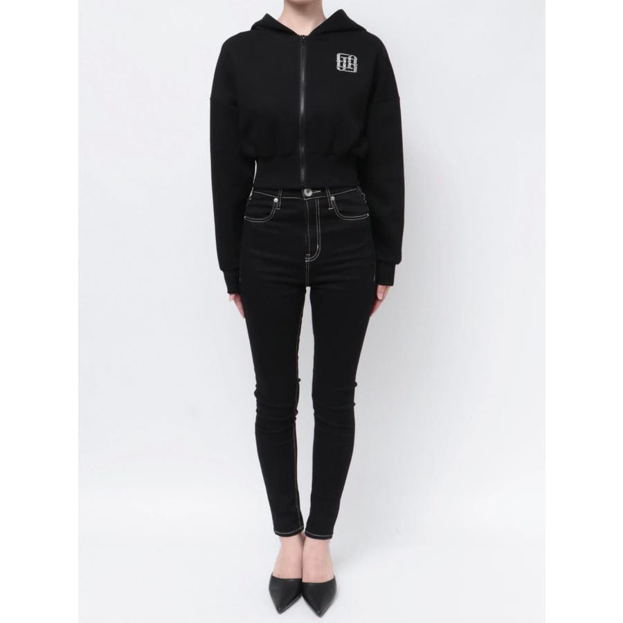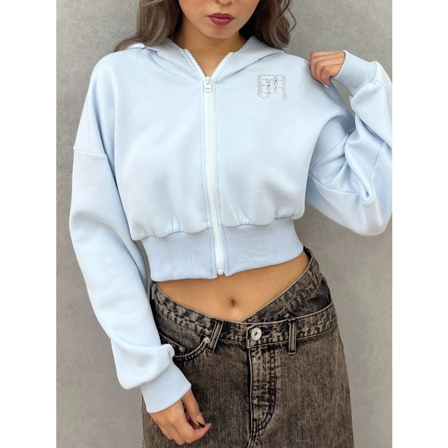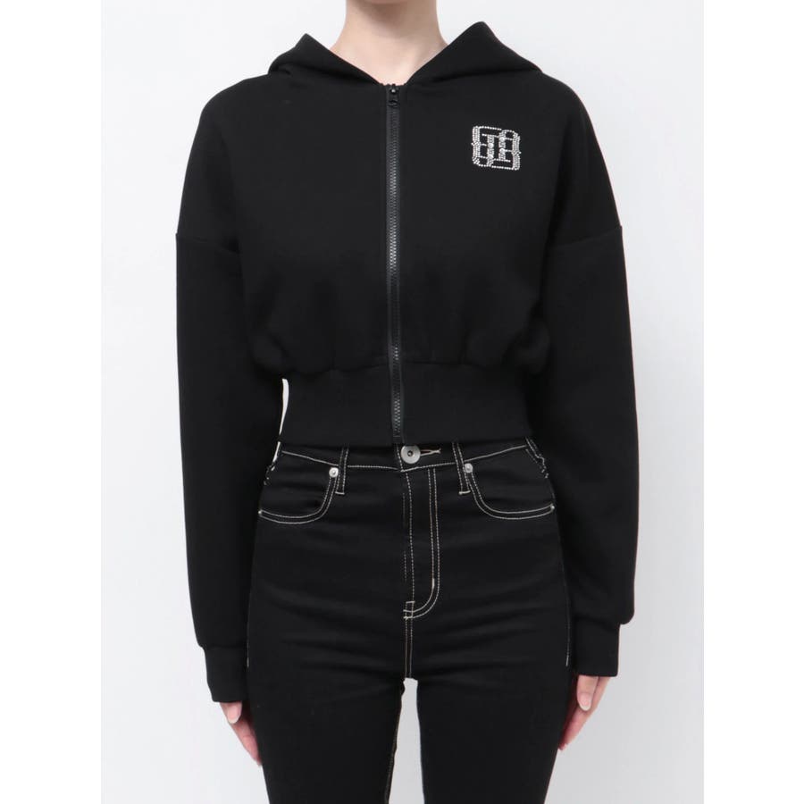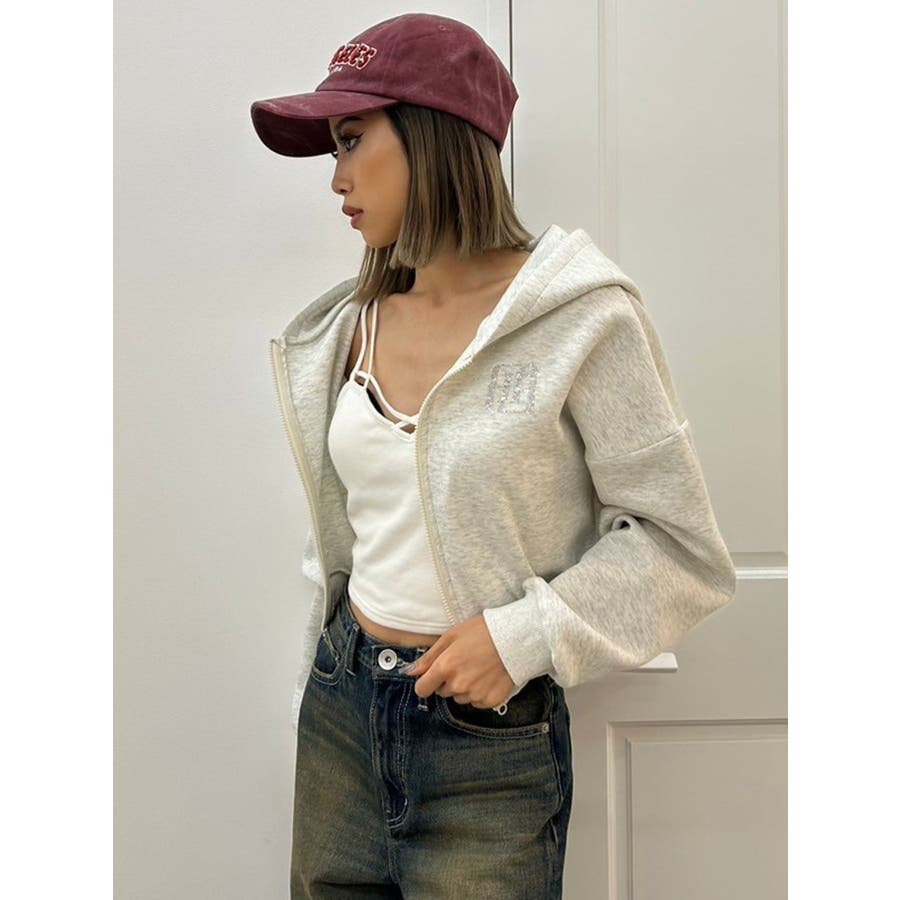シンプルなショート丈のパーカーはハリ感のある生地を使用していて高級感のある仕上がりになっています。