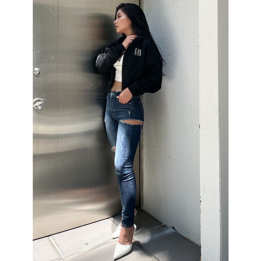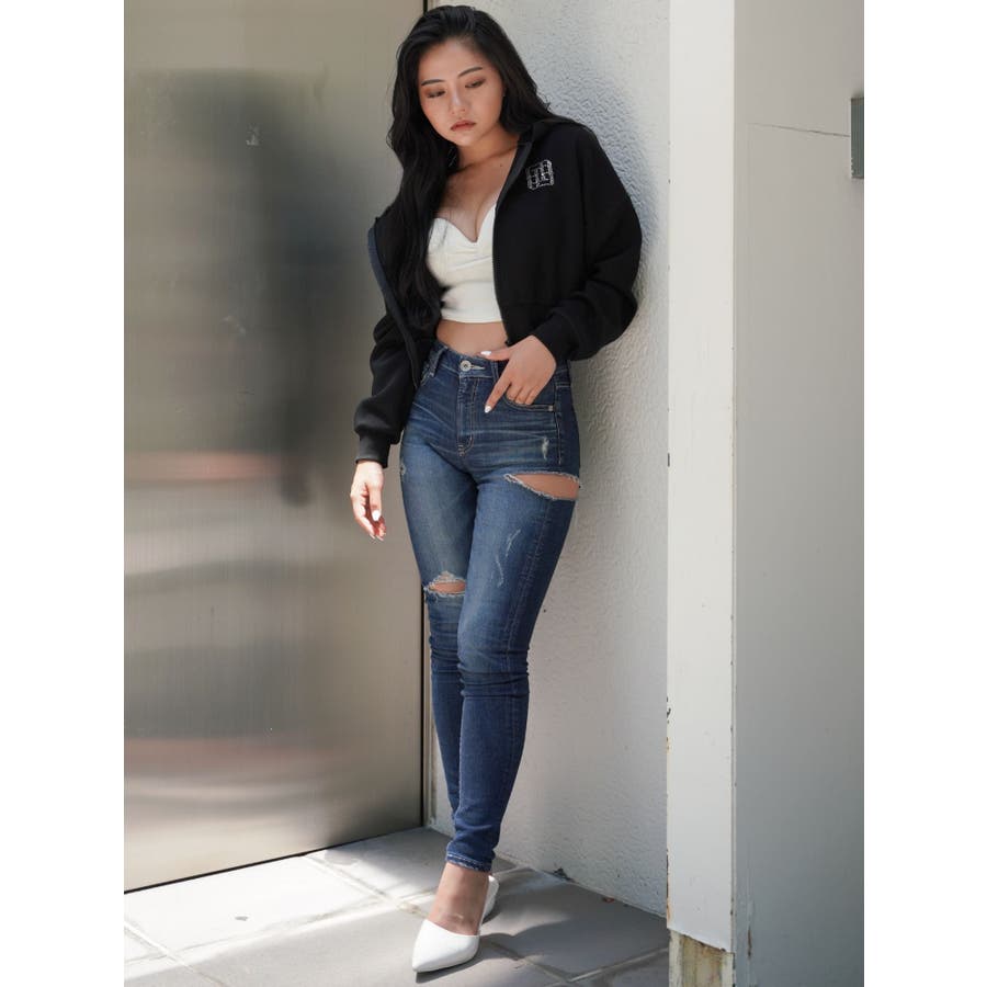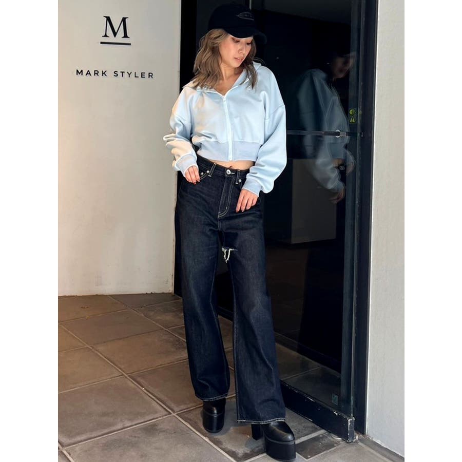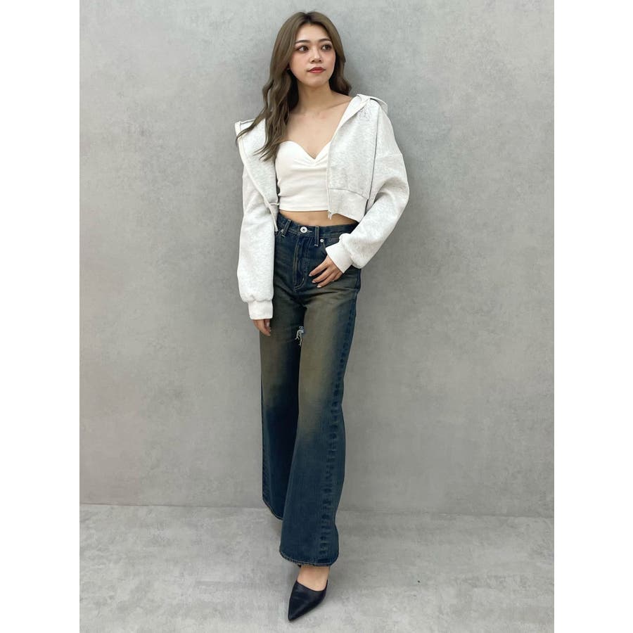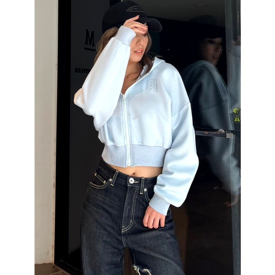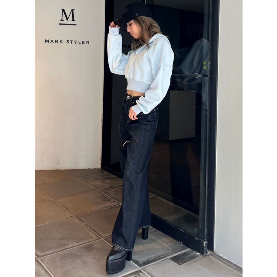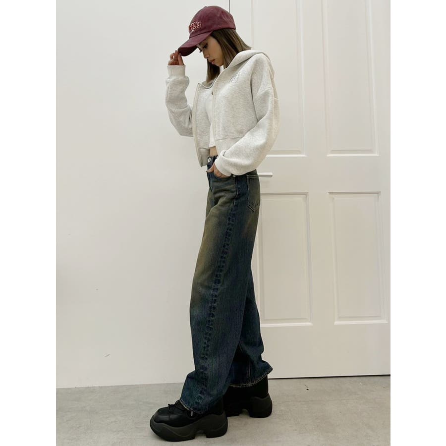 シンプルなショート丈のパーカーはハリ感のある生地を使用していて高級感のある仕上がりになっています。
