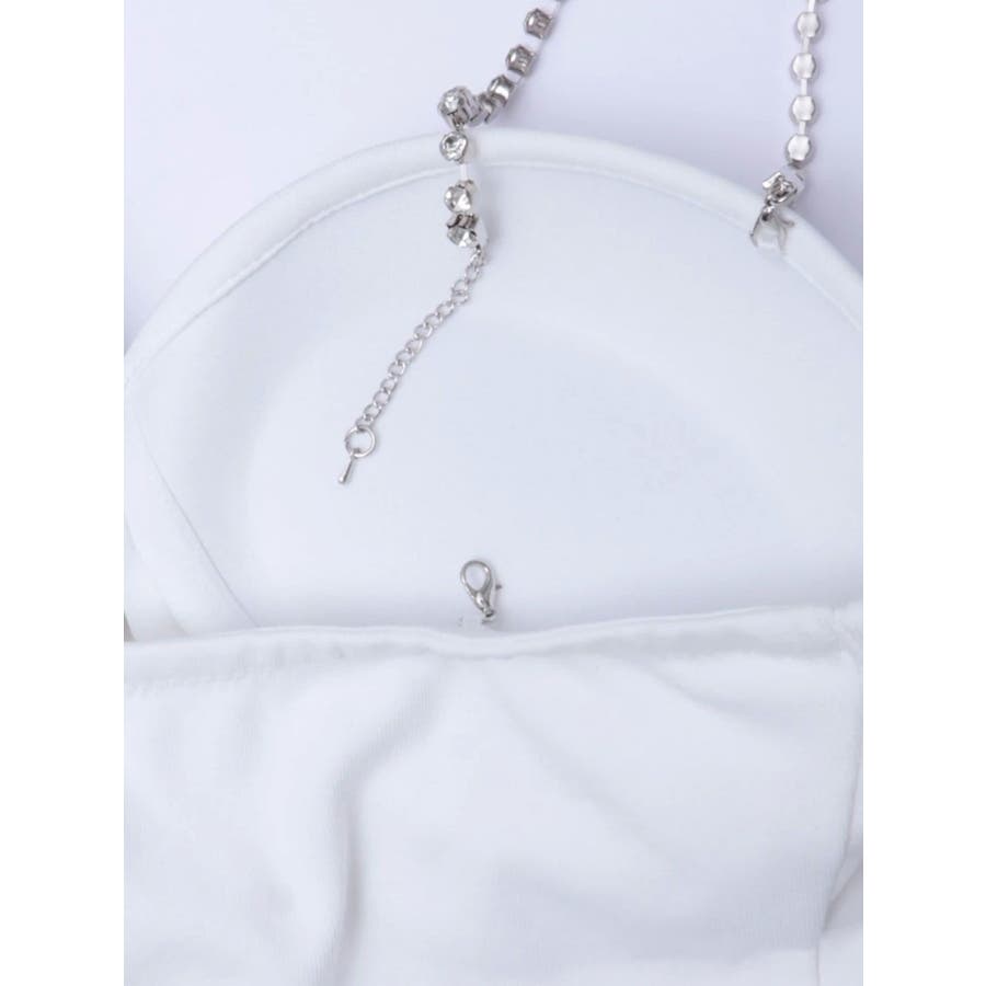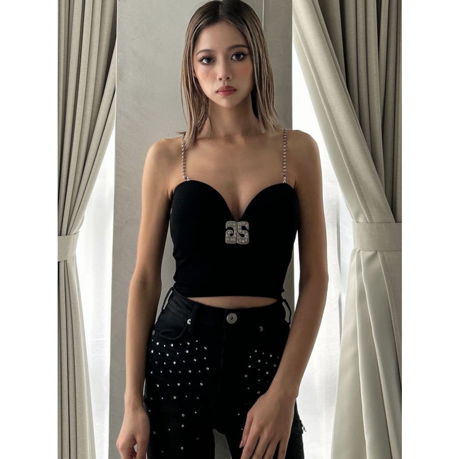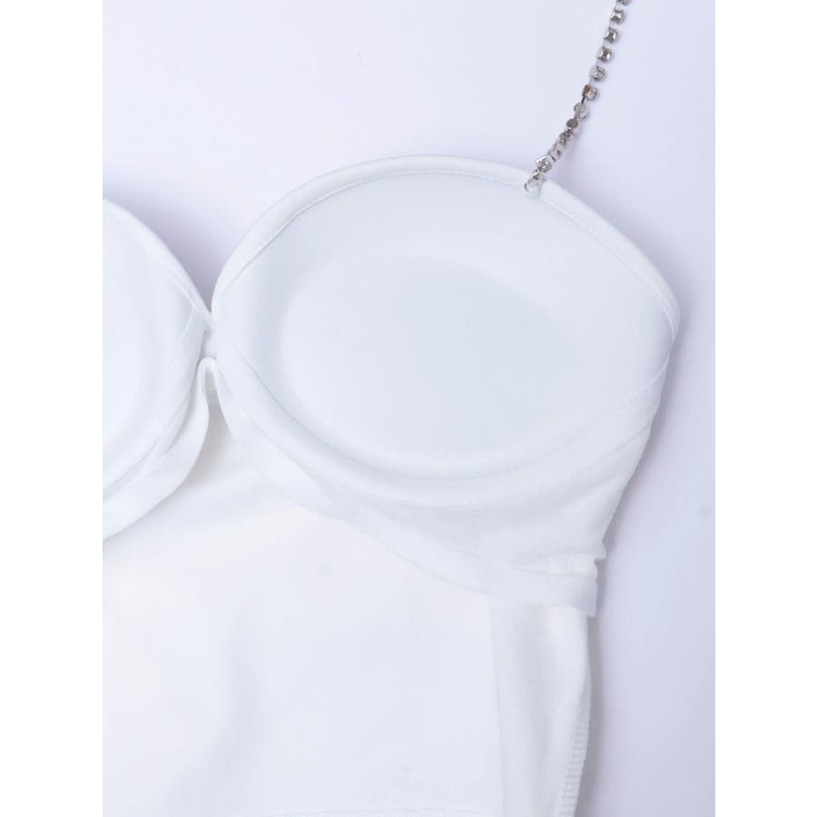 肩のストーンストラップは上品でセクシーな印象を与え、シンプルながらもラグジュアリーなアクセントで、女性らしさを最大限に演出できるアイテムです。