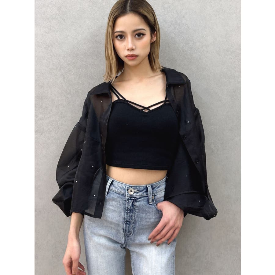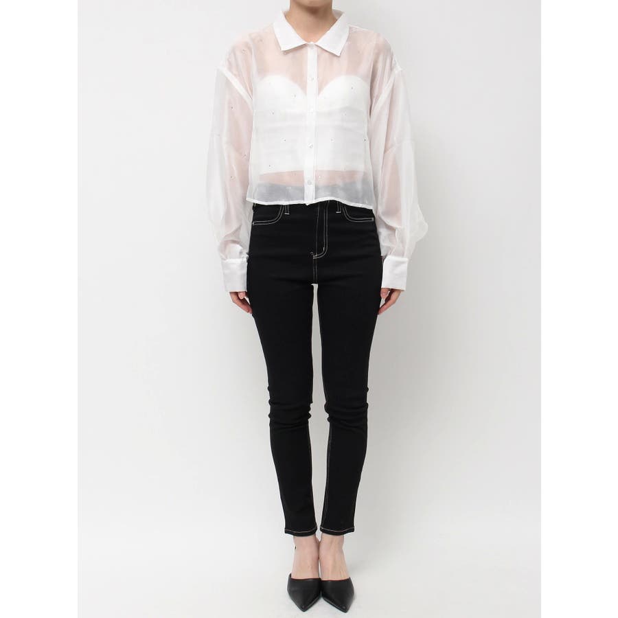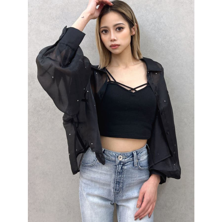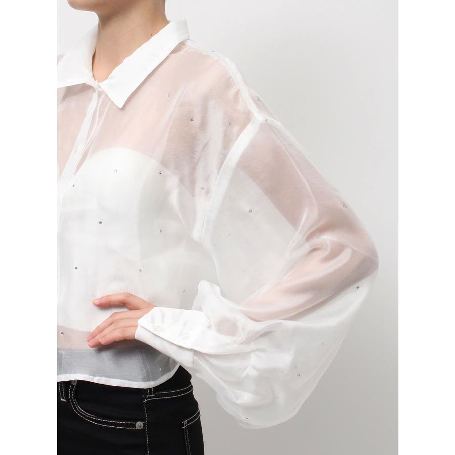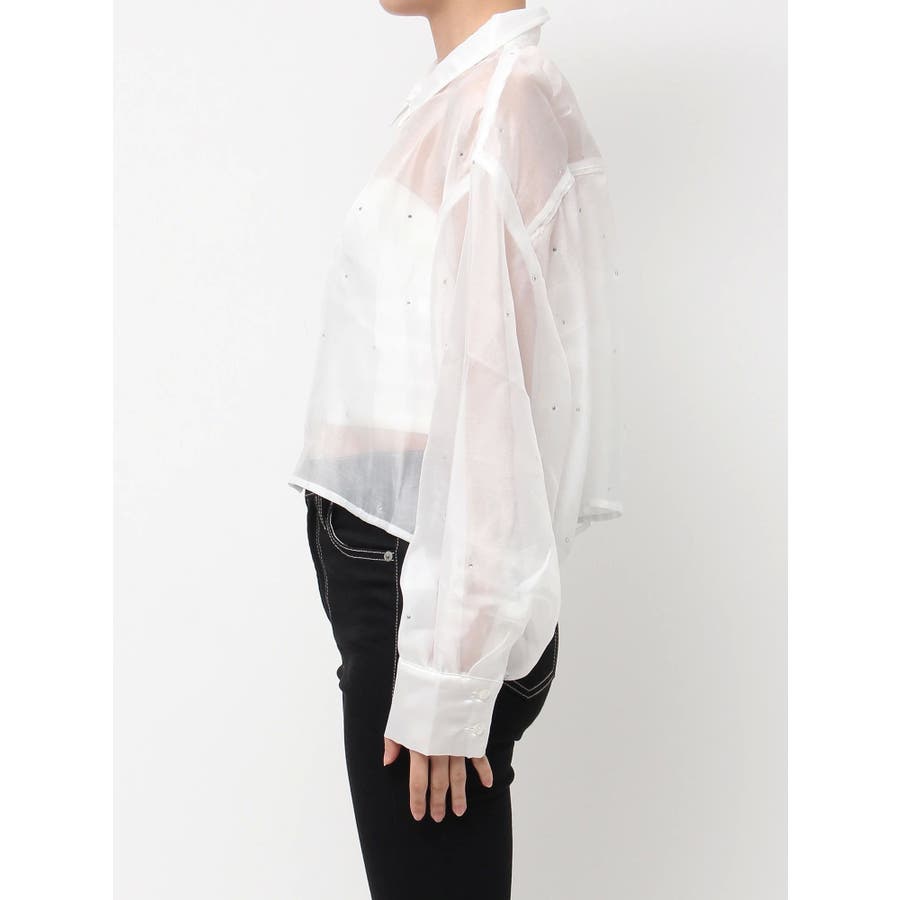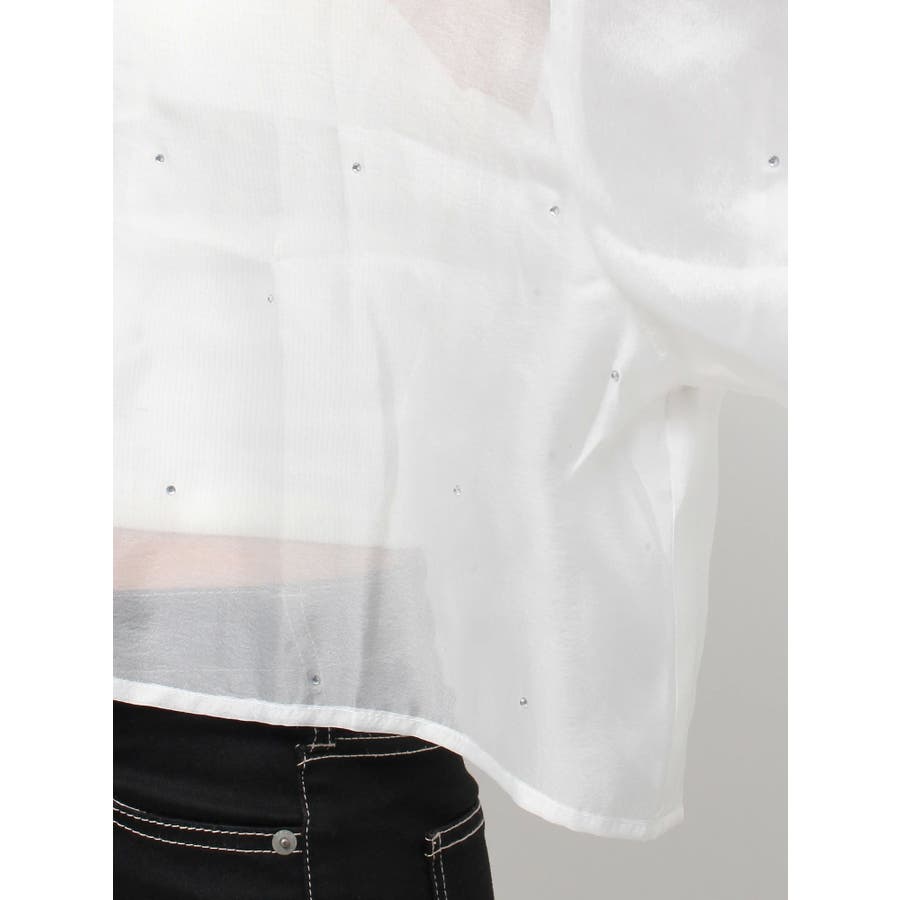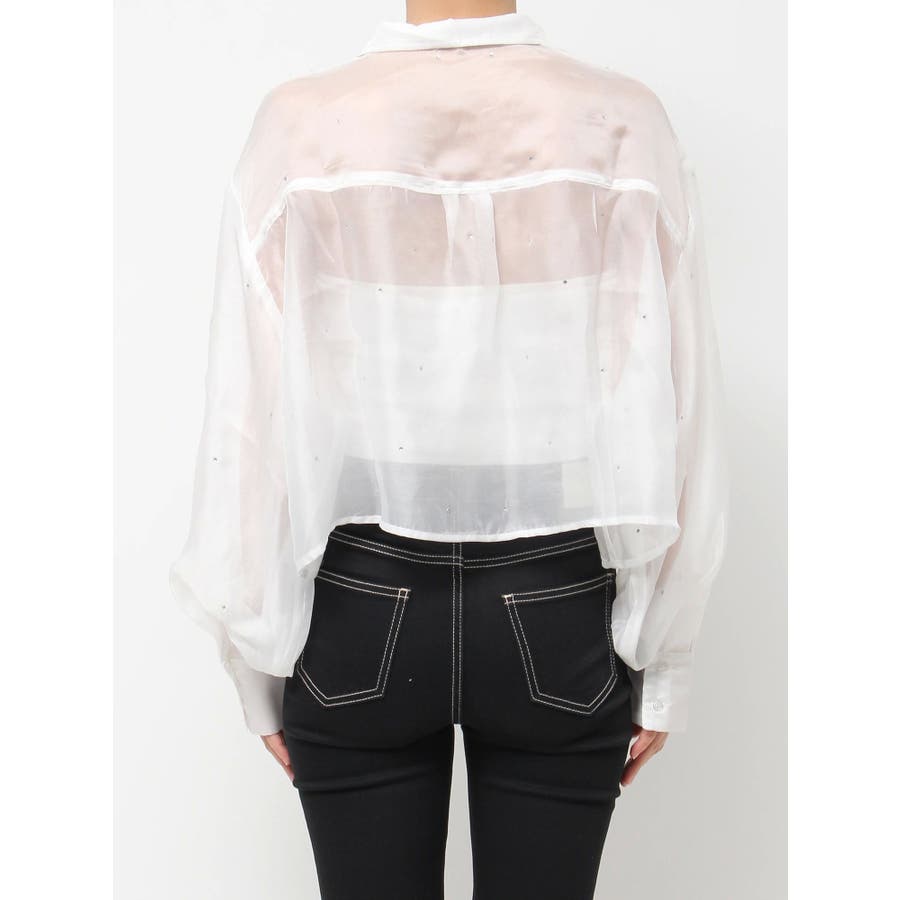 ■デザイン GYDA(ジェイダ) シアーラインストーンショートシャツ 前面にラインストーンを施したゆったりとしたシャツ。 光沢感のあるシアー素材とショート丈でコーデに抜け感をプラスします。 ■スタイリング 施されたラインストーンが目を引き、シンプルながらも羽織るだけでコーデの主役に。 どんなスタイリングにもマッチする、持っておくと重宝する1枚です。 ショート丈なのでハイウエストの細身ボトムがバランスが良く相性抜群◎ ■商品のお気に入り登録 再入荷通知やラスト1点、お得なプライスダウンの情報も受け取ることができます。 ぜひご登録ください◎ ・・・・・・・・・・・・・・・・・・・・・・ ※着用画像はフラッシュの加減で実際の製品と色味等が異なる場合がございますので、生地のズームアップ画像をご確認ください。 ※ご利用の端末画面の設定により実際の商品と色味が異なる場合がございます。 【商品特徴】透け感:あり伸縮性:なし生地の厚さ:普通サイズ感:ゆったり裏地:なしポケット:なし
