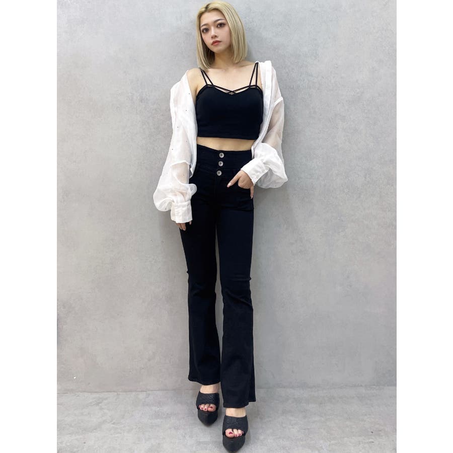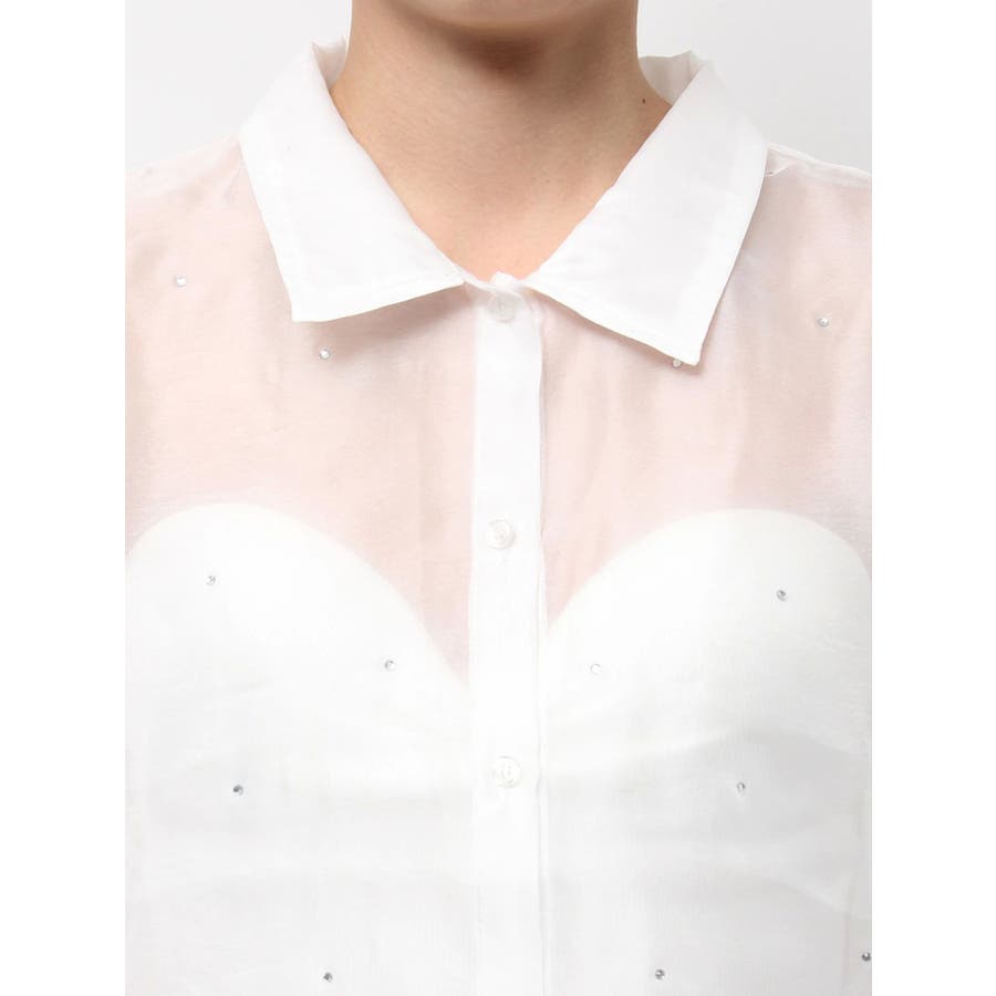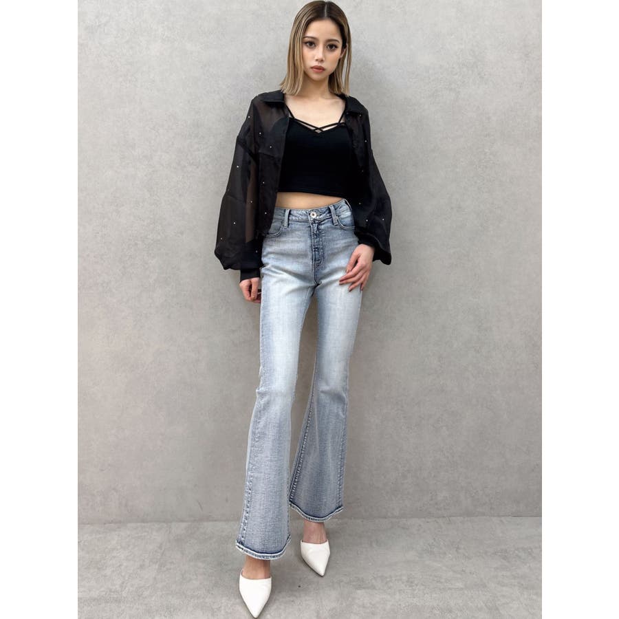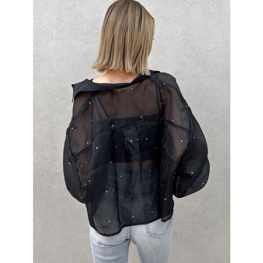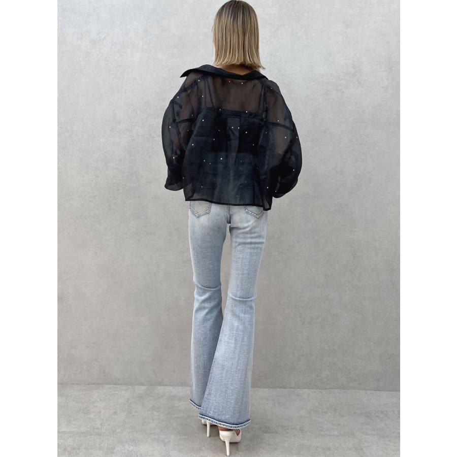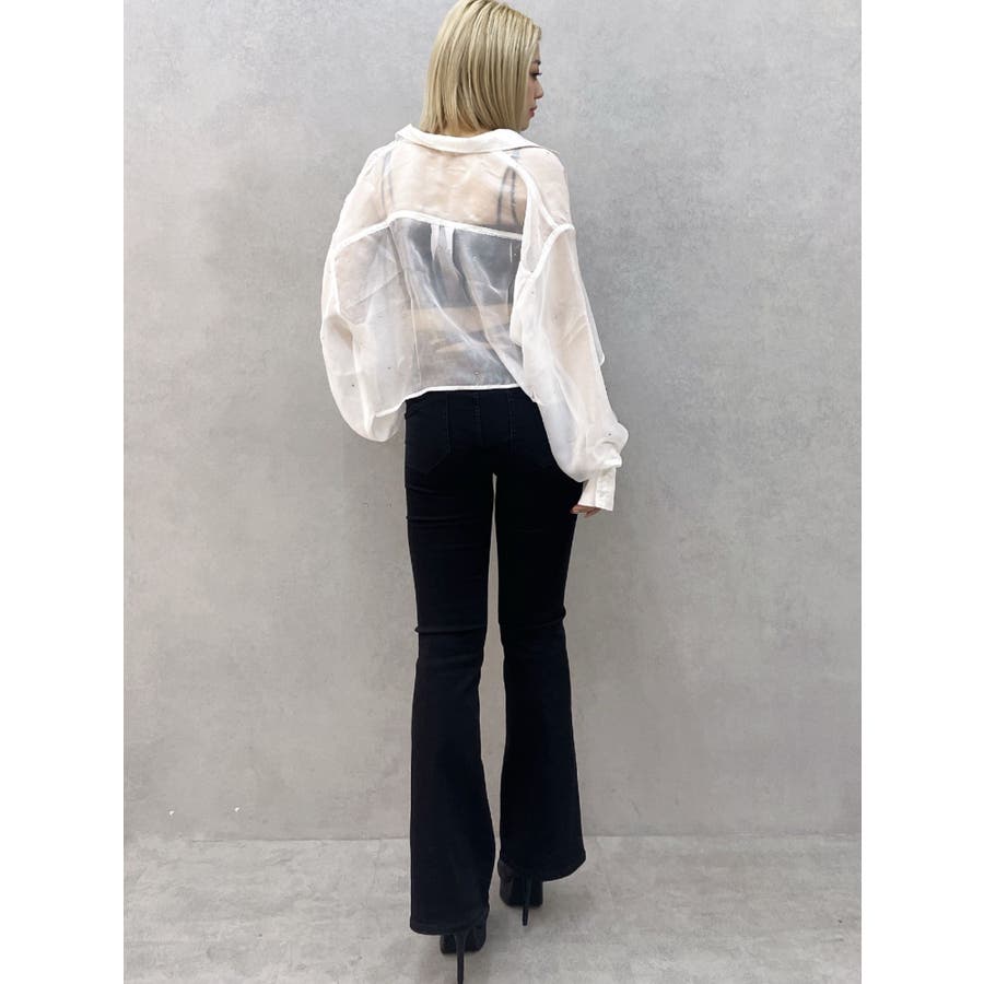 ■デザイン GYDA(ジェイダ) シアーラインストーンショートシャツ 前面にラインストーンを施したゆったりとしたシャツ。 光沢感のあるシアー素材とショート丈でコーデに抜け感をプラスします。 ■スタイリング 施されたラインストーンが目を引き、シンプルながらも羽織るだけでコーデの主役に。 どんなスタイリングにもマッチする、持っておくと重宝する1枚です。 ショート丈なのでハイウエストの細身ボトムがバランスが良く相性抜群◎ ■商品のお気に入り登録 再入荷通知やラスト1点、お得なプライスダウンの情報も受け取ることができます。 ぜひご登録ください◎ ・・・・・・・・・・・・・・・・・・・・・・ ※着用画像はフラッシュの加減で実際の製品と色味等が異なる場合がございますので、生地のズームアップ画像をご確認ください。 ※ご利用の端末画面の設定により実際の商品と色味が異なる場合がございます。 【商品特徴】透け感:あり伸縮性:なし生地の厚さ:普通サイズ感:ゆったり裏地:なしポケット:なし