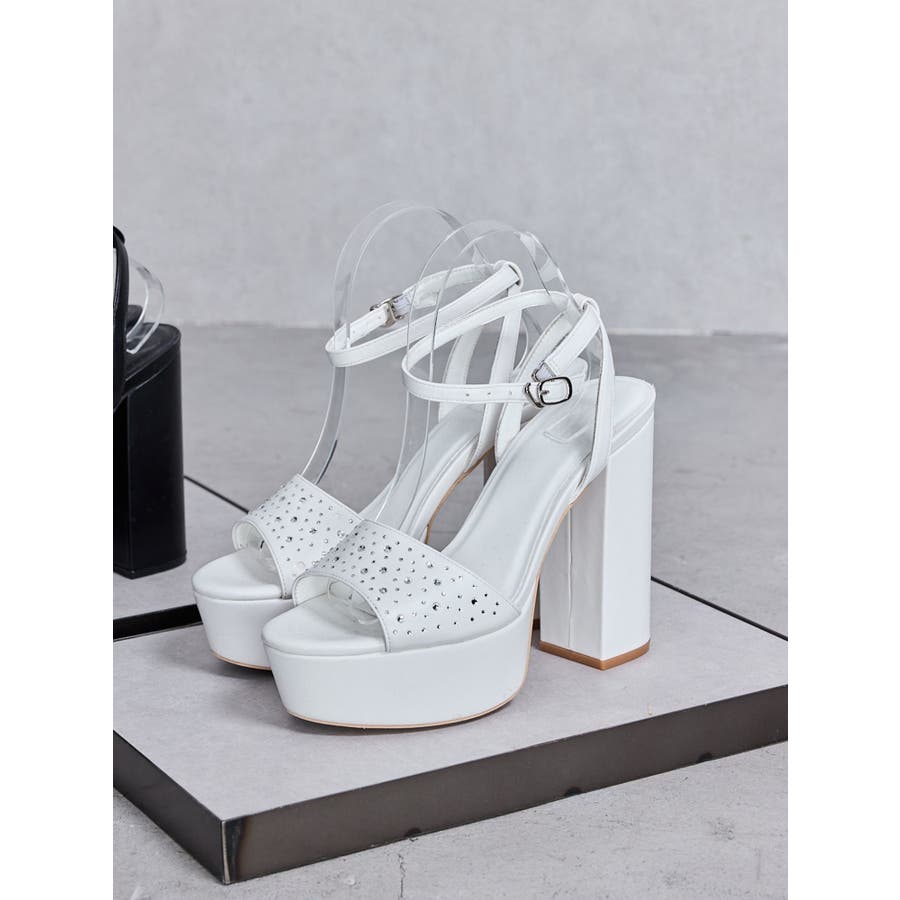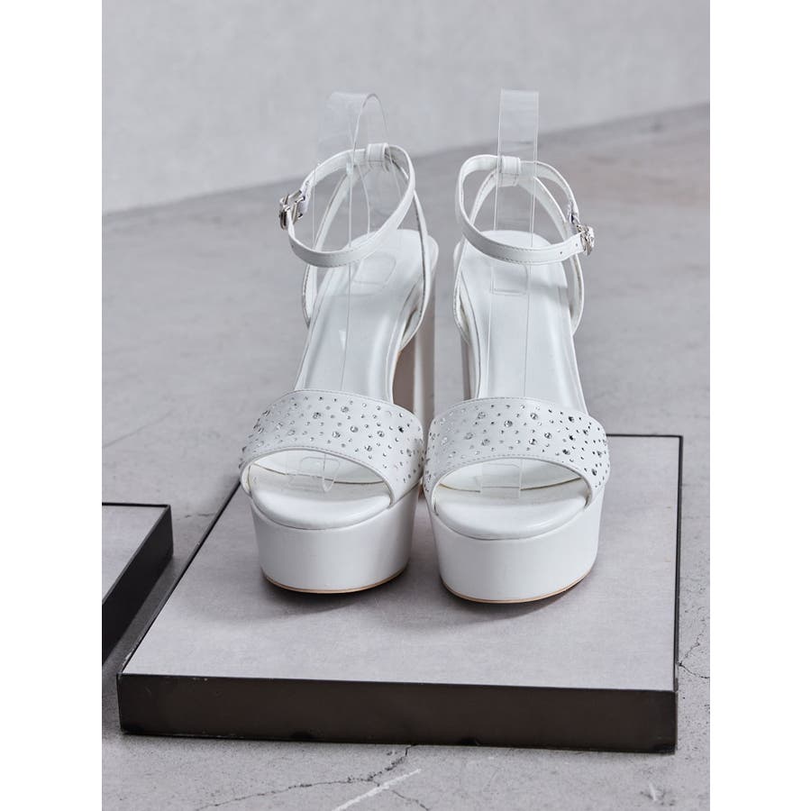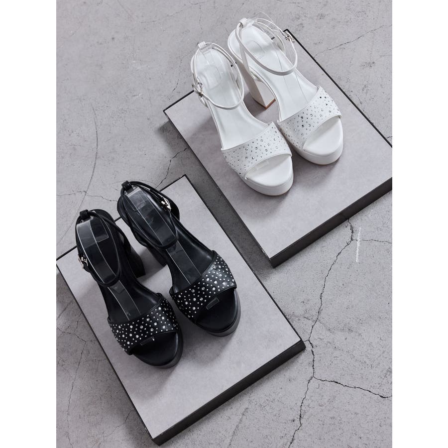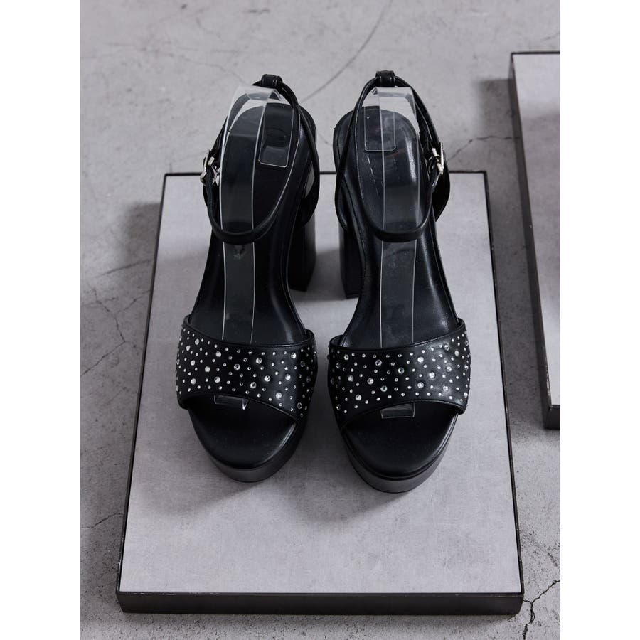 トレンドのラインストーンをGYDA(ジェイダ)らしいチャンキーヒールのサンダルに落とし込みました。