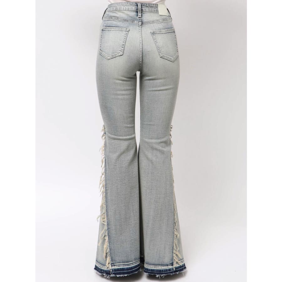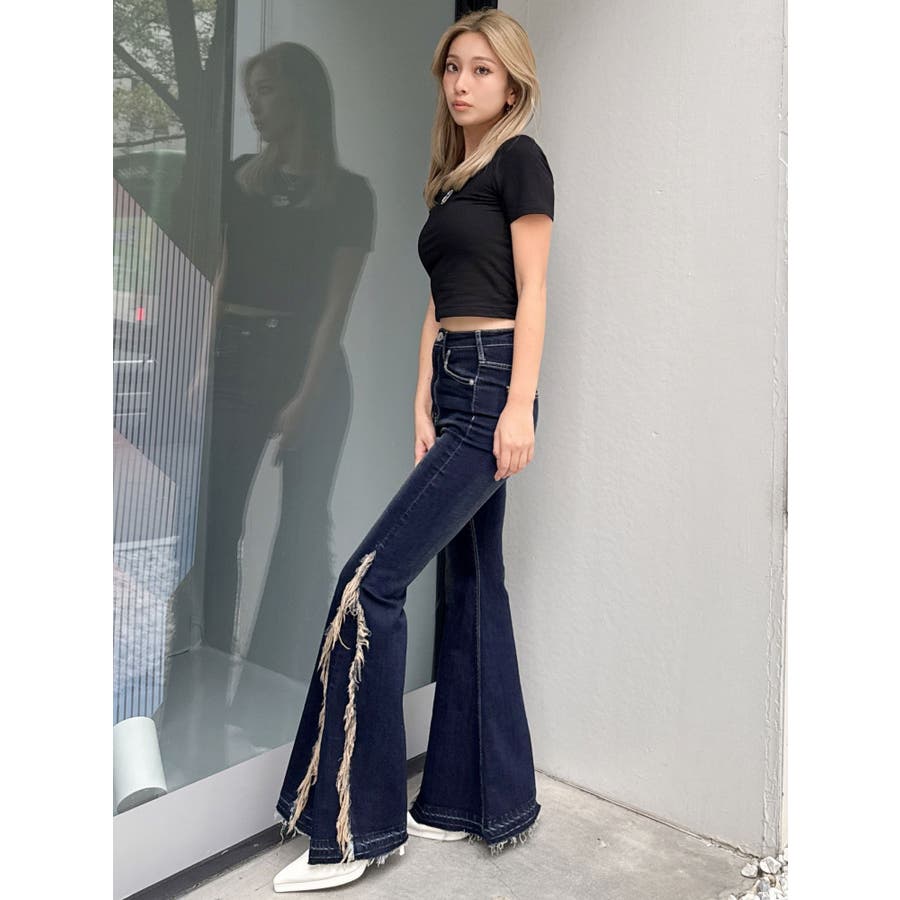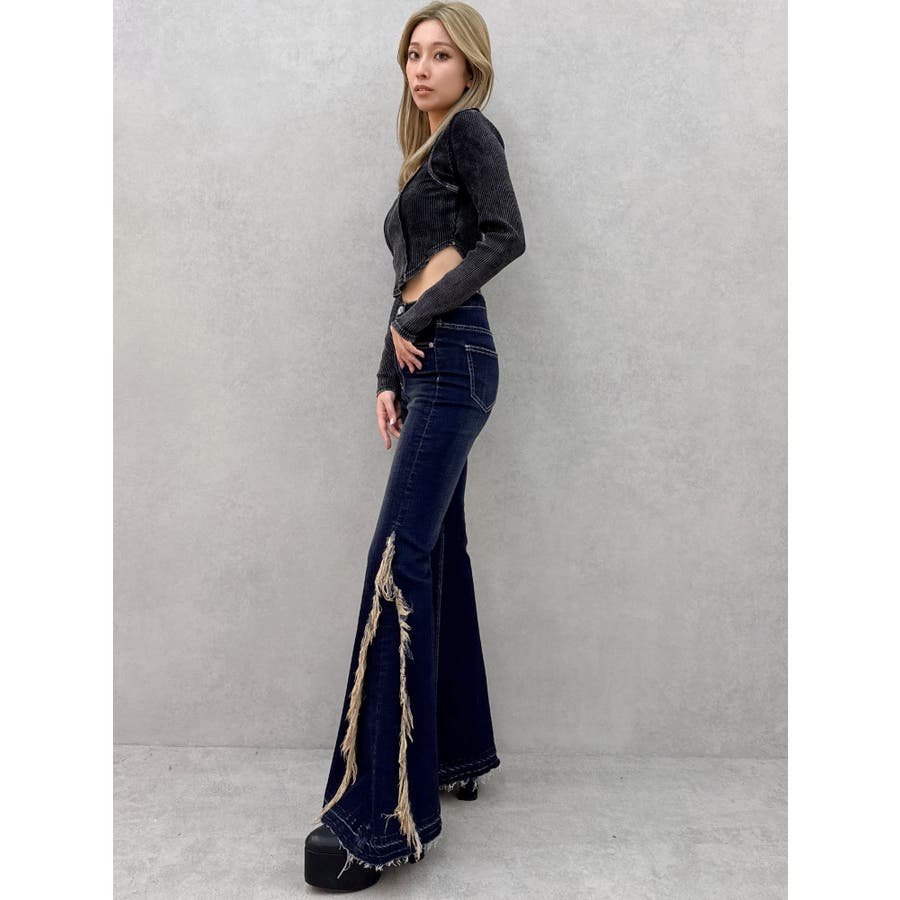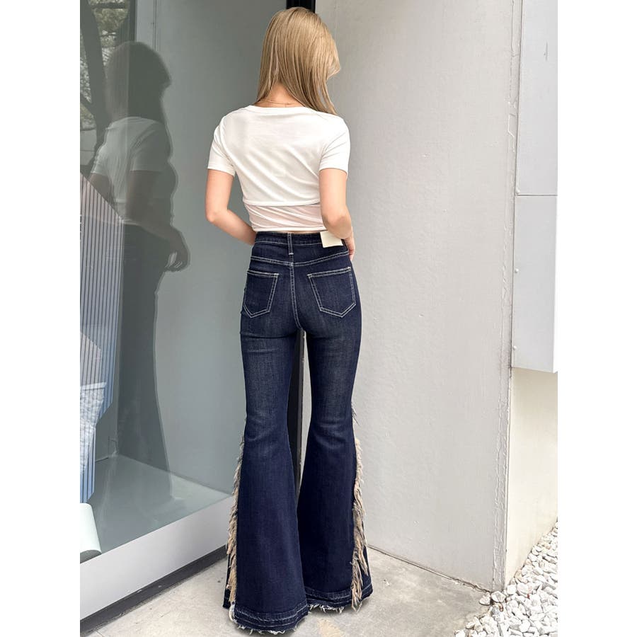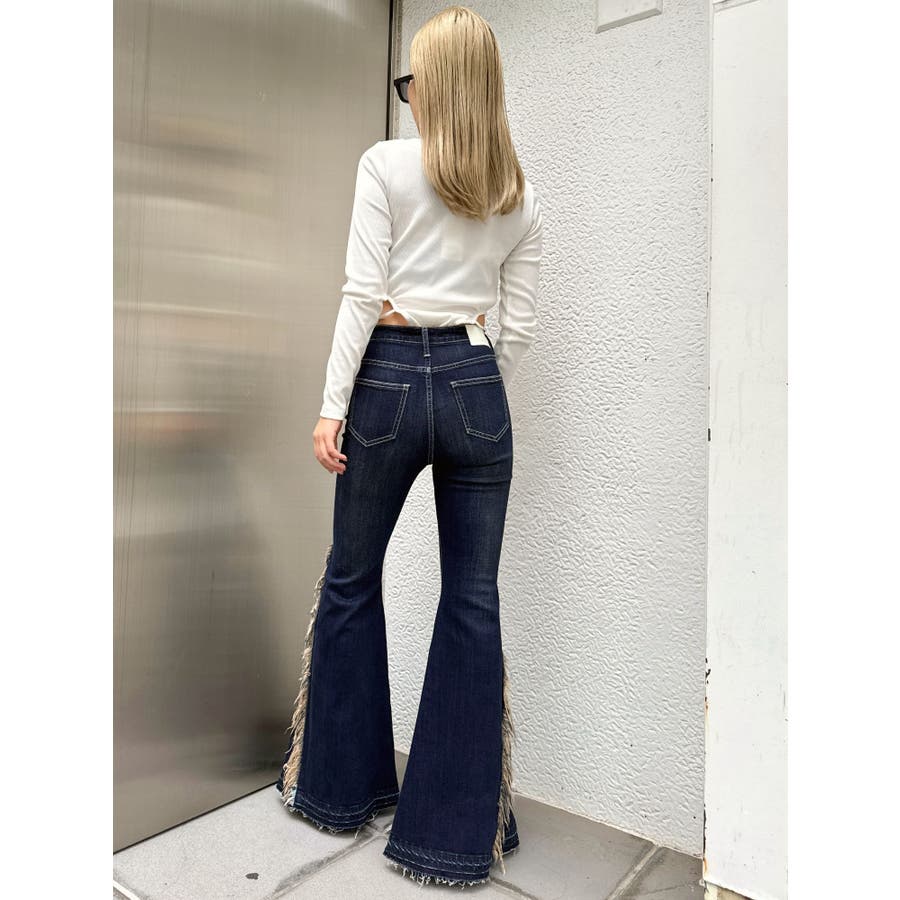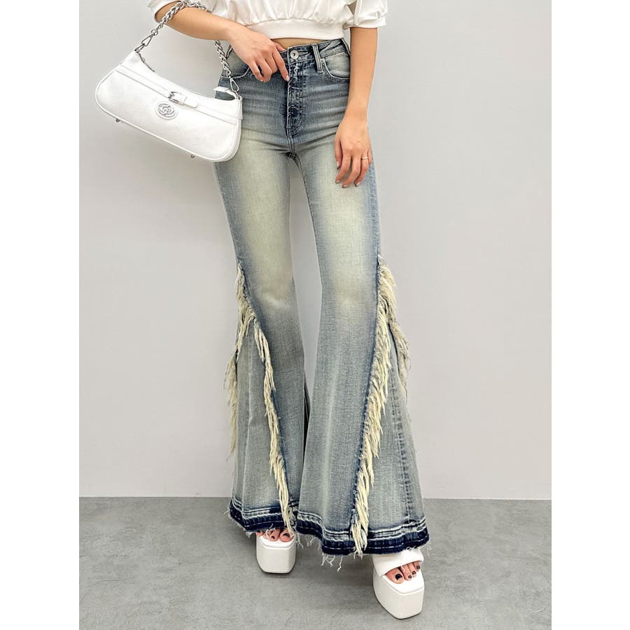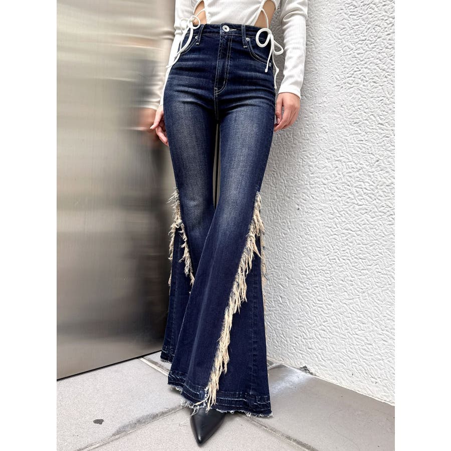 ハイウエストSIDEフリンジフレアデニムパンツ