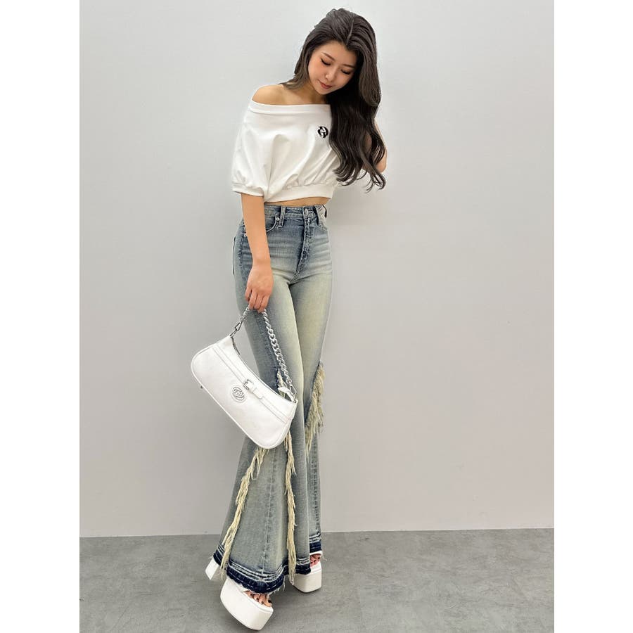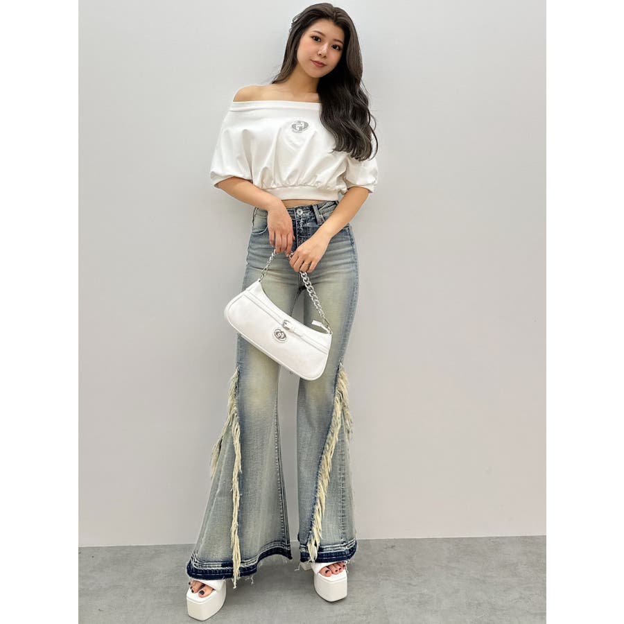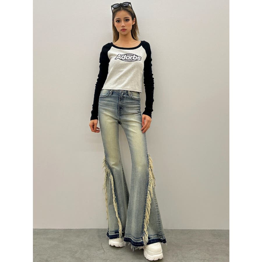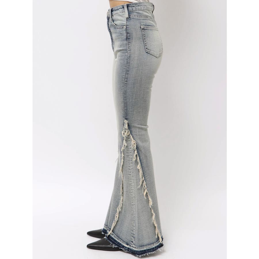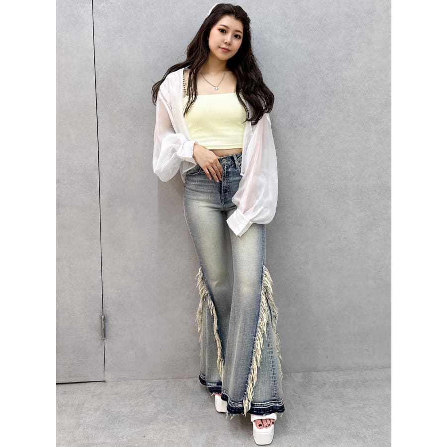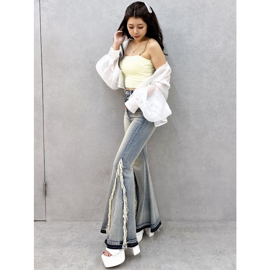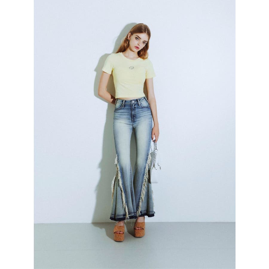 ハイウエストSIDEフリンジフレアデニムパンツ