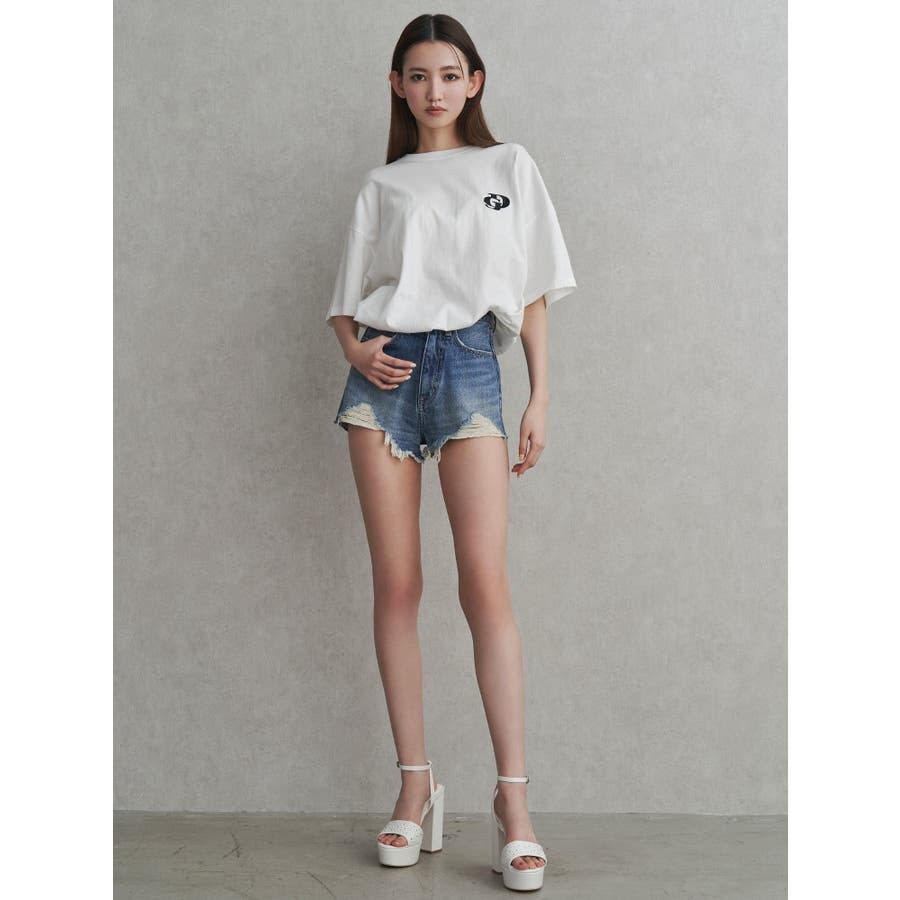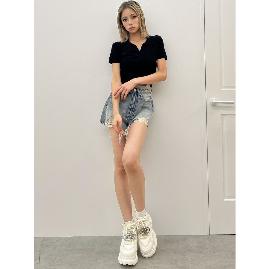 ハイウエストJUBEYO bijouデニムショートパンツ