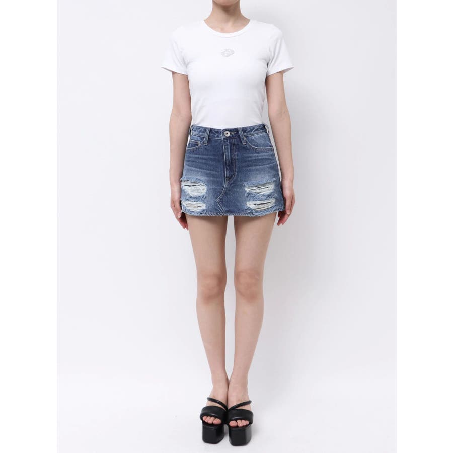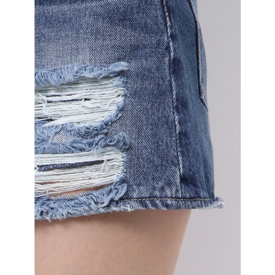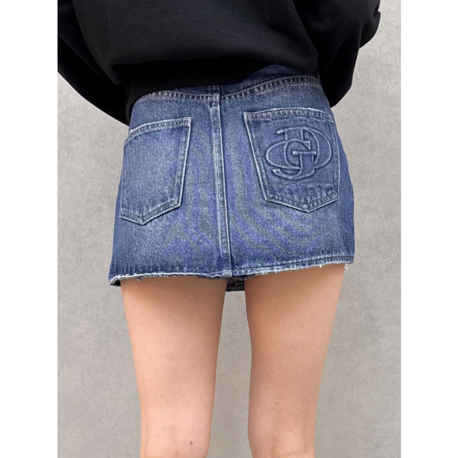 ハイウエストGD embossダメージスカートライクデニムショートパンツ