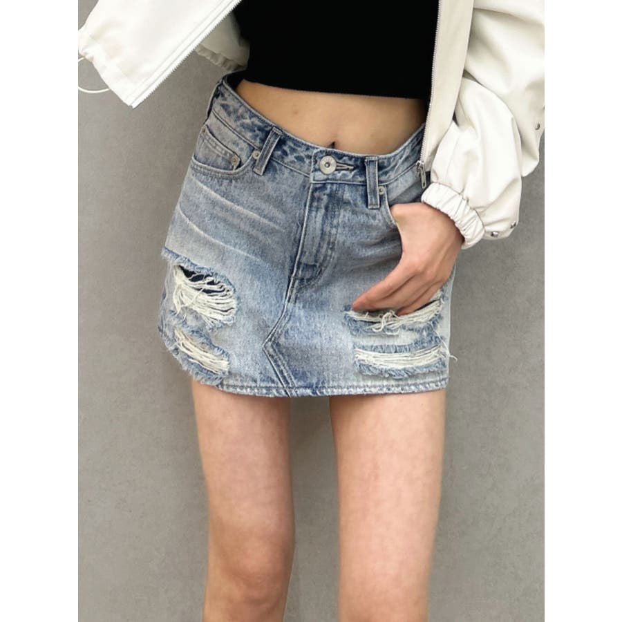 激し目なダメージ加工をプラスし、インナーショーツ付きなので見せてレイヤードっぽく見えるのもデザインポイント。