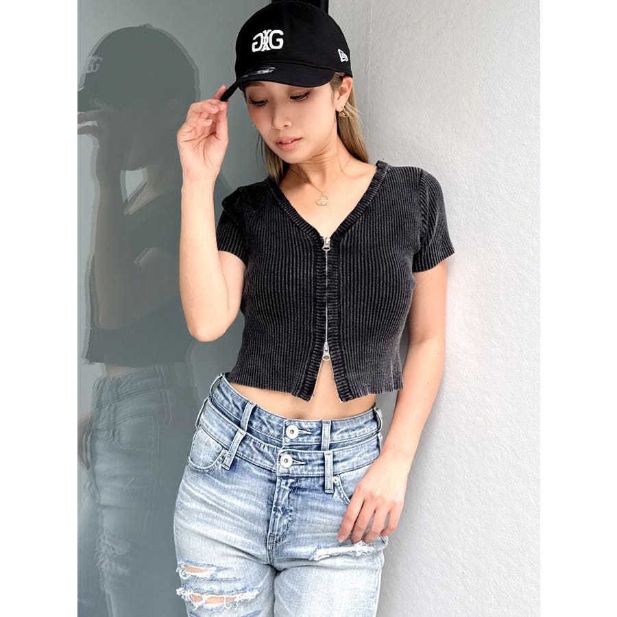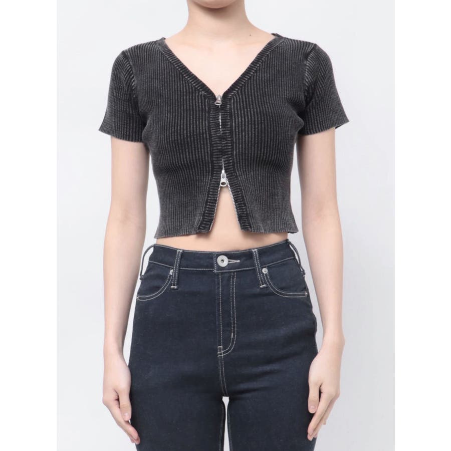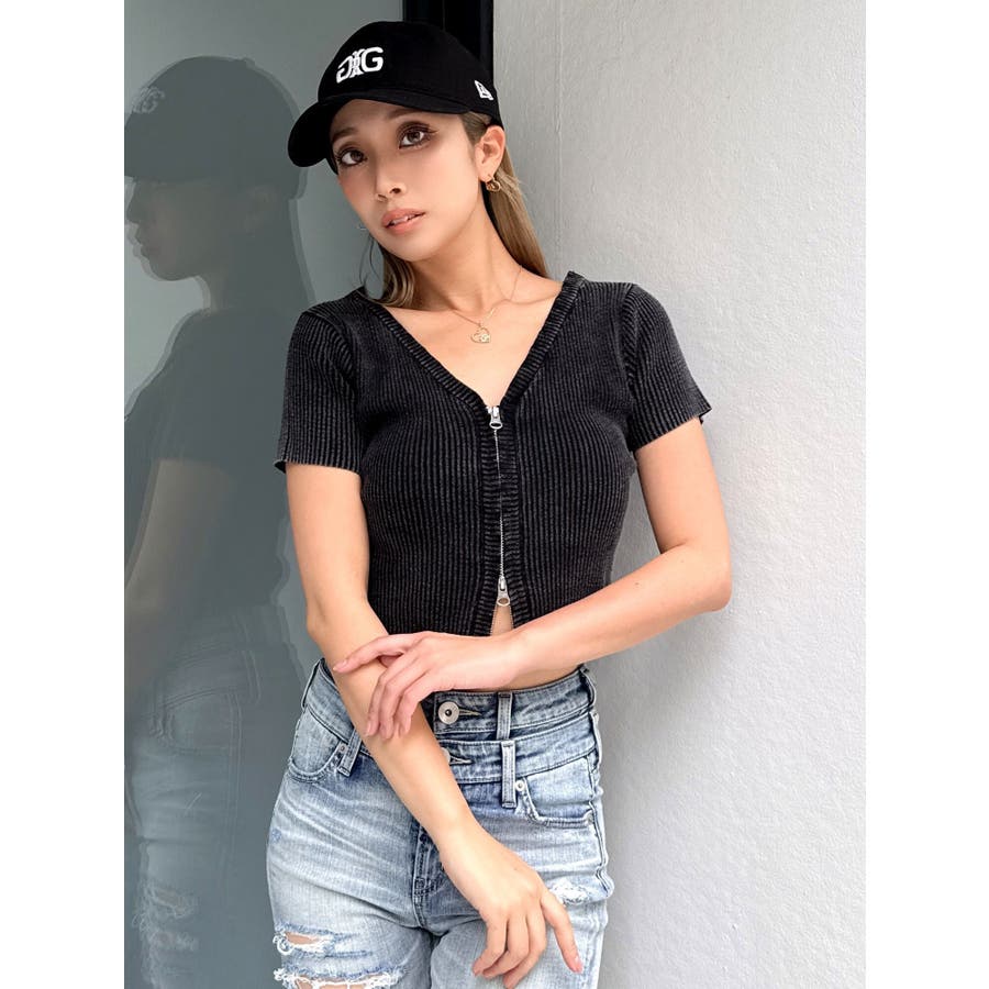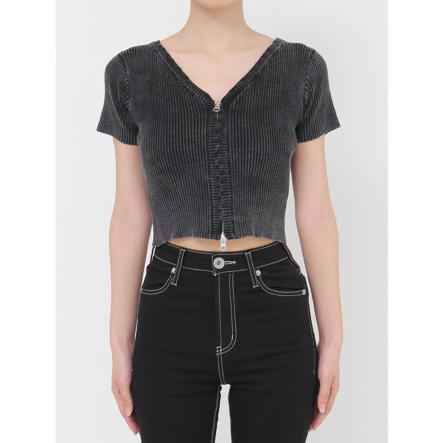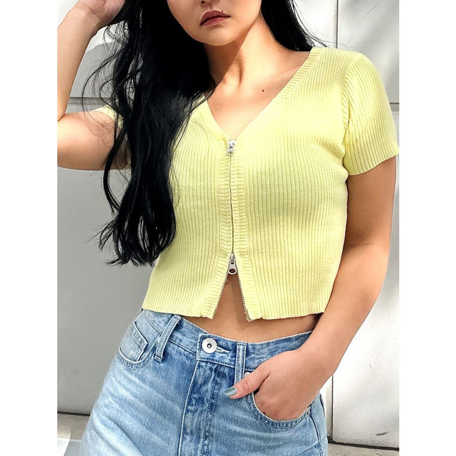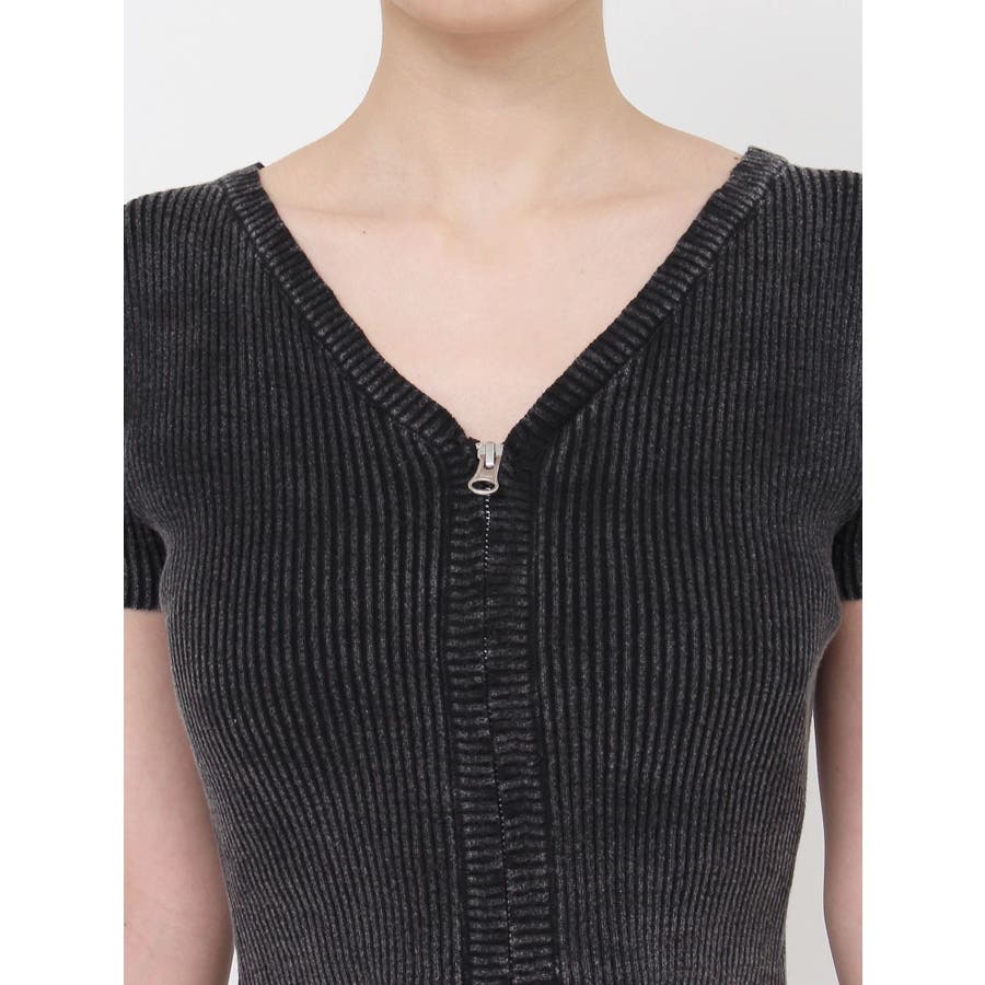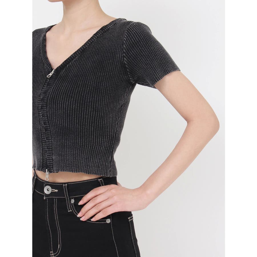 ハーフスリーブブリーチWファスナーリブニットトップス