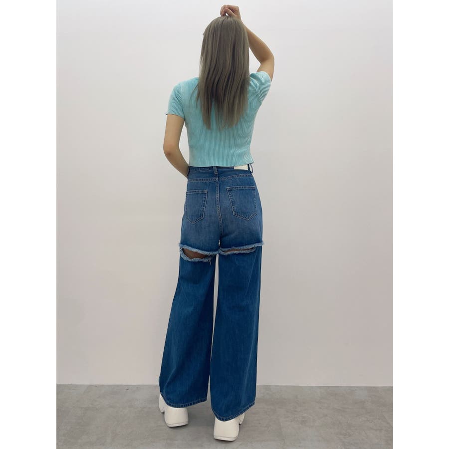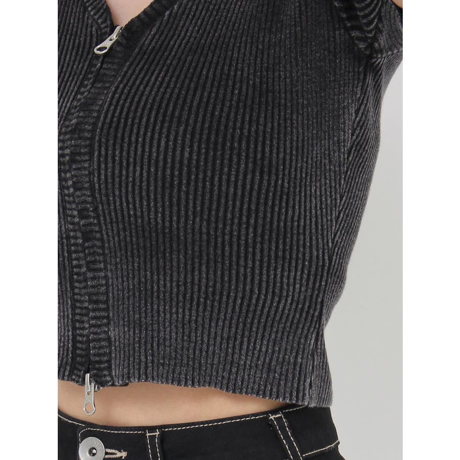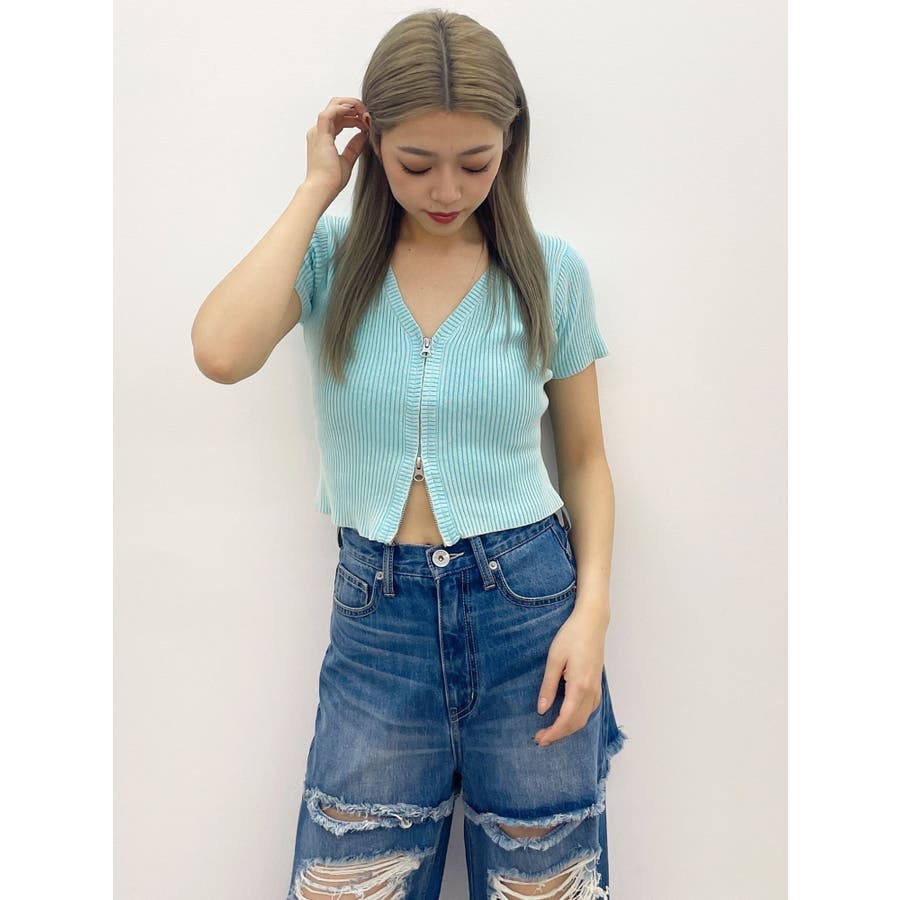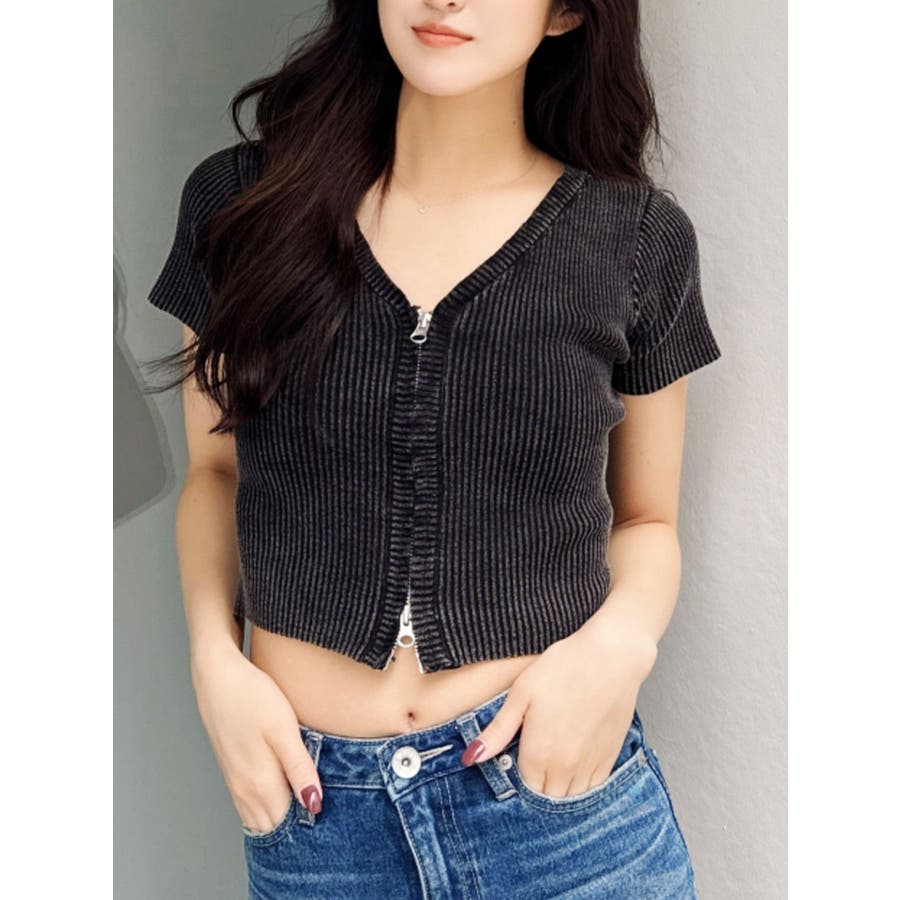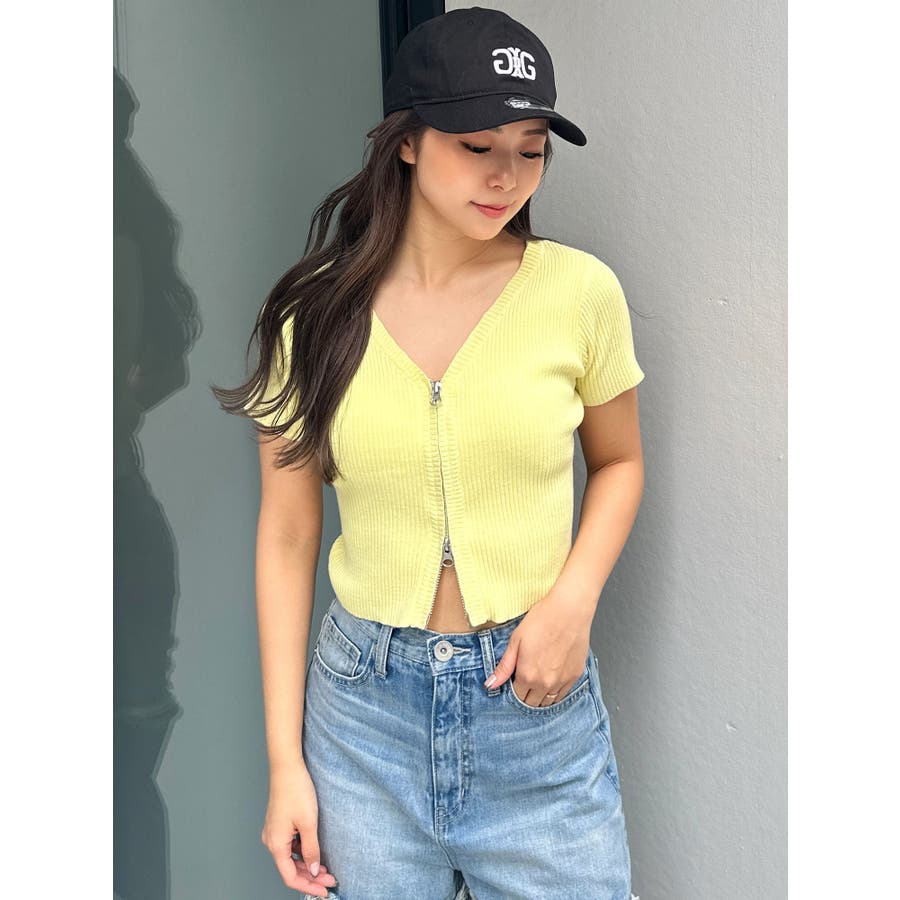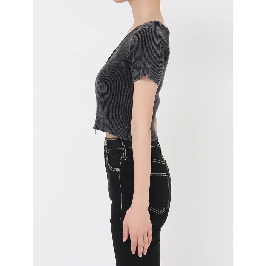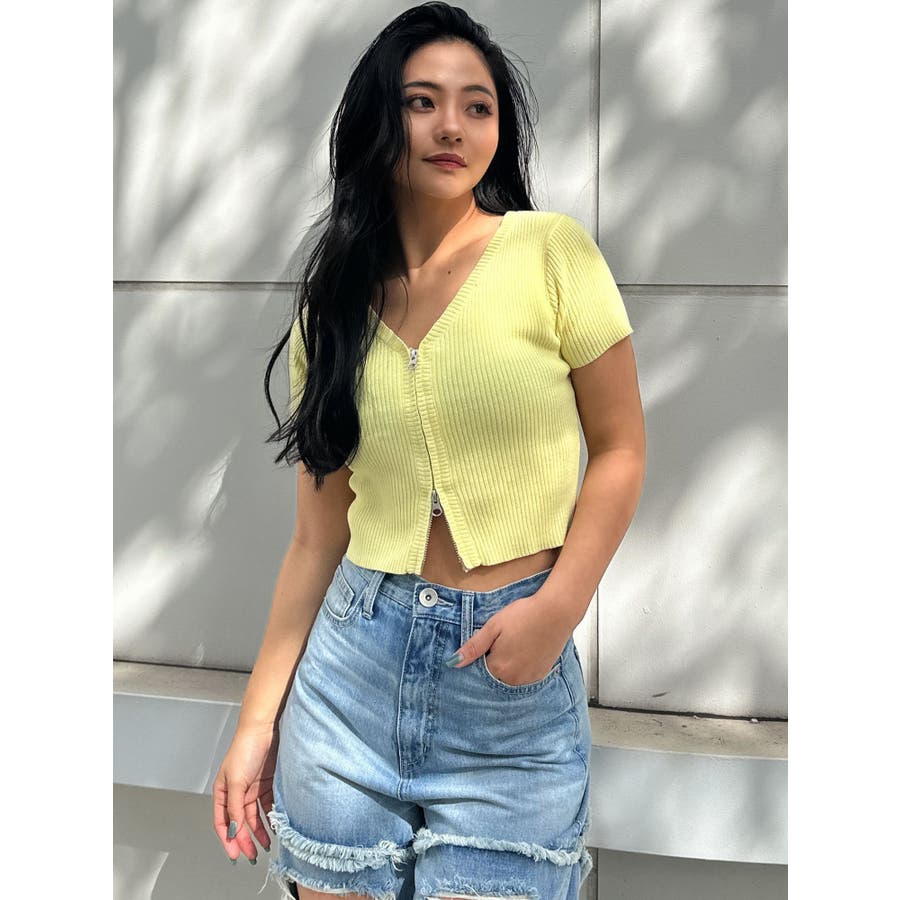 ハーフスリーブブリーチWファスナーリブニットトップス