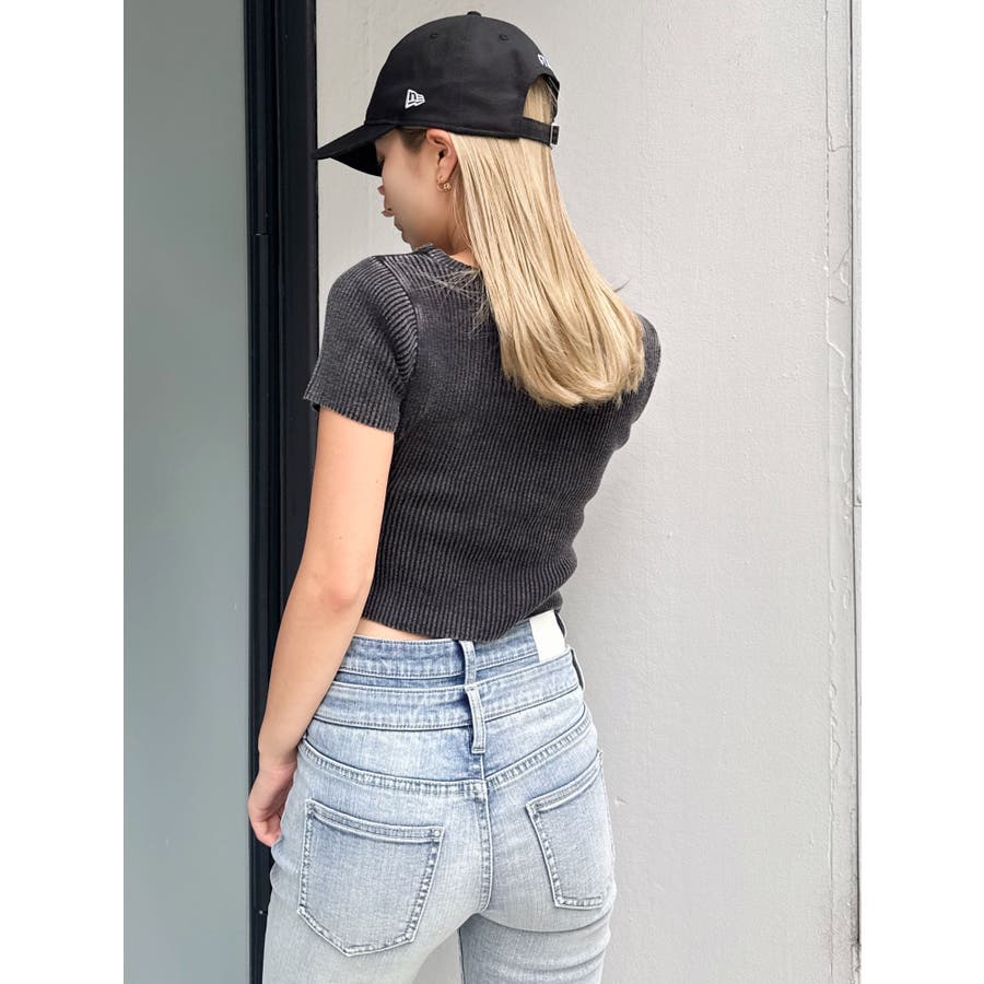 大人気のブリーチ加工で、着心地の良いリブ編みのニットトップスです。