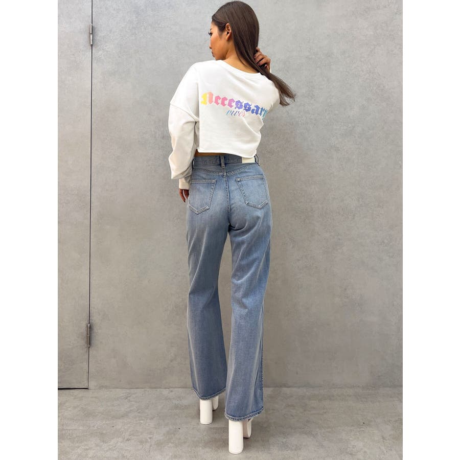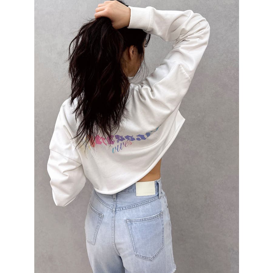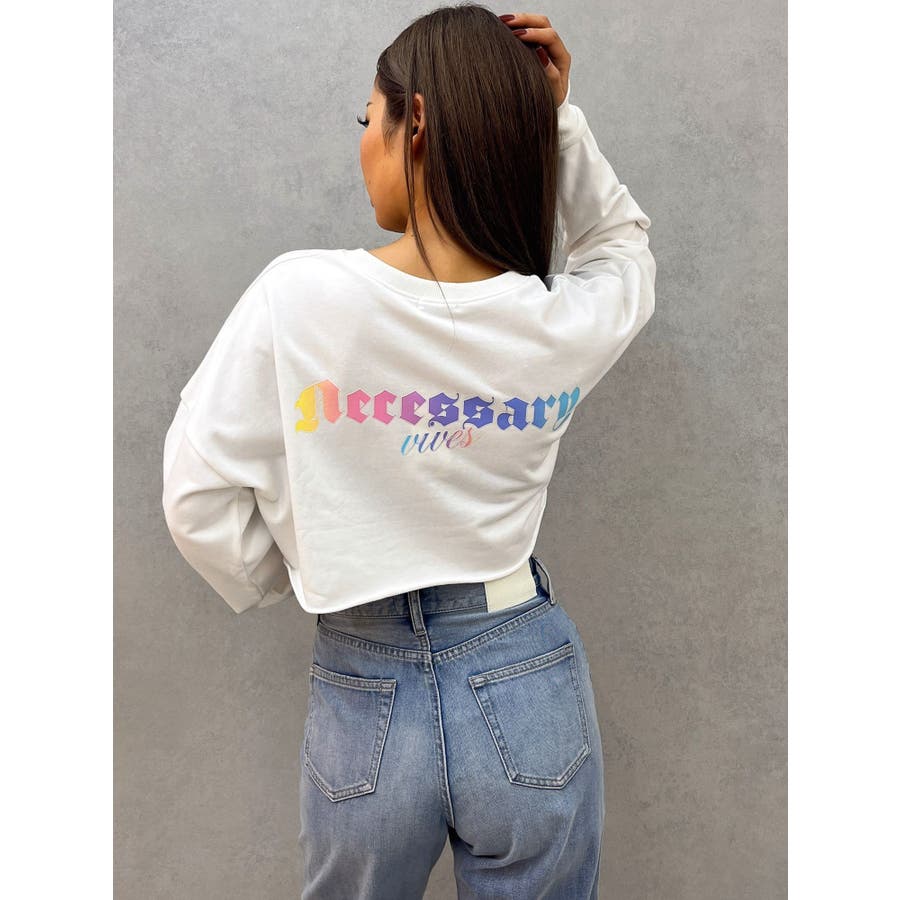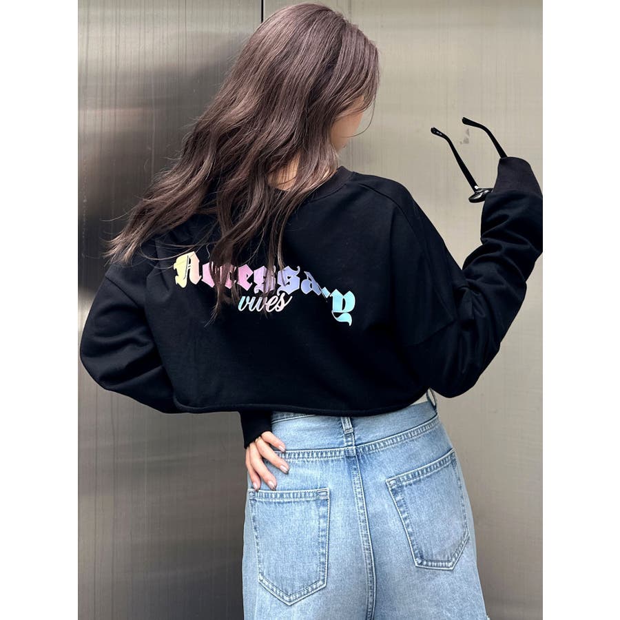 後ろに入ったカラフルなグラデーションロゴがポイントのグラフィックロンT。