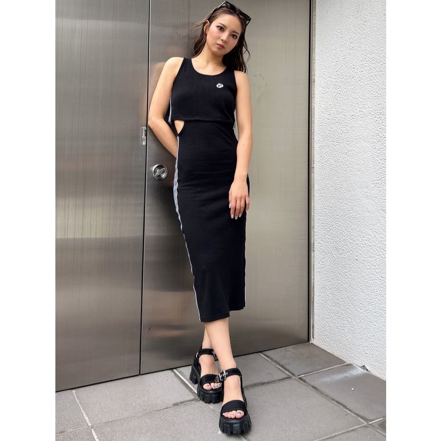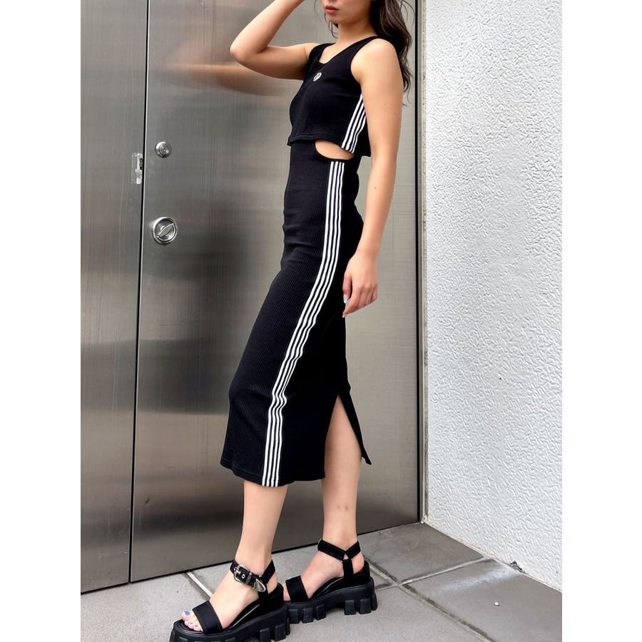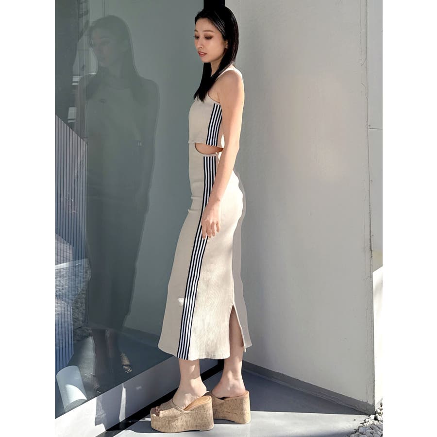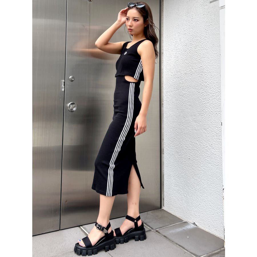 GDウエストOPEN SIDEラインノースリテレコロングワンピース