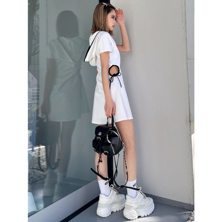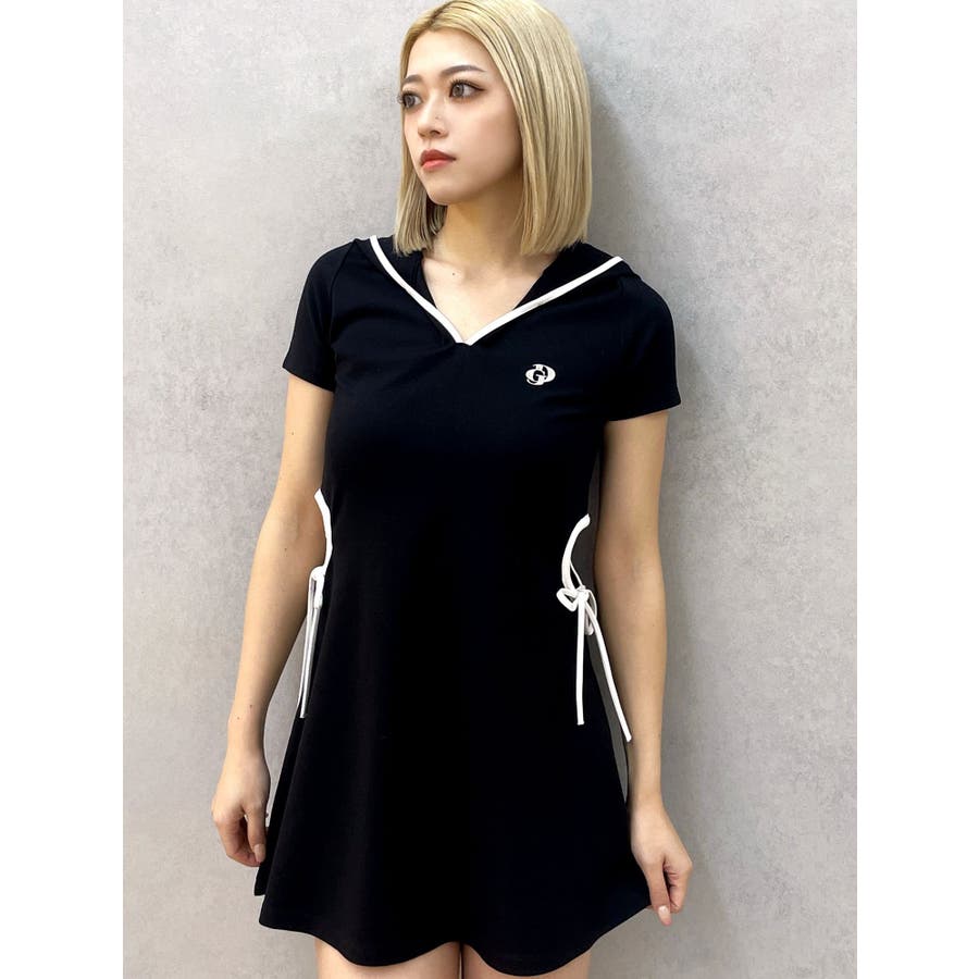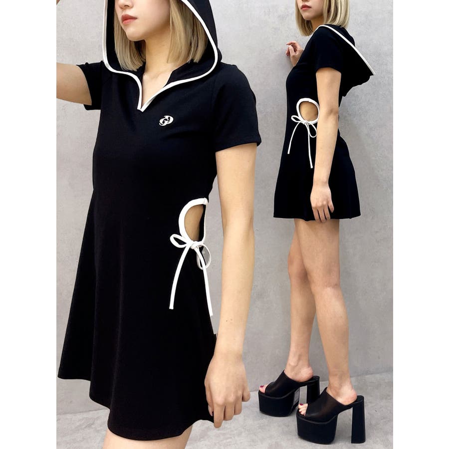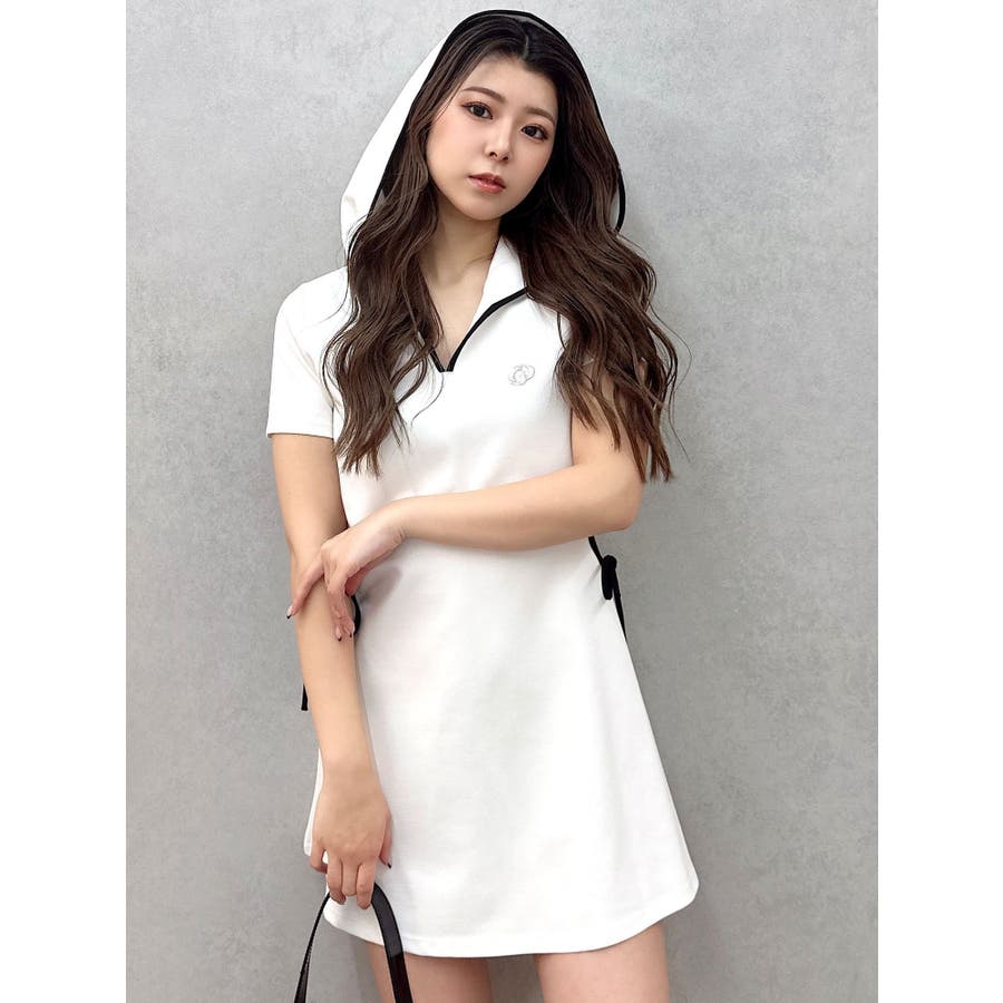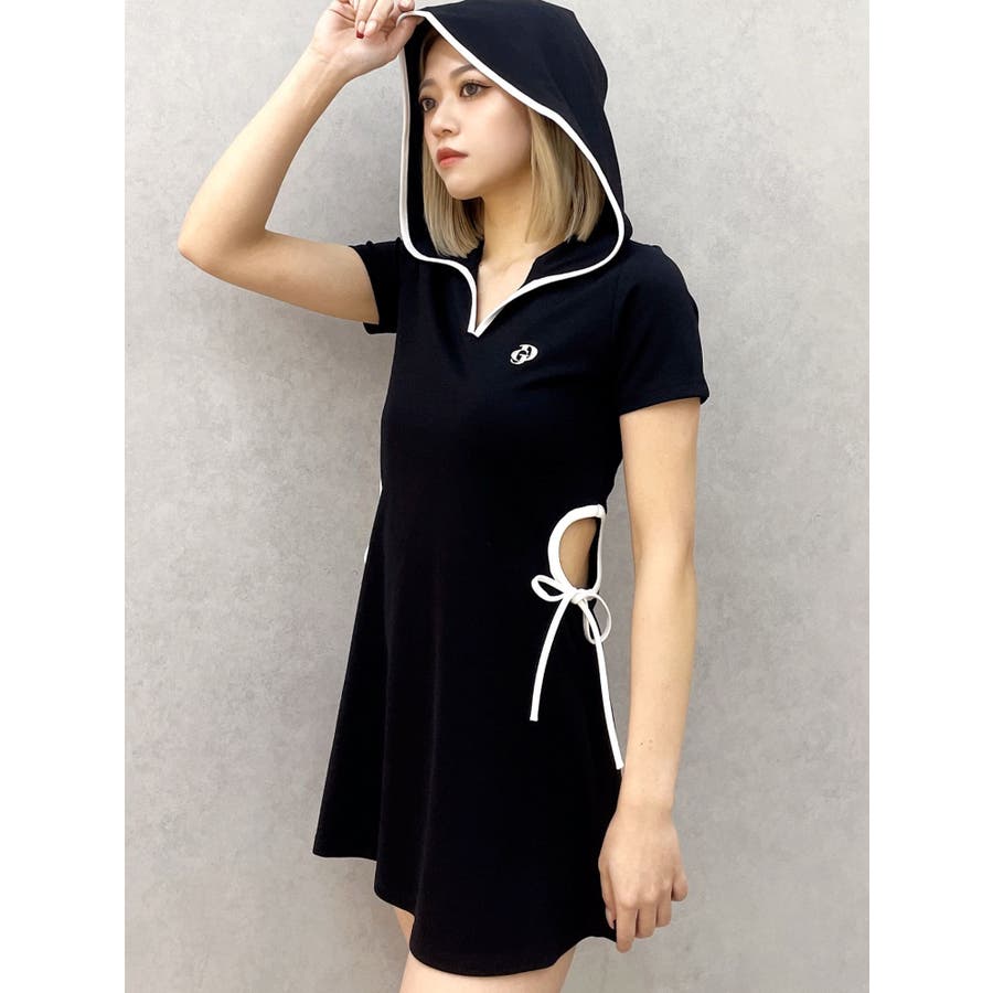 GYDAでは珍しいパーカーワンピースで、あいているウエスト部分の下に紐がついていてリボンに結べる仕様がポイントになっています。