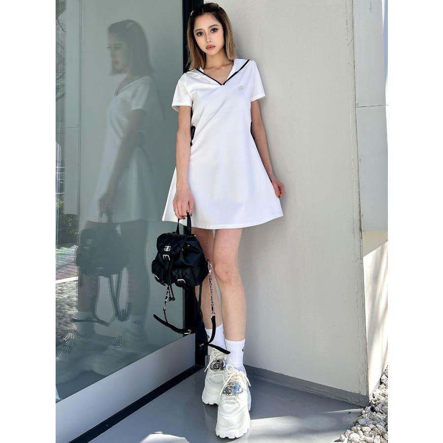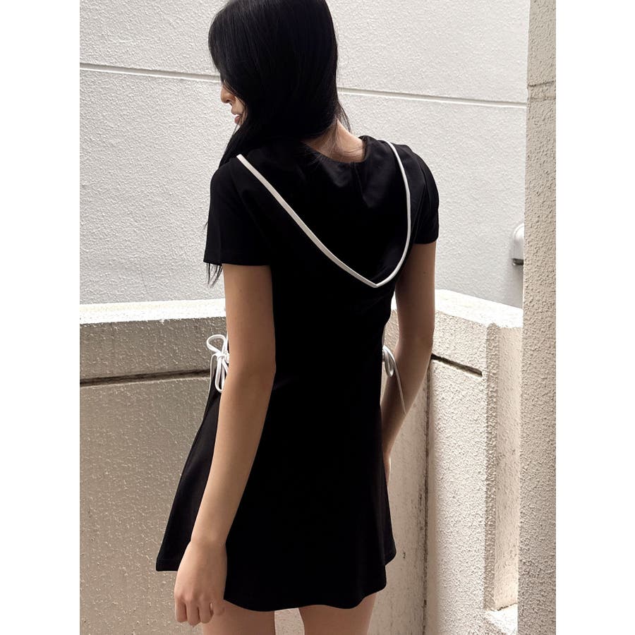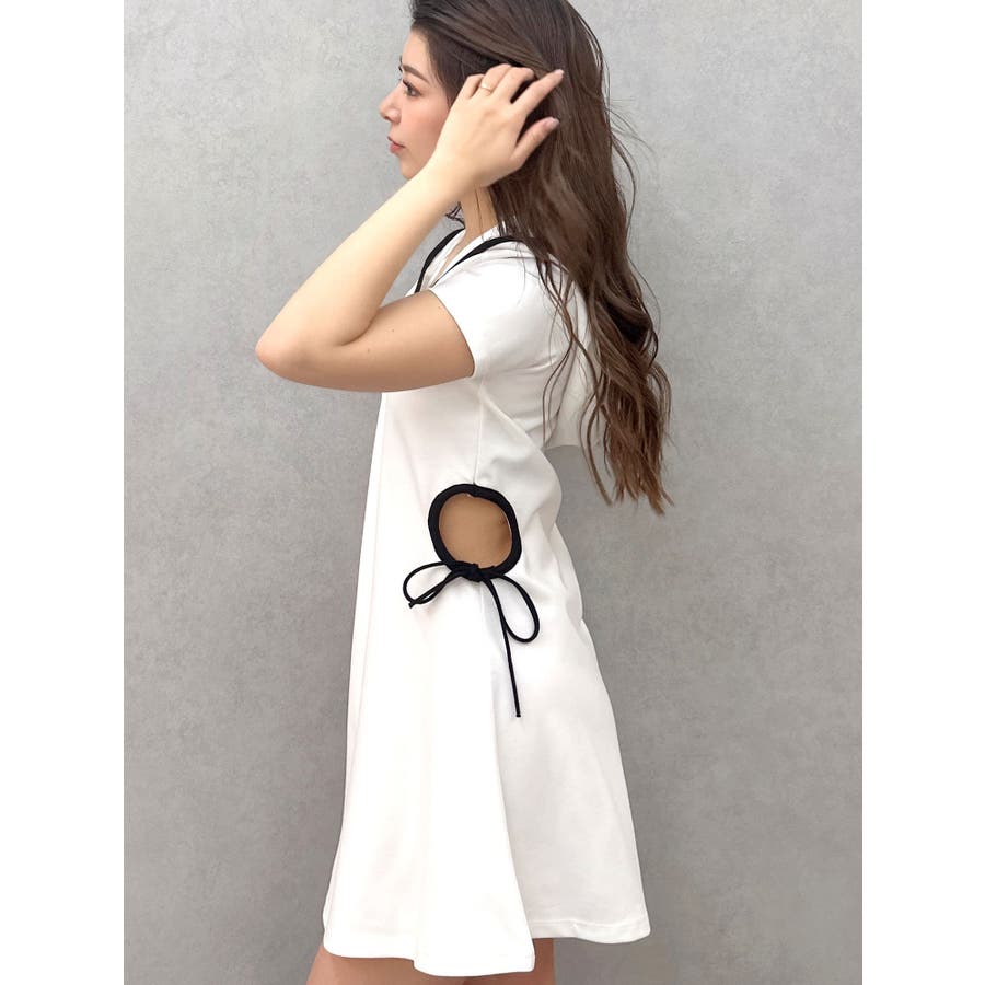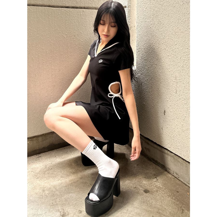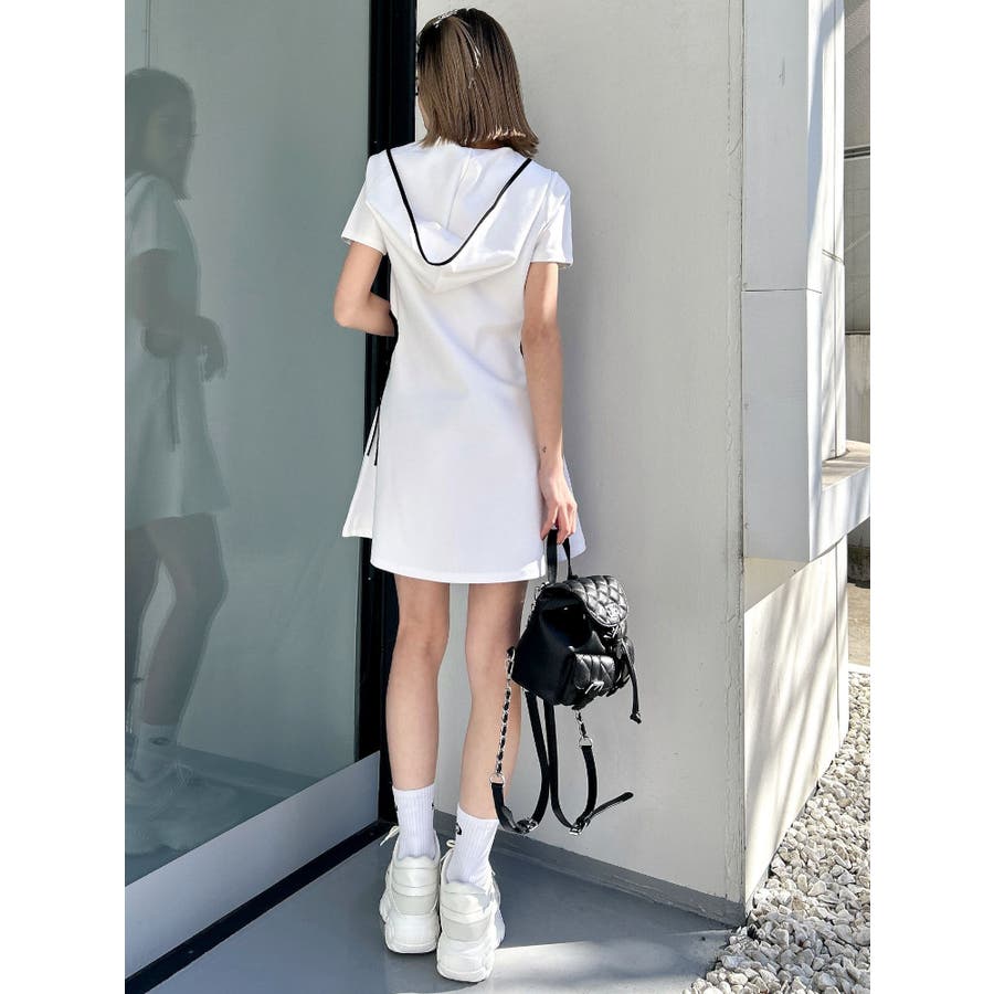 GYDAでは珍しいパーカーワンピースで、あいているウエスト部分の下に紐がついていてリボンに結べる仕様がポイントになっています。