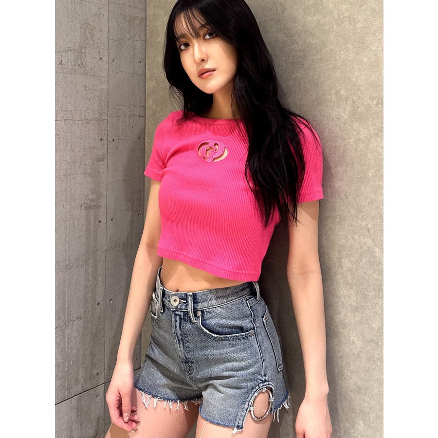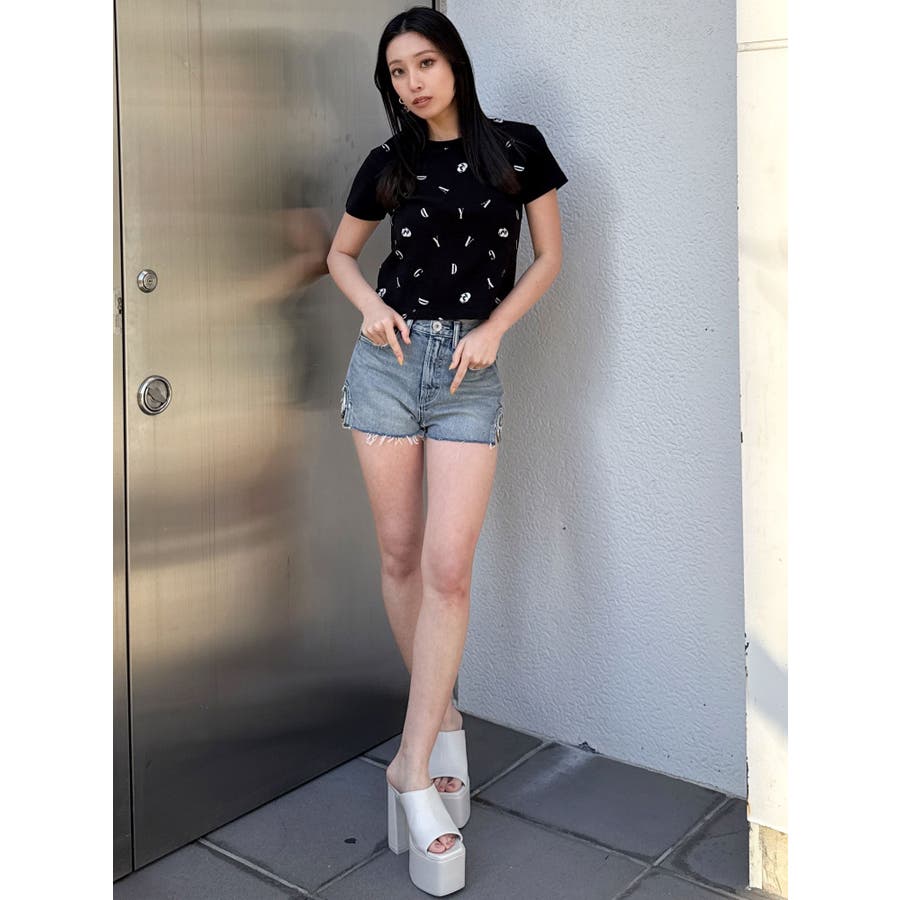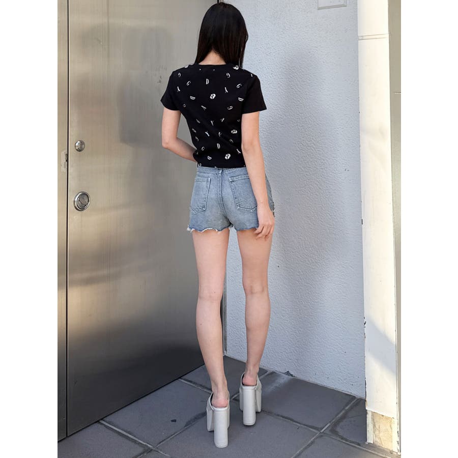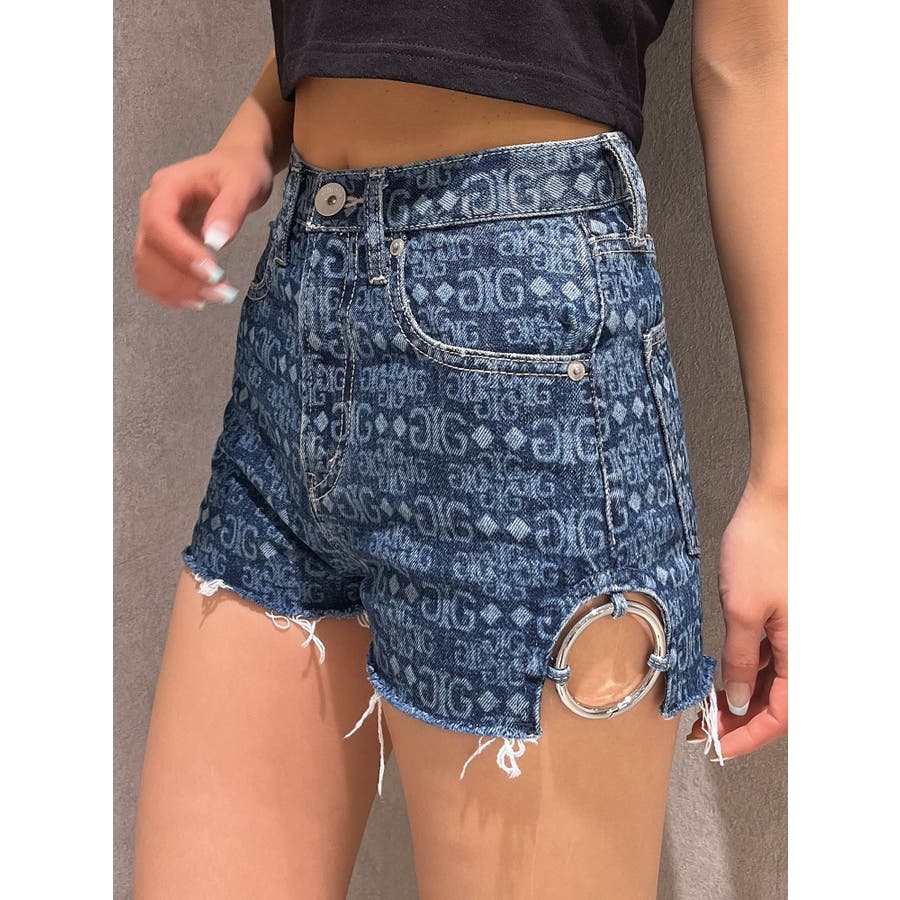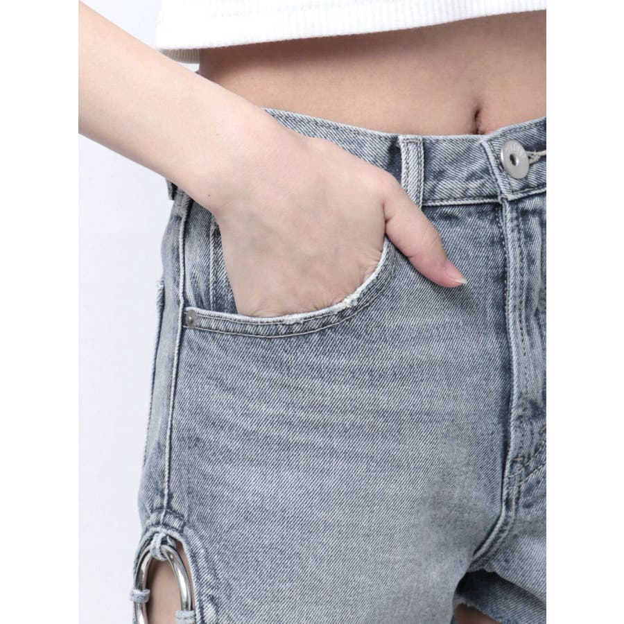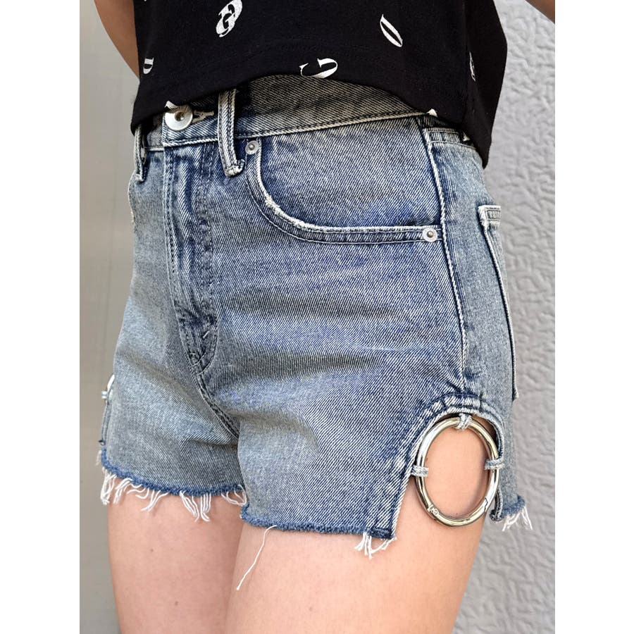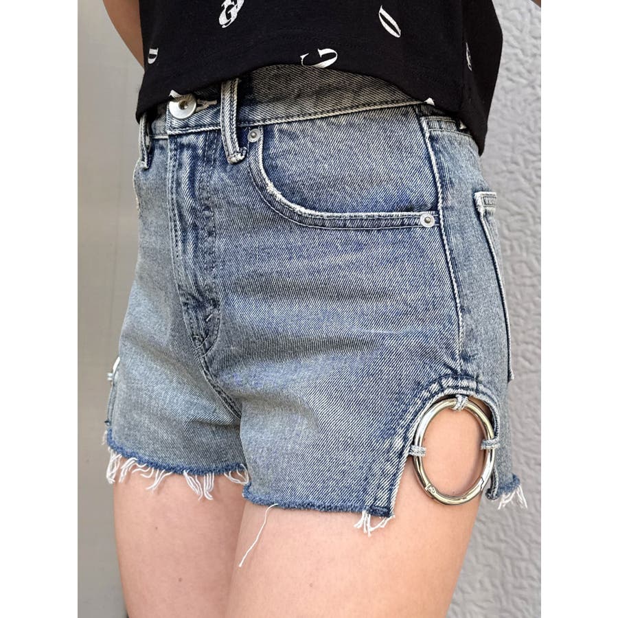 ハイウエストSIDE RINGデニムショートパンツ