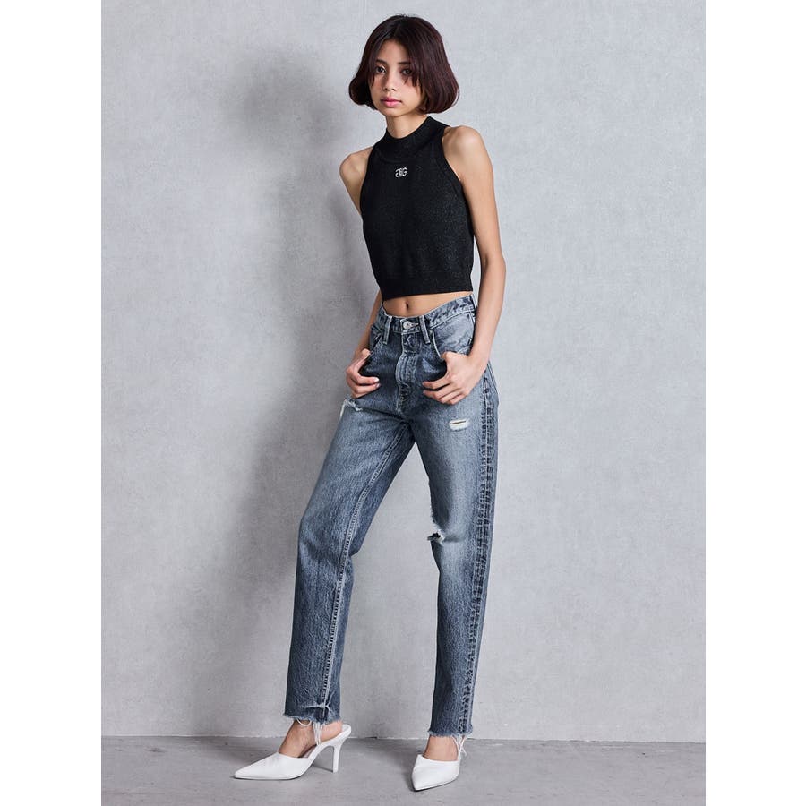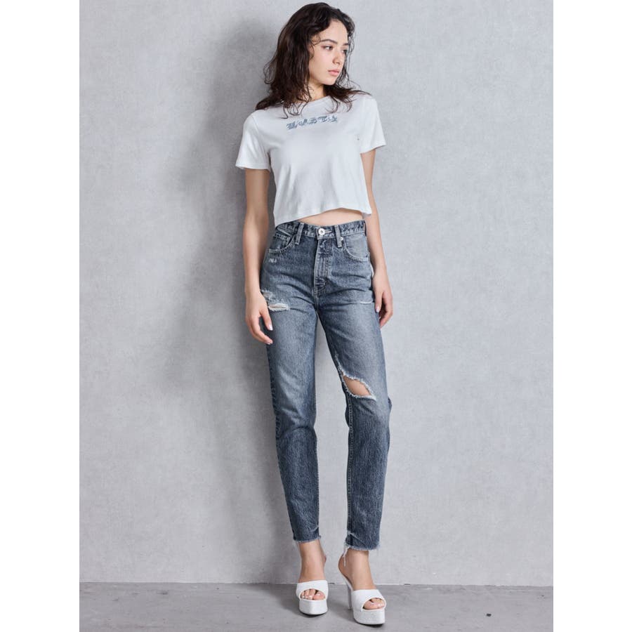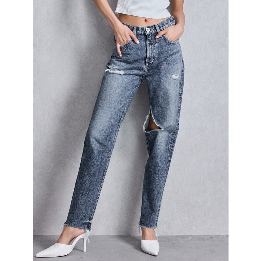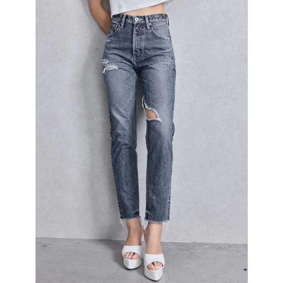 ハイウエストVintage Edge ダメージストレートデニムパンツ