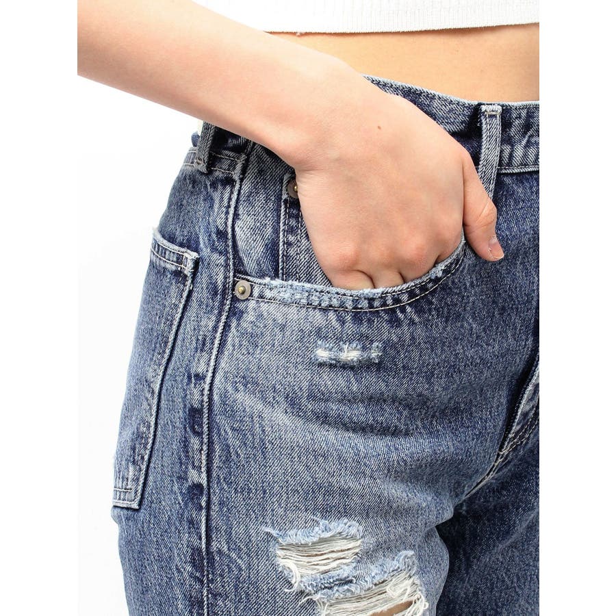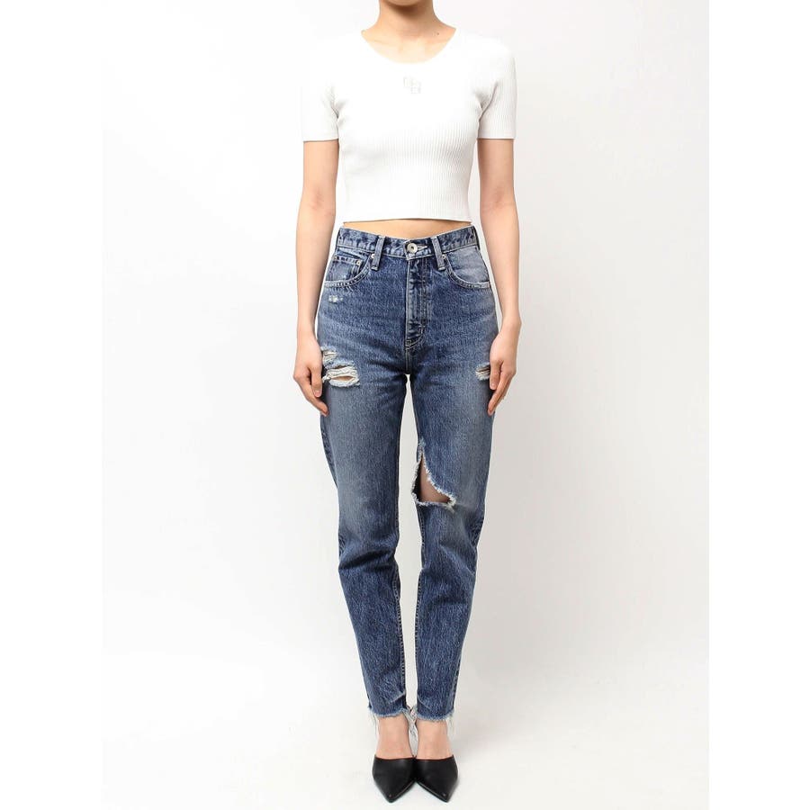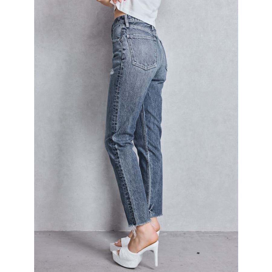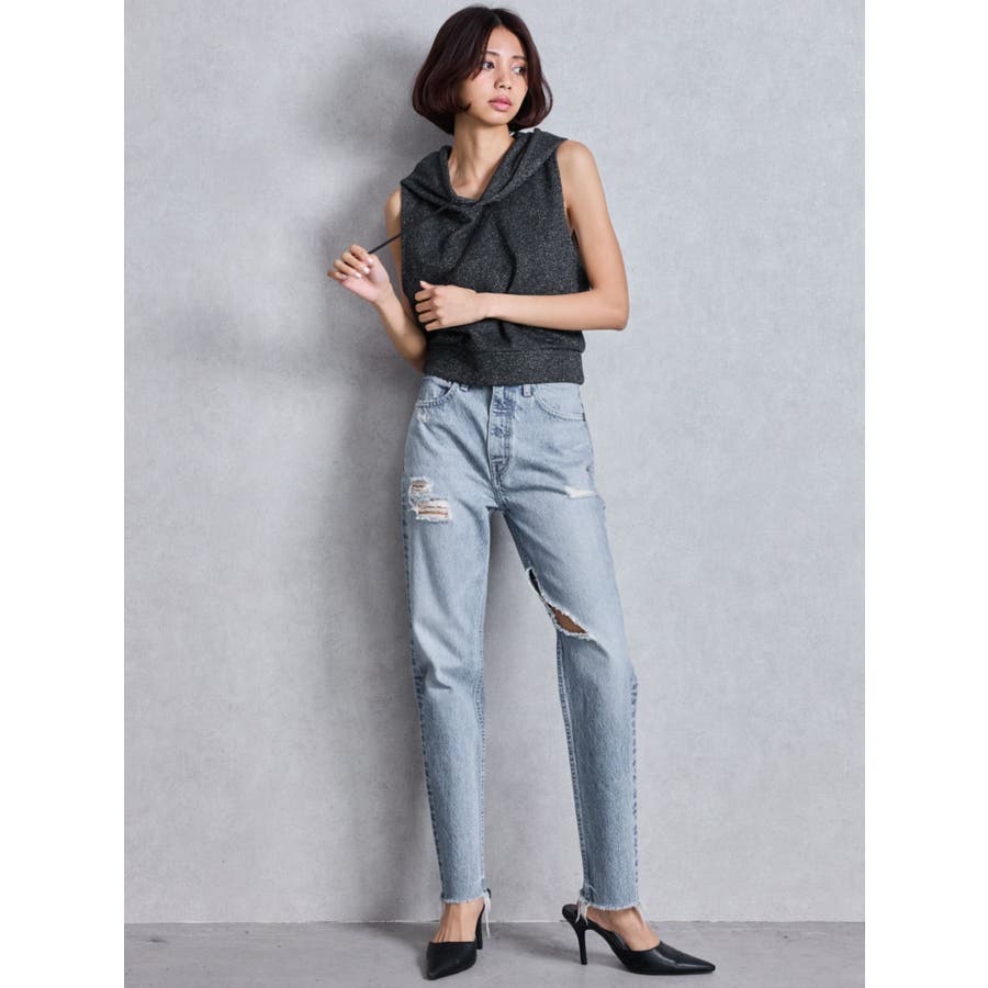 ハイウエストVintage Edge ダメージストレートデニムパンツ