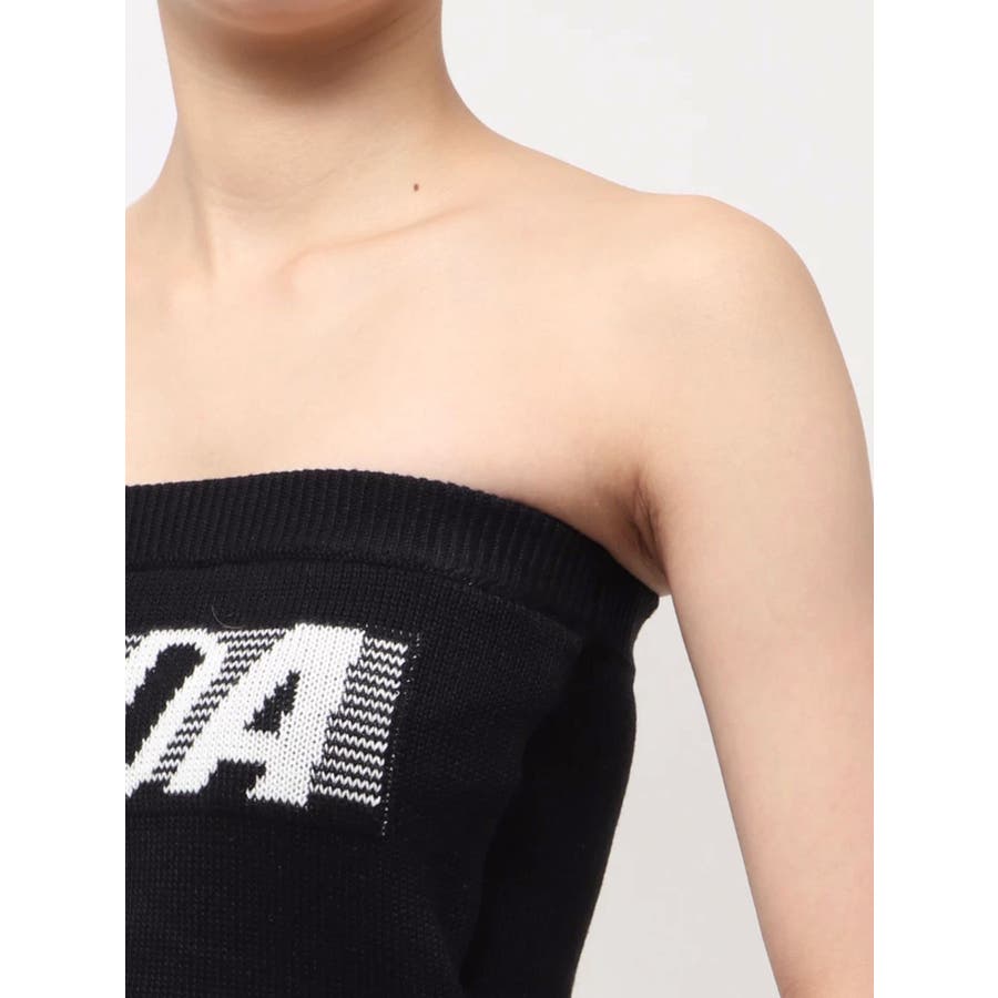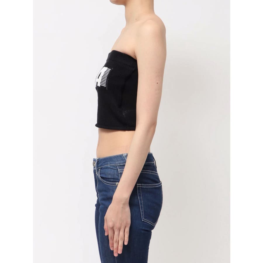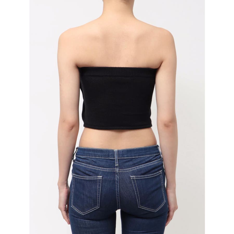 取り外し可能なパッド入りで、しっかりゴムで止まるシンプルなベアタイプのサマーニットアイテムです。