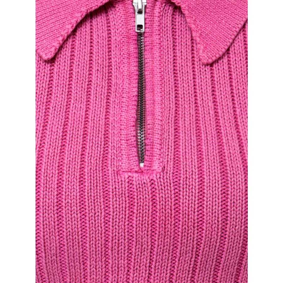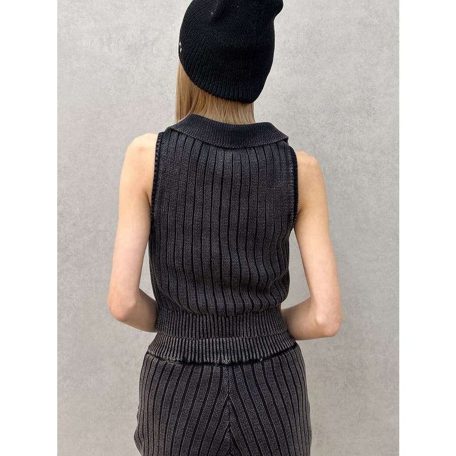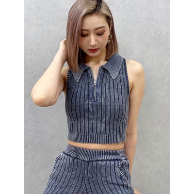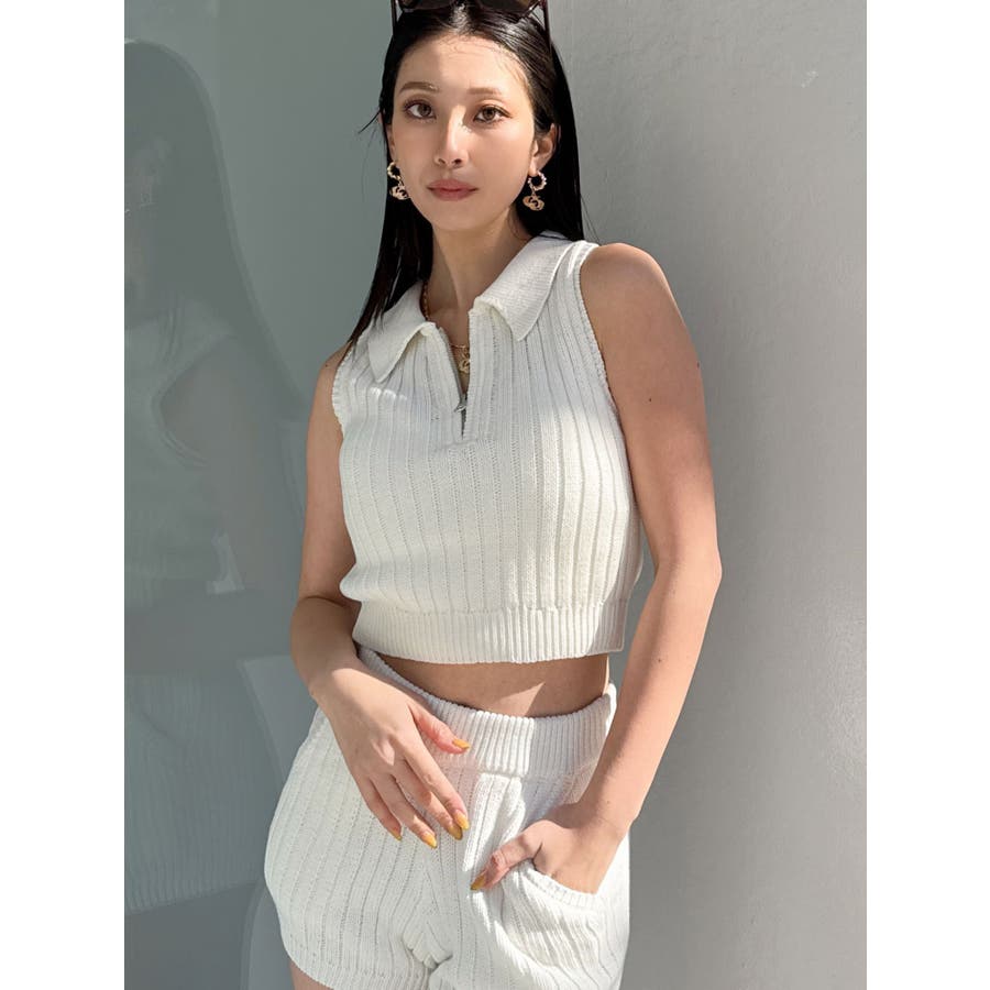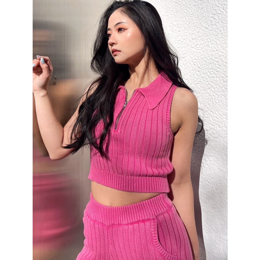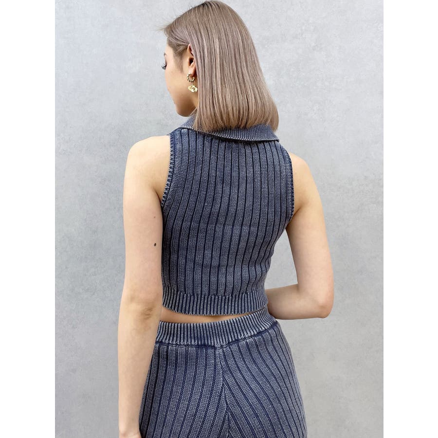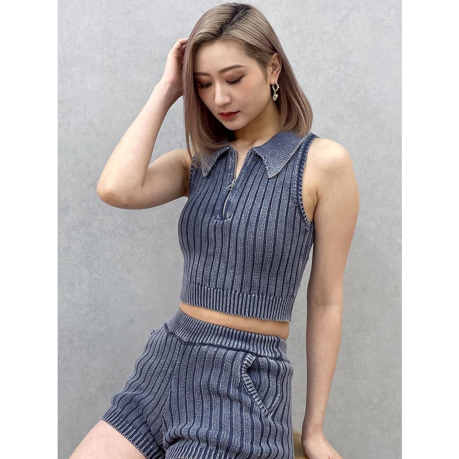 大人気のブリーチニットをトレンドのポロディテールに落とし込み、ノースリ+ハーフジップデザインも新しい見え方のアイテムです。