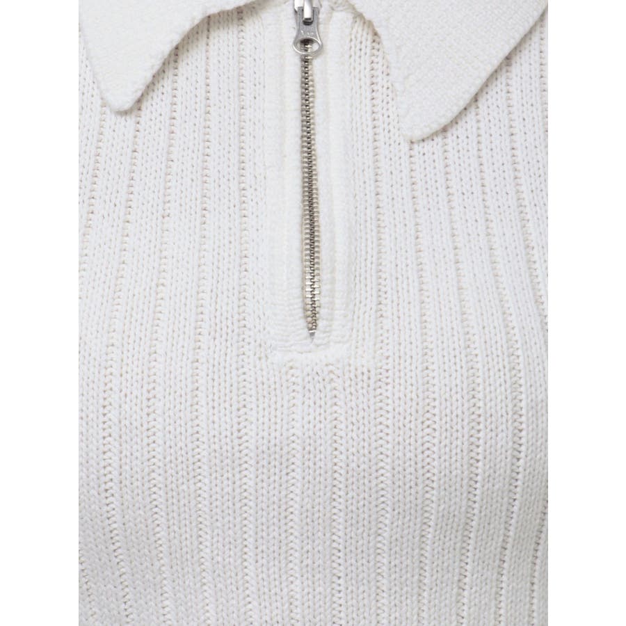 ハーフZIPノースリブリーチポロニットトップス
