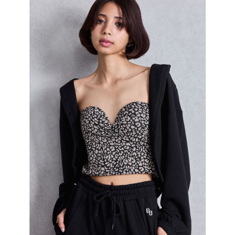 ■デザイン GYDA(ジェイダ)の人気リブベアビスチェボディーを使用した、レオパード柄デザインが登場。 単色のレオパードでさり気ない柄も大人っぽい印象に。 ■スタイリング デニムやスラックスと合わせカジュアルや、デニム合わせでGYDAらしいスタイリングがおススメです。 羽織のショートパーカーも同企画で用意しています。 ■商品のお気に入り登録 再入荷通知やラスト1点、お得なプライスダウンの情報も受け取ることができます。 ぜひご登録ください◎ ■この商品を見ている人におすすめ leopard printショートパーカー ・・・・・・・・・・・・・・・・・・・・・・ ※着用画像はフラッシュの加減で実際の製品と色味等が異なる場合がございますので、生地のズームアップ画像をご確認ください。 ※ご利用の端末画面の設定により実際の商品と色味が異なる場合がございます。【商品特徴】透け感:なし伸縮性:ややあり生地の厚さ:薄手サイズ感:細身裏地:なしポケット:なし