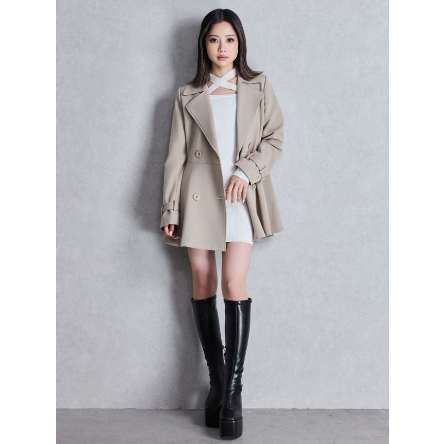 ■デザイン 袖口にGDの同色刺繍が入ったフレアコート。 上半身がタイト、下半身がフレアなシルエットなので女性らしい綺麗なシルエットで着用していただけます。 素材感はサラッとしていて軽いので少し肌寒くなってきた時期にぴったりです。 ■スタイリング フレアのワンピースやタイトニット×ミニボトムスのコーデ合わせがおすすめです。 寒くなってきた時期にはニーハイブーツ合わせがGYDAらしくておすすめです。 ■商品のお気に入り登録 再入荷通知やラスト1点、お得なプライスダウンの情報も受け取ることができます。 ぜひご登録ください◎ ・・・・・・・・・・・・・・・・・・・・・・ ※着用画像はフラッシュの加減で実際の製品と色味等が異なる場合がございますので、生地のズームアップ画像をご確認ください。 ※ご利用の端末画面の設定により実際の商品と色味が異なる場合がございます。