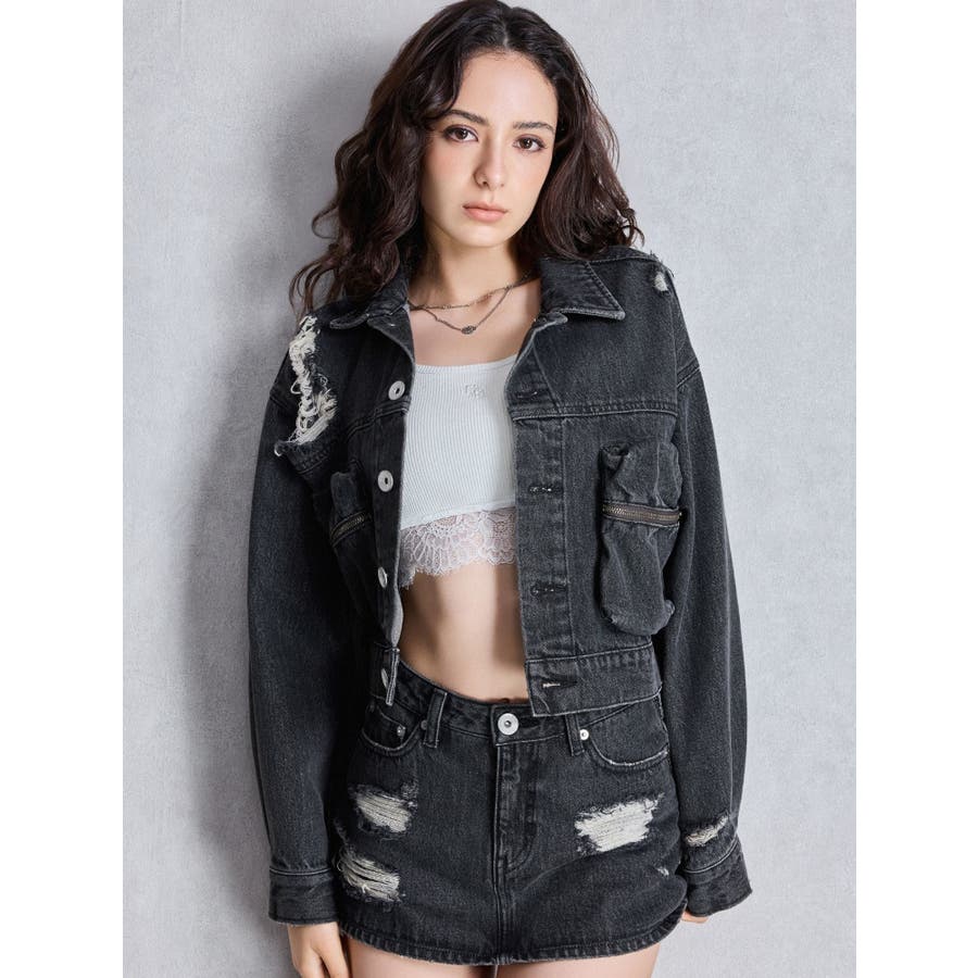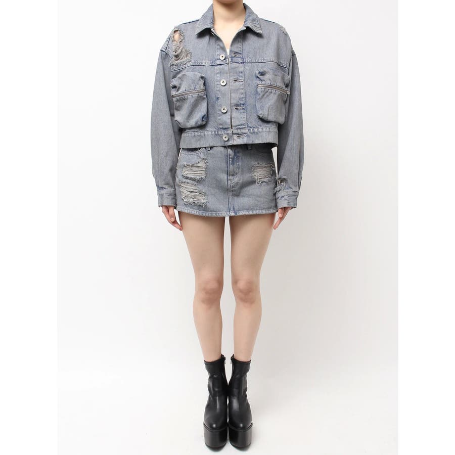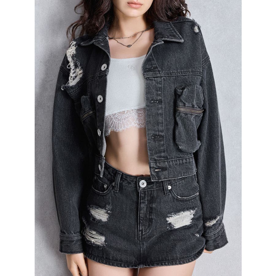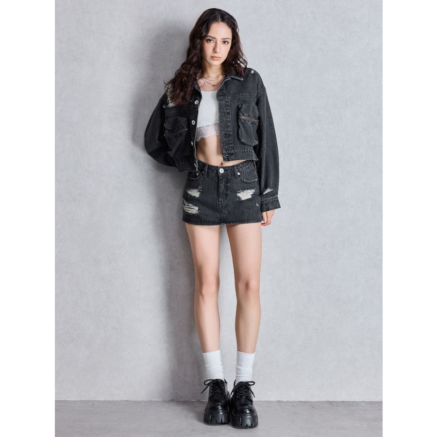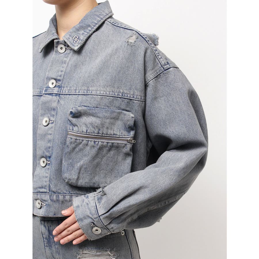 ZIP POCKETダメージショートデニムGジャン