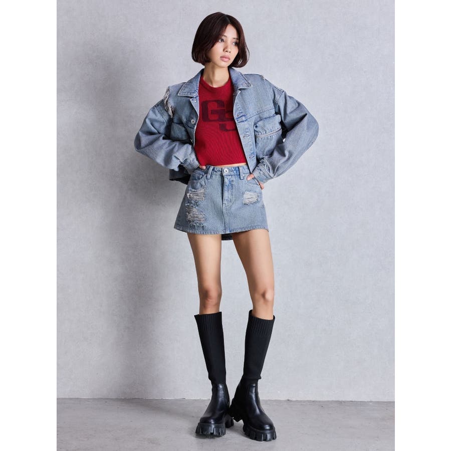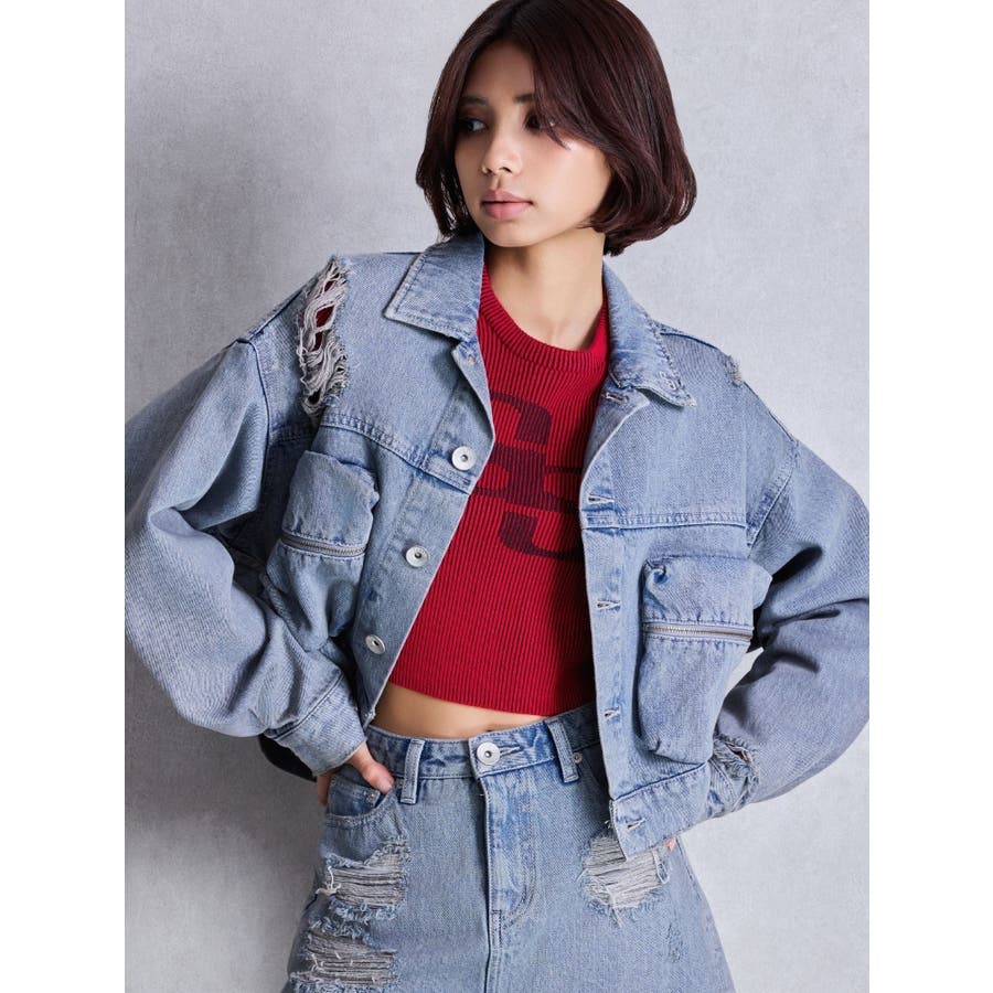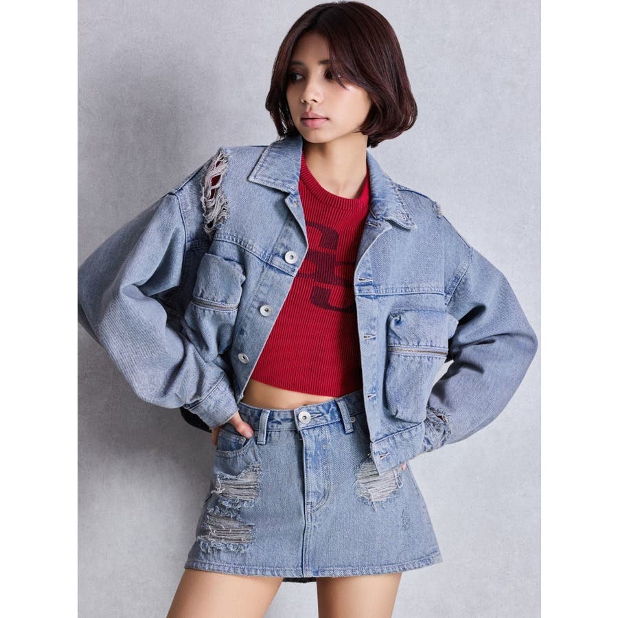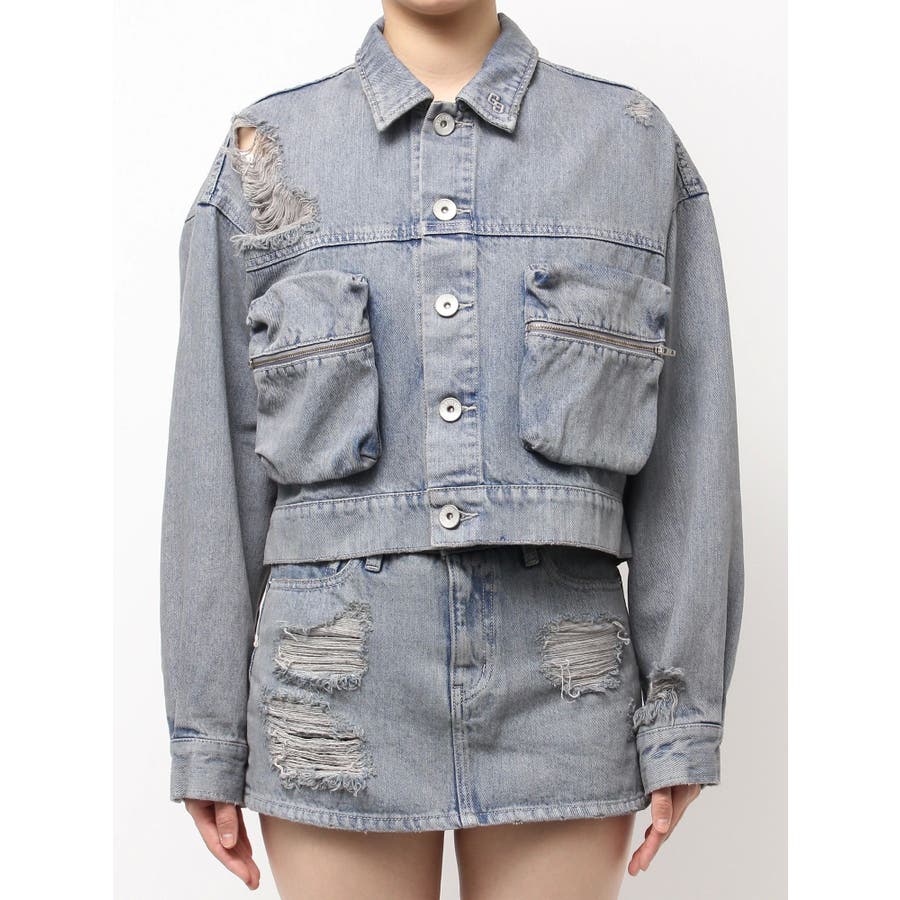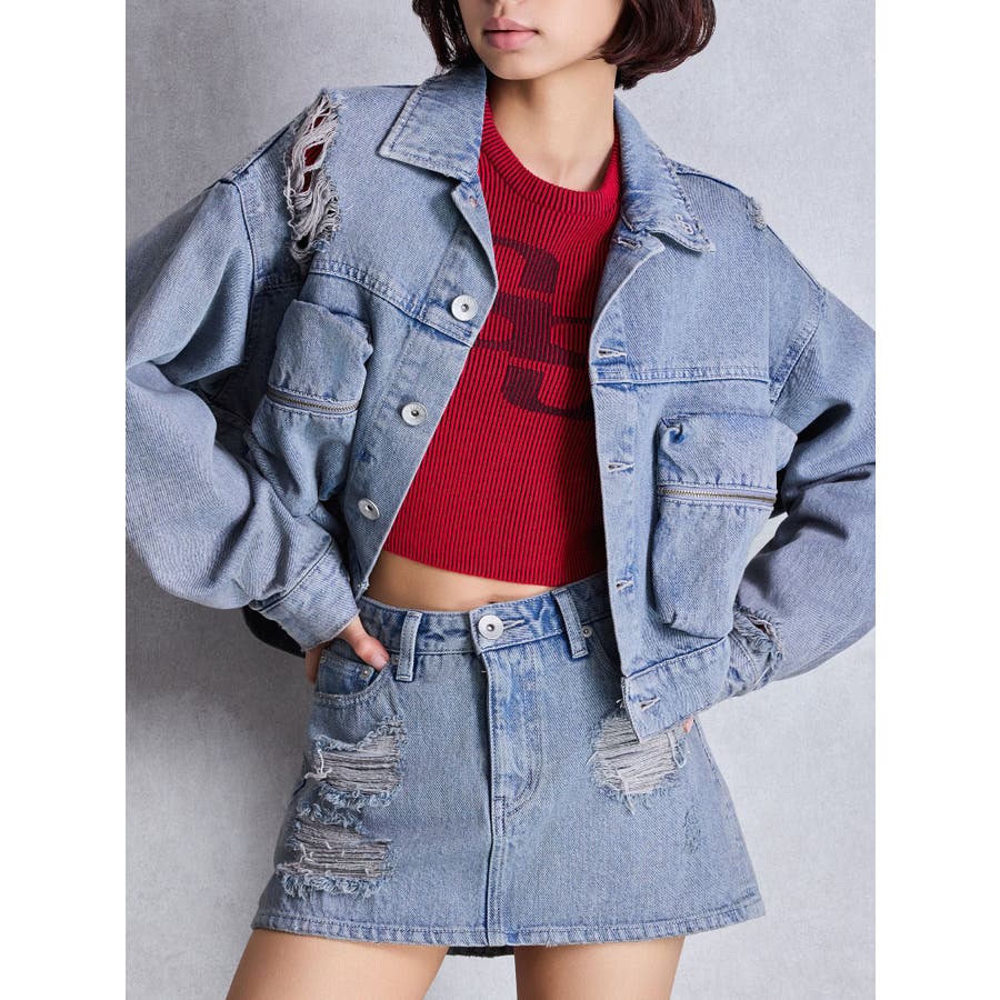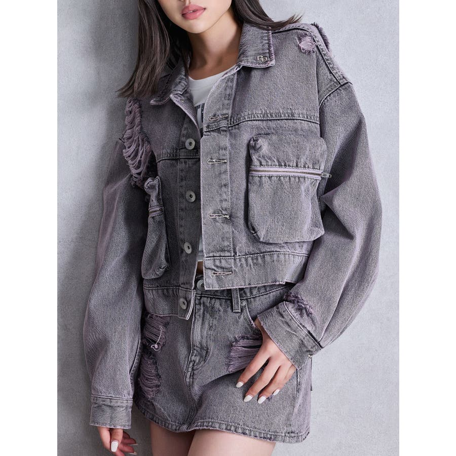ZIP POCKETダメージショートデニムGジャン