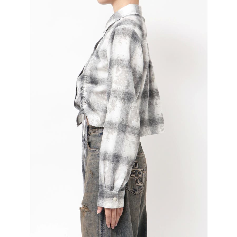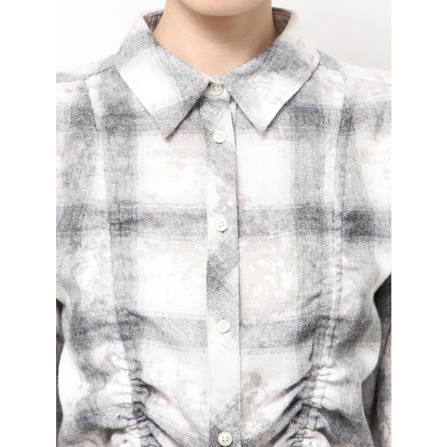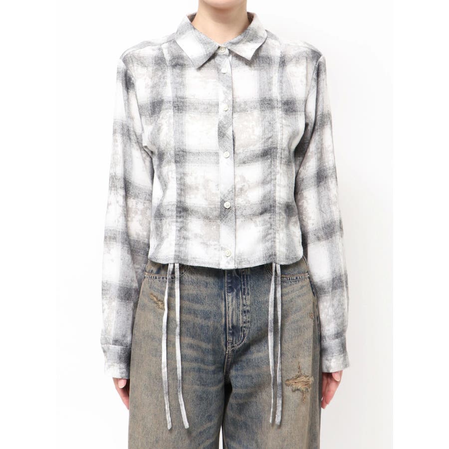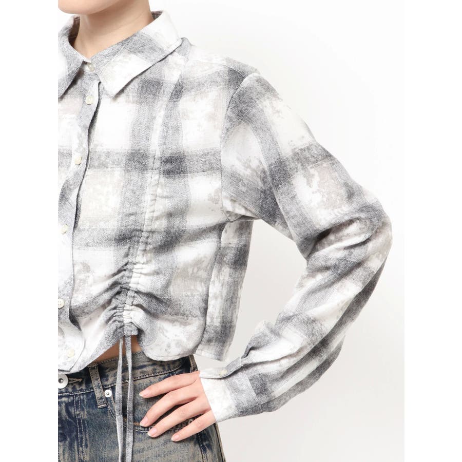 ■デザイン トレンドのグランジムードを楽しめる、存在感抜群のチェックシャツ。 ブリーチ加工のような、グランジ感のあるチェック柄と、 胸上に施したドロストディテールがメリハリのあるシルエットになり、 ボディラインにフィットするカジュアルながらも女性らしさを演出する1着。 ■スタイリング トップスはクロップド+ハイウエストデニムでヘルシーな肌見せコーデ。 足元は厚底スニーカーが◎ スリムなボトムでYラインシルエット+ブーツ合わせもおススメです。 ■商品のお気に入り登録 再入荷通知やラスト1点、お得なプライスダウンの情報も受け取ることができます。 ぜひご登録ください◎ ・・・・・・・・・・・・・・・・・・・・・・ ※着用画像はフラッシュの加減で実際の製品と色味等が異なる場合がございますので、生地のズームアップ画像をご確認ください。 ※ご利用の端末画面の設定により実際の商品と色味が異なる場合がございます。