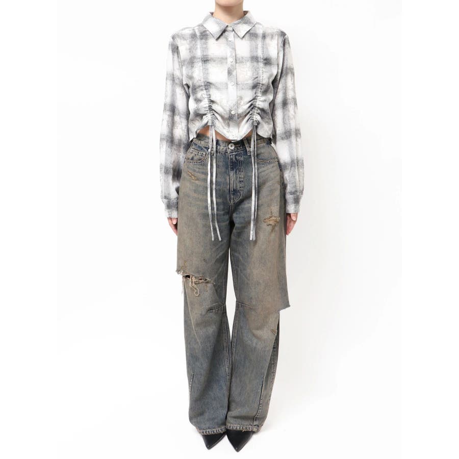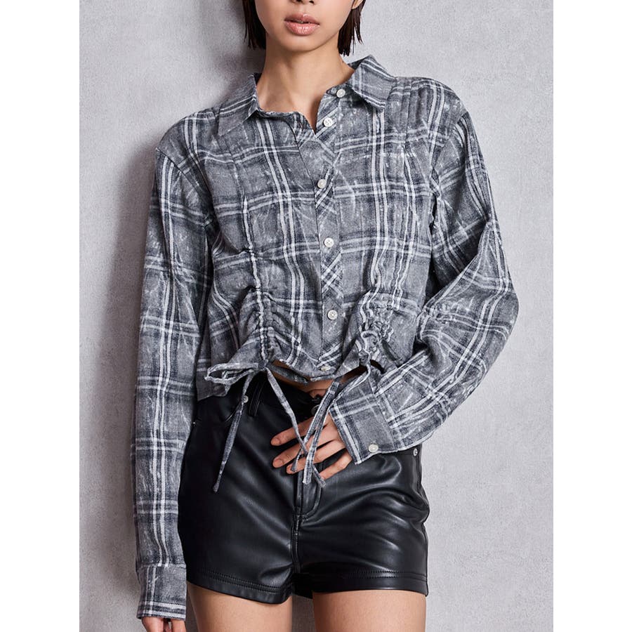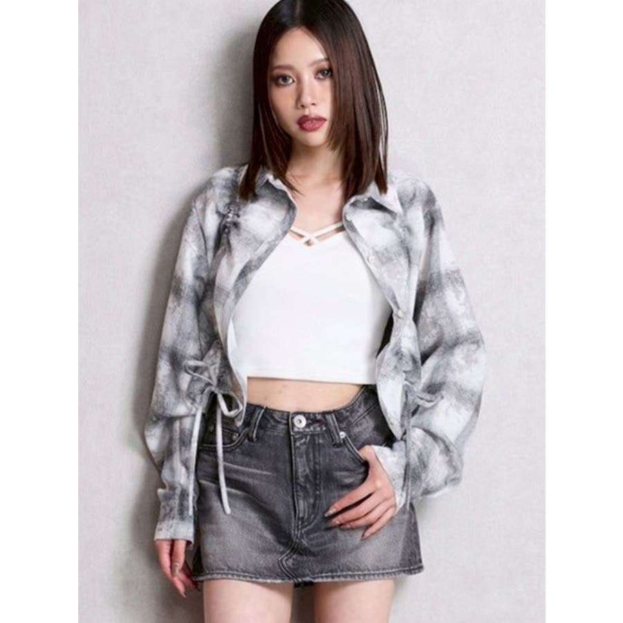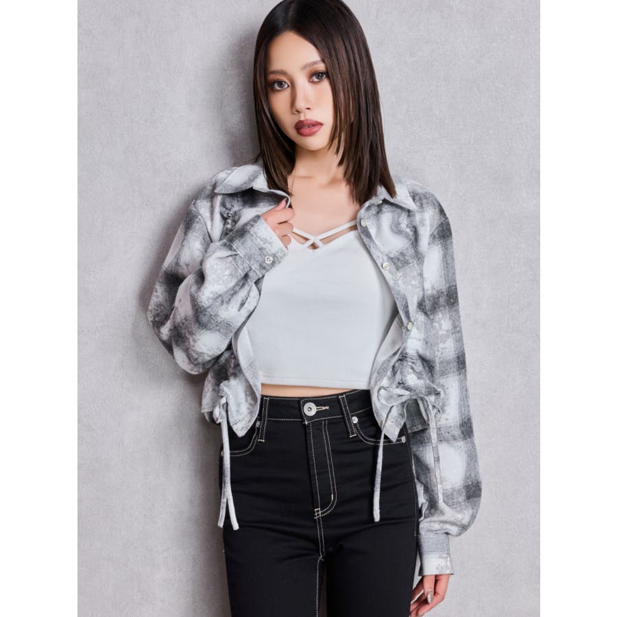 ■デザイン トレンドのグランジムードを楽しめる、存在感抜群のチェックシャツ。 ブリーチ加工のような、グランジ感のあるチェック柄と、 胸上に施したドロストディテールがメリハリのあるシルエットになり、 ボディラインにフィットするカジュアルながらも女性らしさを演出する1着。 ■スタイリング トップスはクロップド+ハイウエストデニムでヘルシーな肌見せコーデ。 足元は厚底スニーカーが◎ スリムなボトムでYラインシルエット+ブーツ合わせもおススメです。 ■商品のお気に入り登録 再入荷通知やラスト1点、お得なプライスダウンの情報も受け取ることができます。 ぜひご登録ください◎ ・・・・・・・・・・・・・・・・・・・・・・ ※着用画像はフラッシュの加減で実際の製品と色味等が異なる場合がございますので、生地のズームアップ画像をご確認ください。 ※ご利用の端末画面の設定により実際の商品と色味が異なる場合がございます。